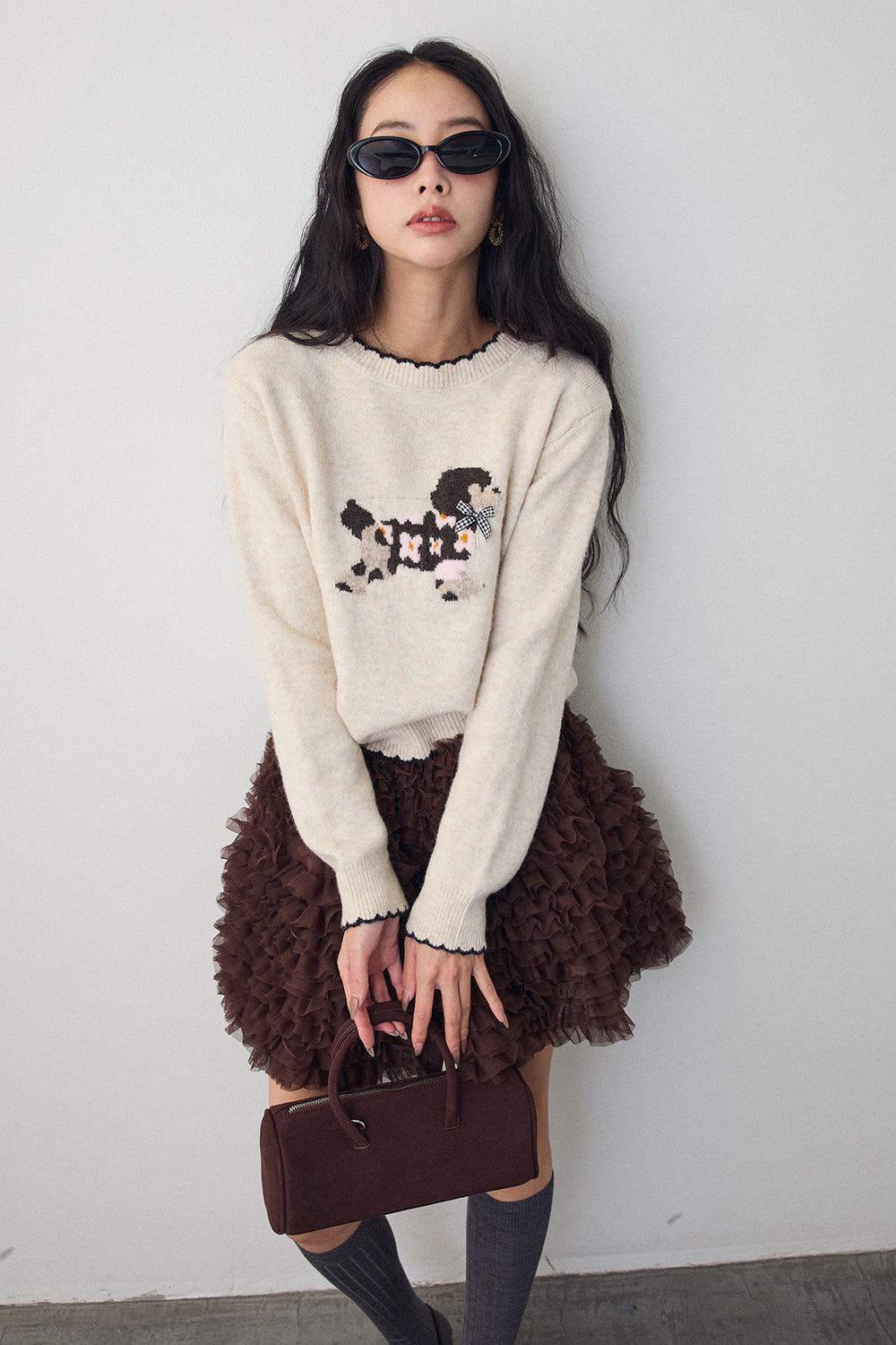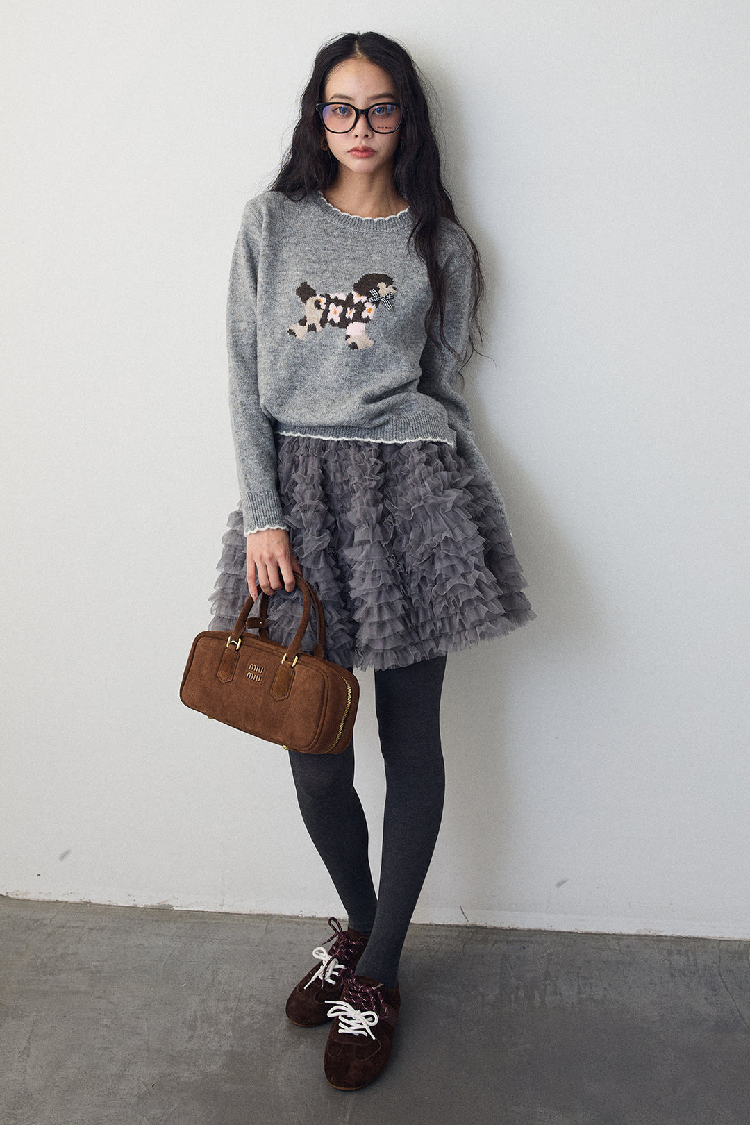 [予約/SET]ドッグジャガードニット+ホイップチュールミニ丈スカート(2set)