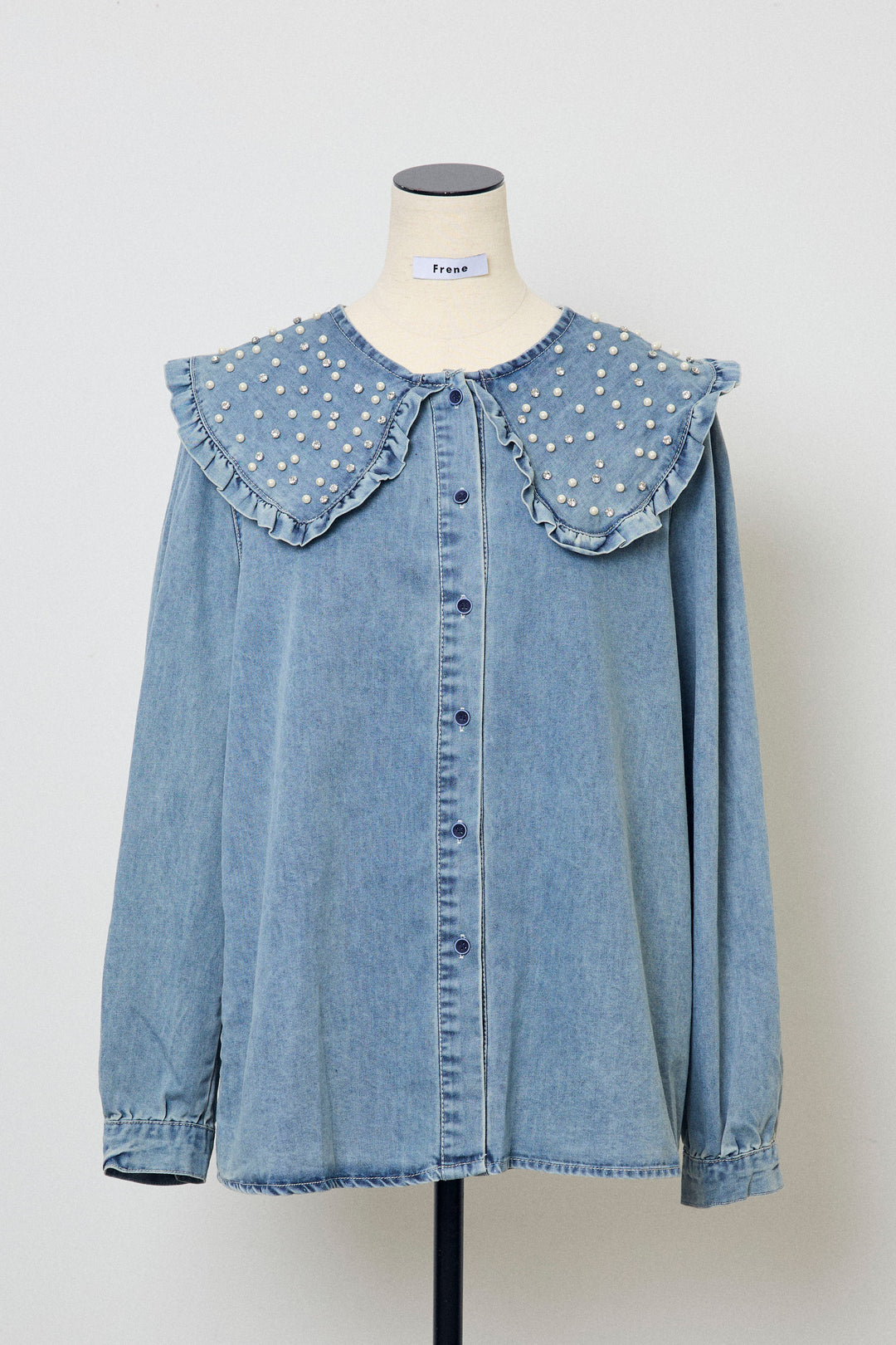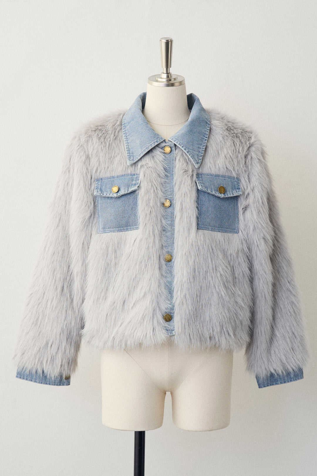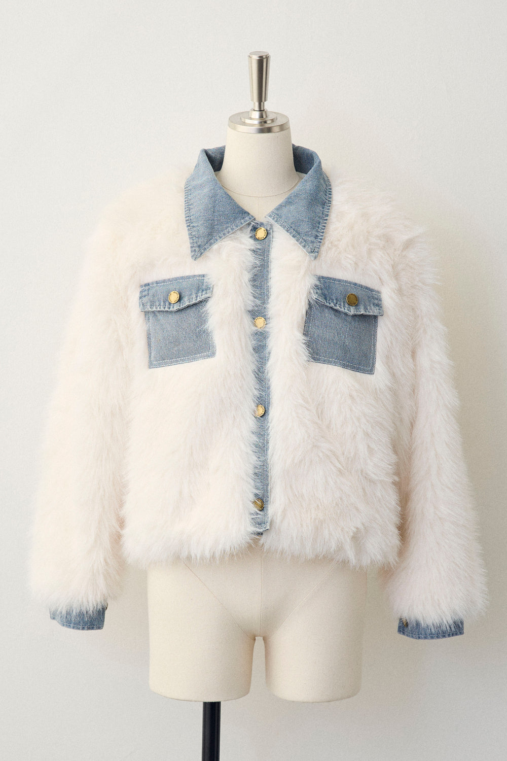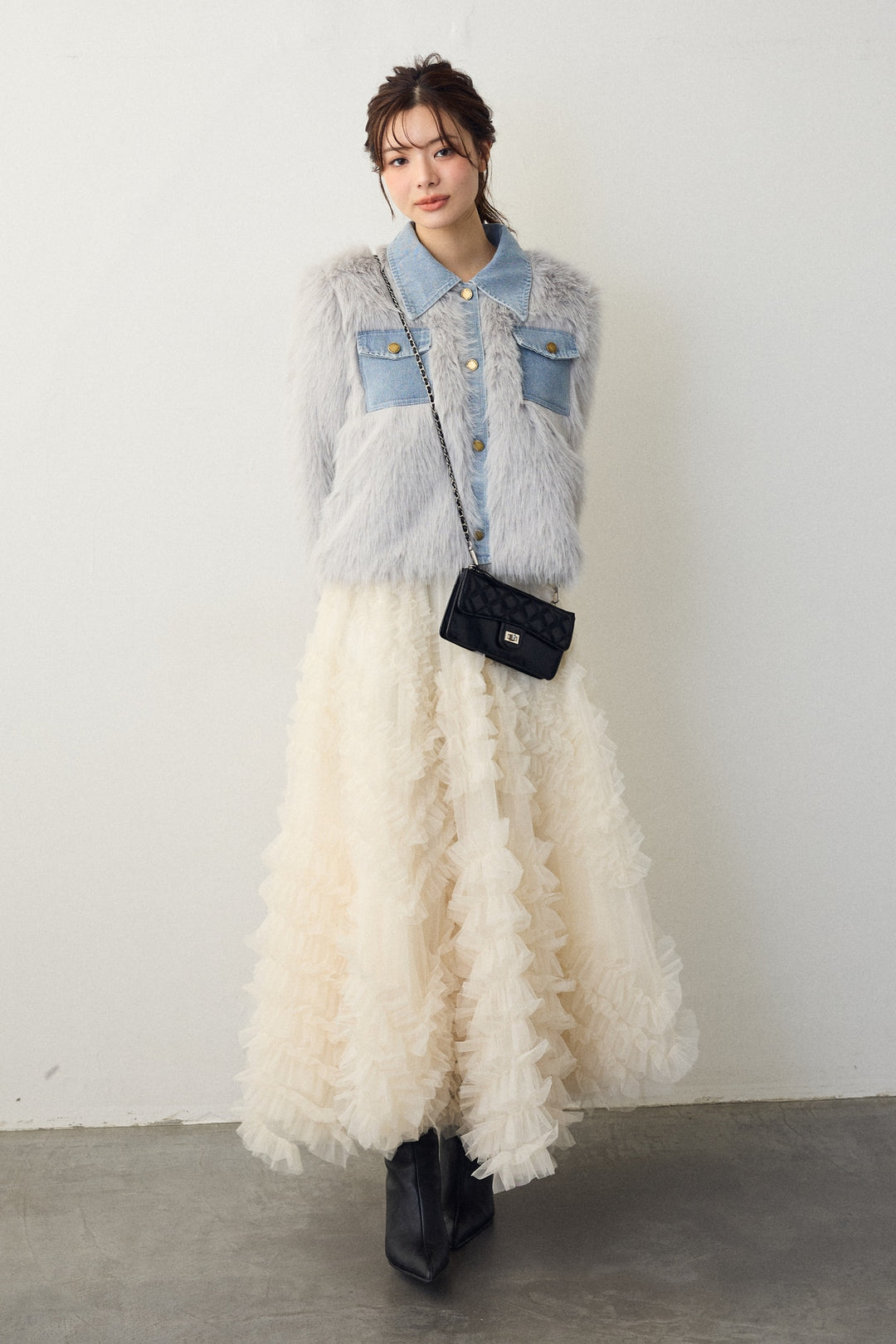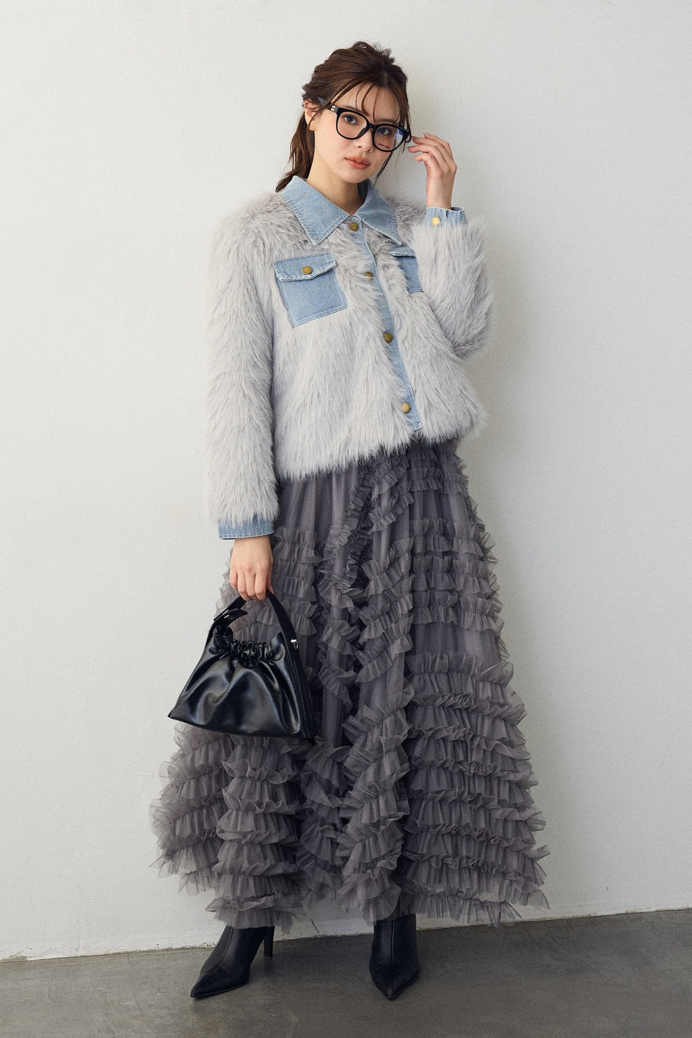 [予約/SET]デニムシャツドッキングファージャケット+スフレアシメチュールスカート(2set)