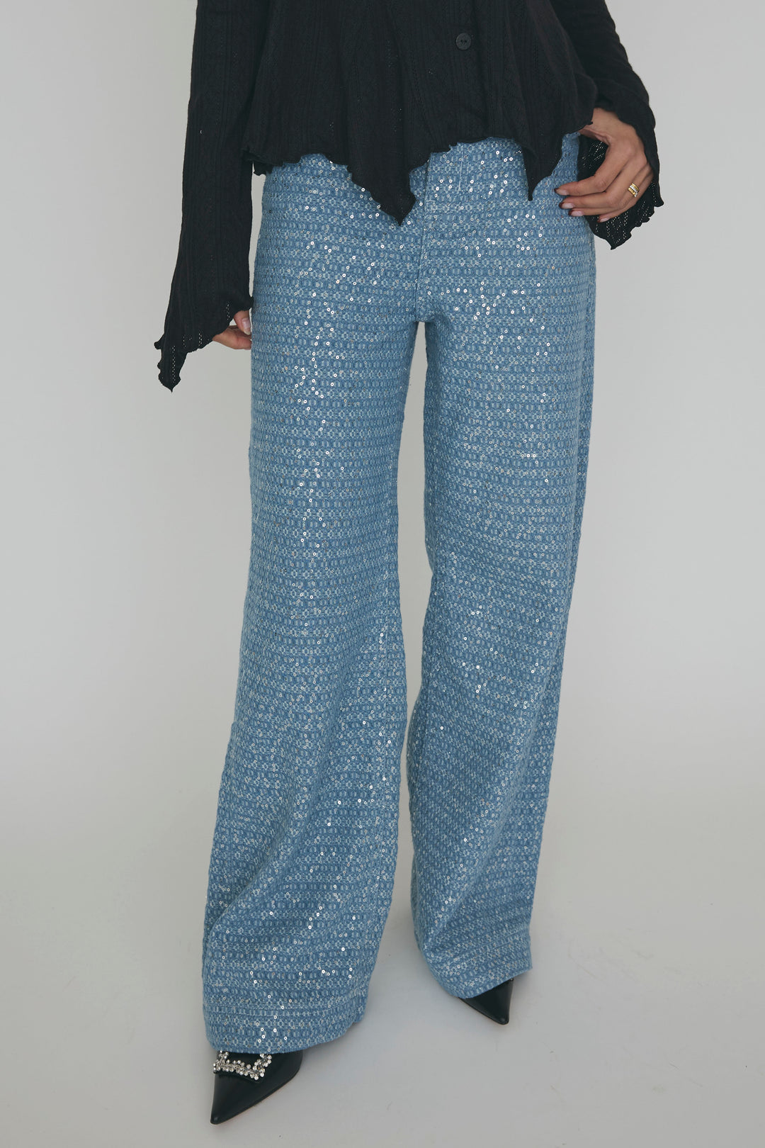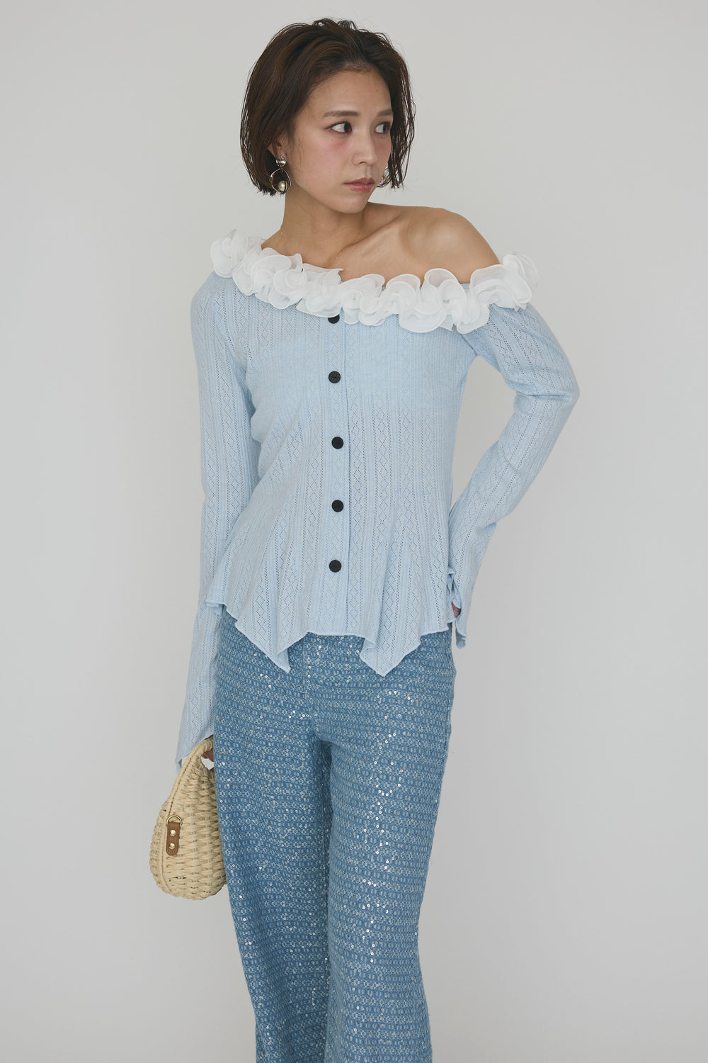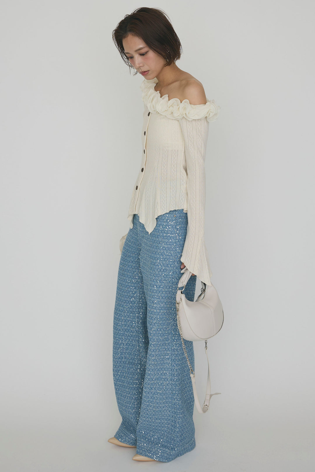 [予約/SET]フリルモチーフアシメオフショルフレアトップス+マーメイドスケールズデニムパンツ(2set)