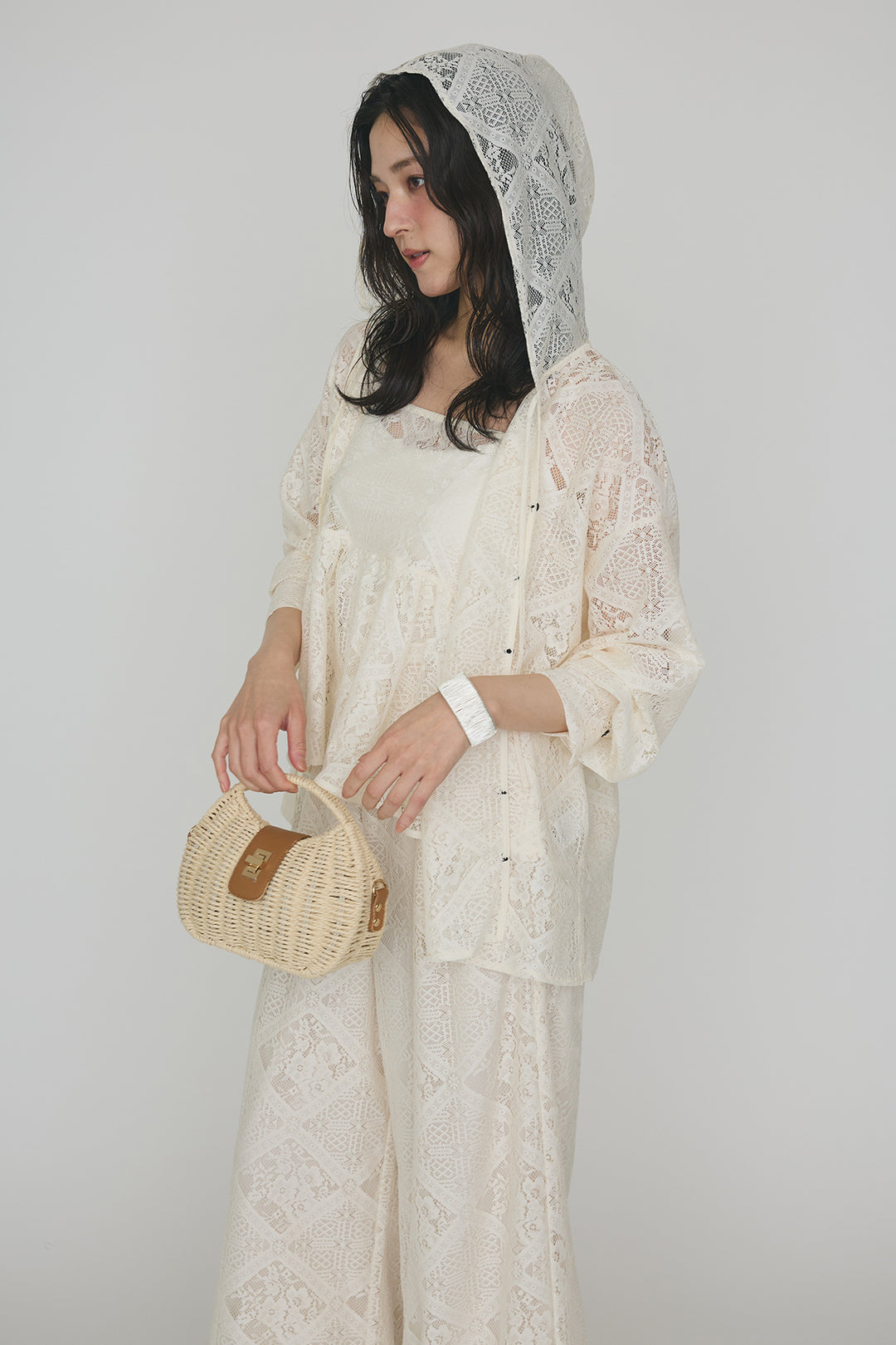 [予約/SET]ブロックレースアップペプラムキャミ+ブロックレースフーディートップス+ブロックレースストレートパンツ(3set)