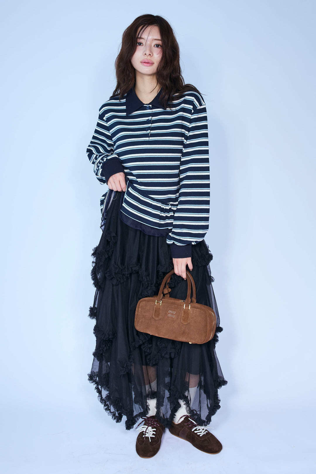 [予約/SET]ドッキングフリルボーダーポロPO+ムードチュールフリルスカート(2set)