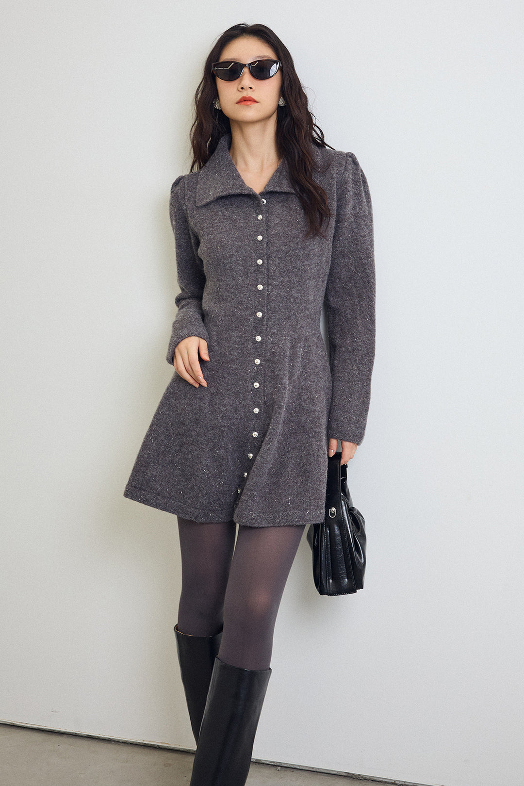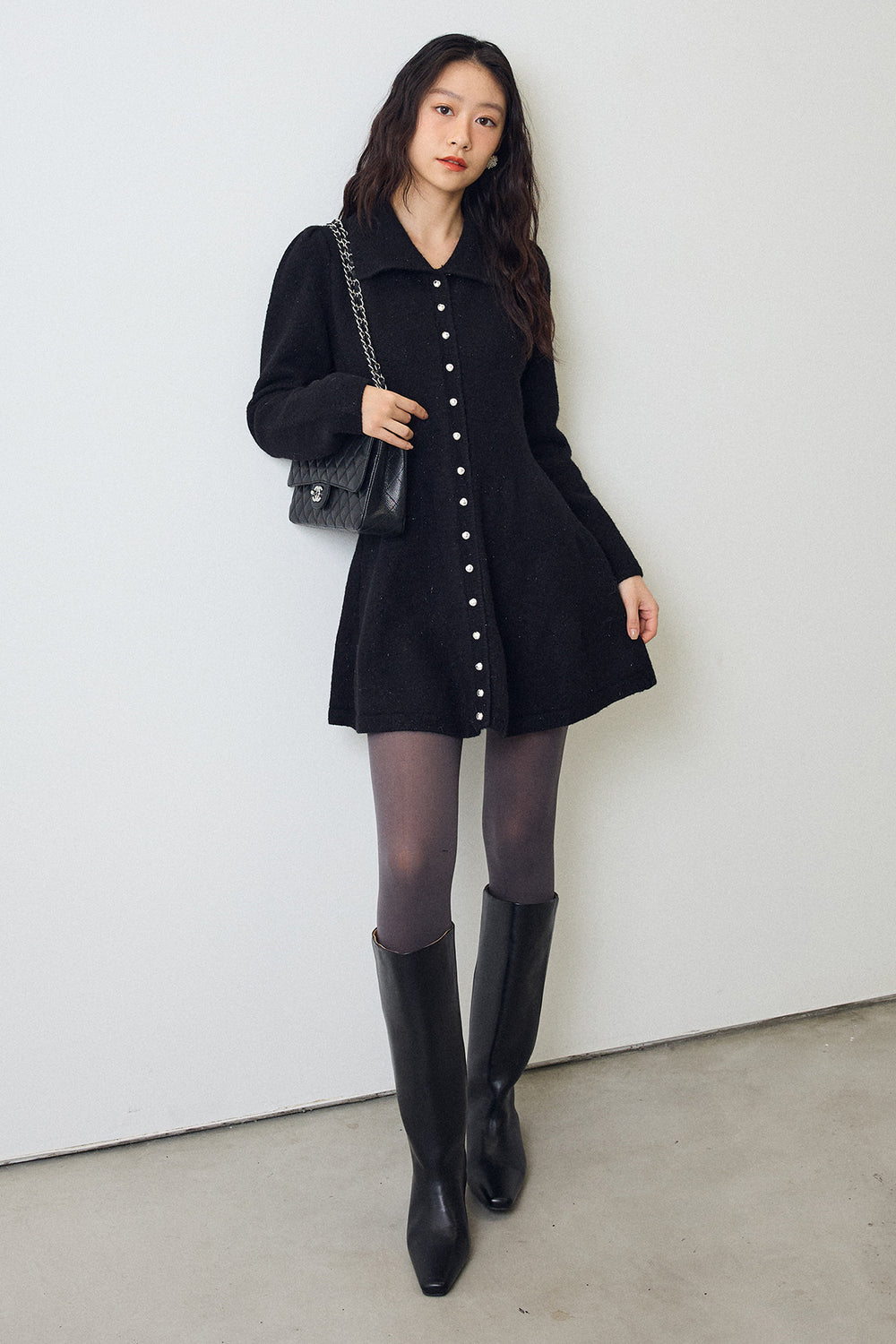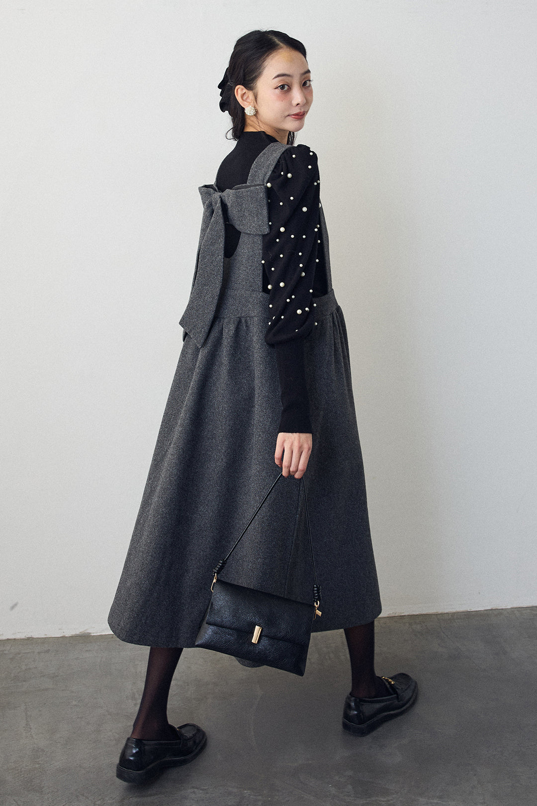 [予約/SET]パフスリーブランダムパールニット+バックリボンボックスシルエットジャンスカ(2set)