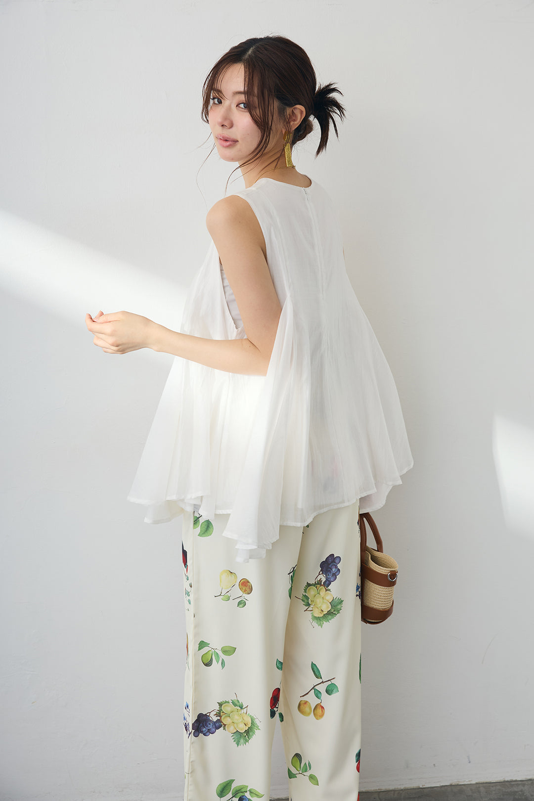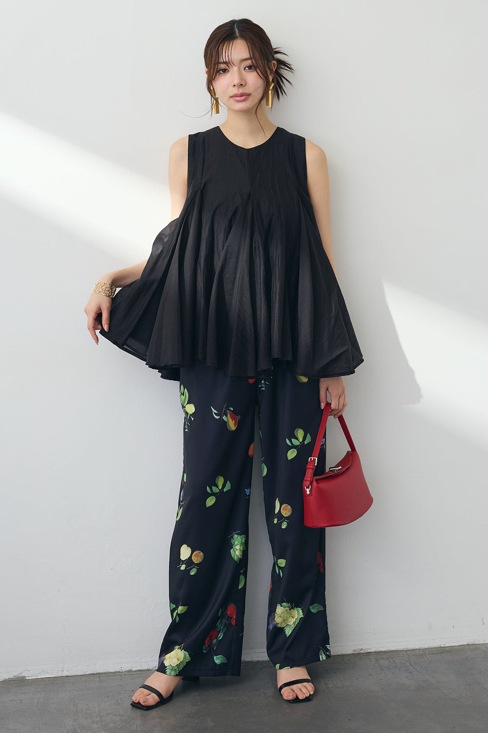 [予約/SET]エアリー切り替えフレアボリュームチュニック+フルーツパターンストレートパンツ(2set)