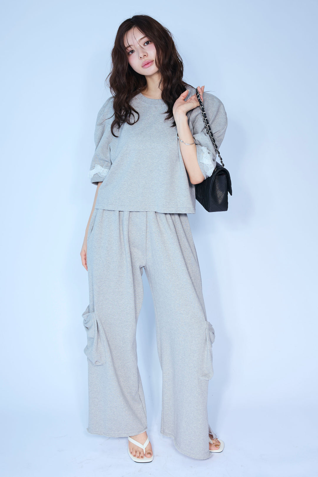 [予約/SET]ライトスウェットレースコンビパフPO+ライトスウェットサイドリボンパンツ(2set)
