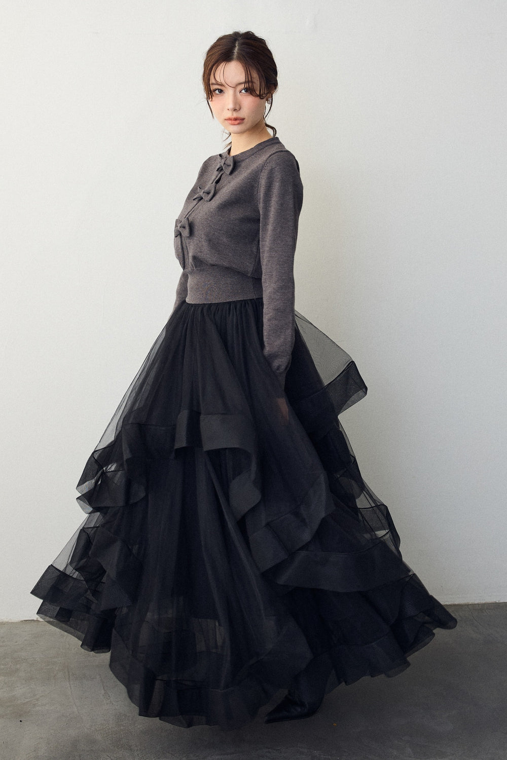 [予約/SET]ヘムリボンデザインショートカーデ+ホイップチュールティアードスカート(2set)