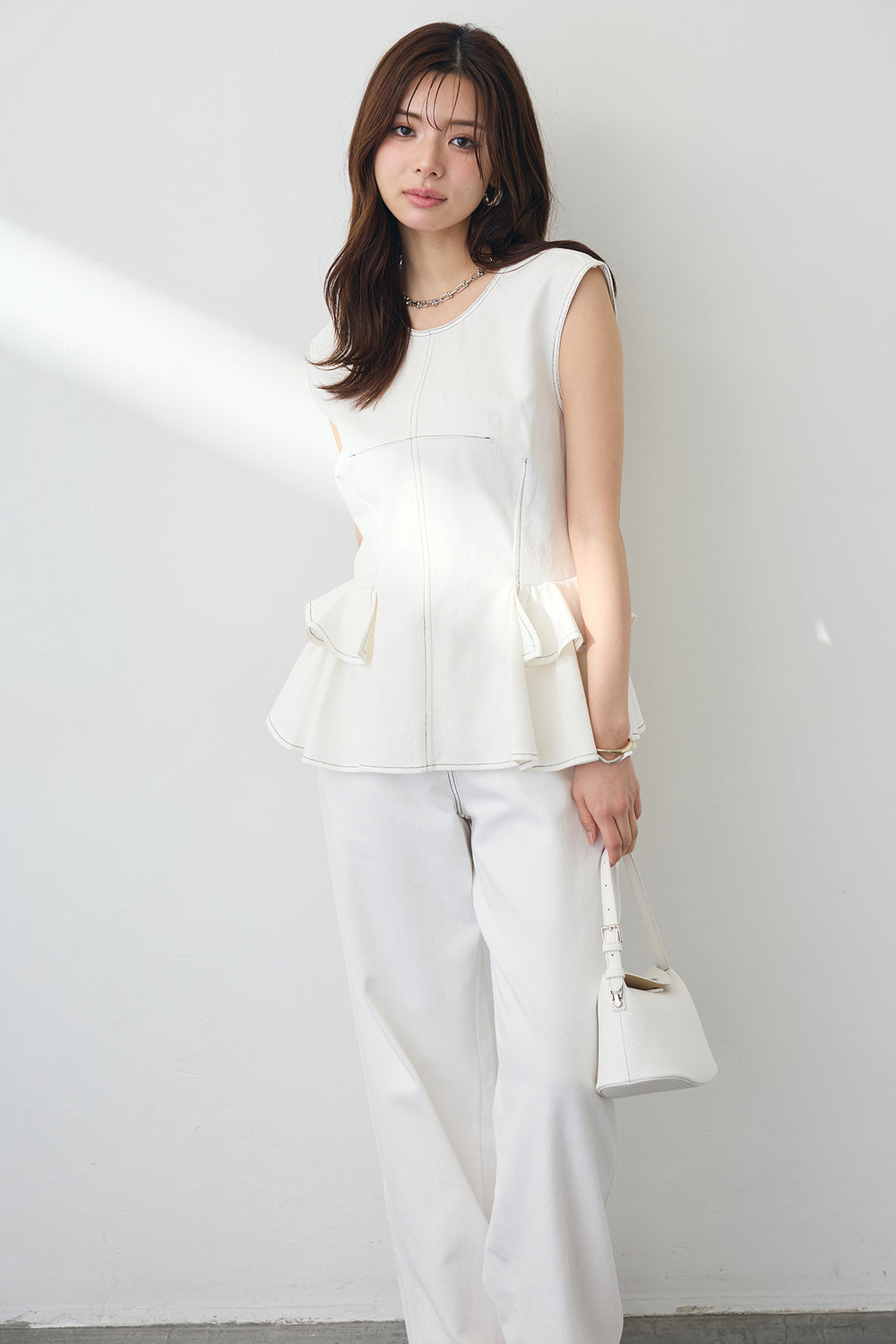 [予約/SET]ステッチミニペプラム美シルエットデニムトップス+ステッチデニムストレートデニム(2set)