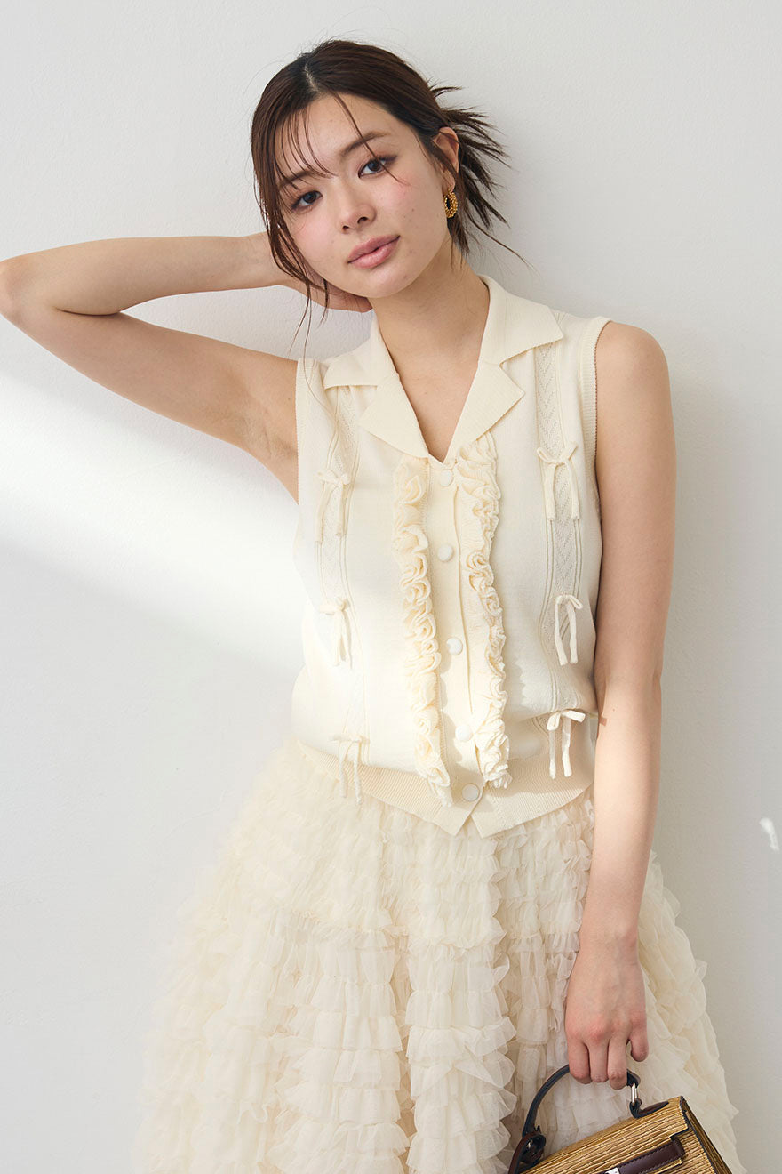 [予約]フリルリボンニット襟トップス