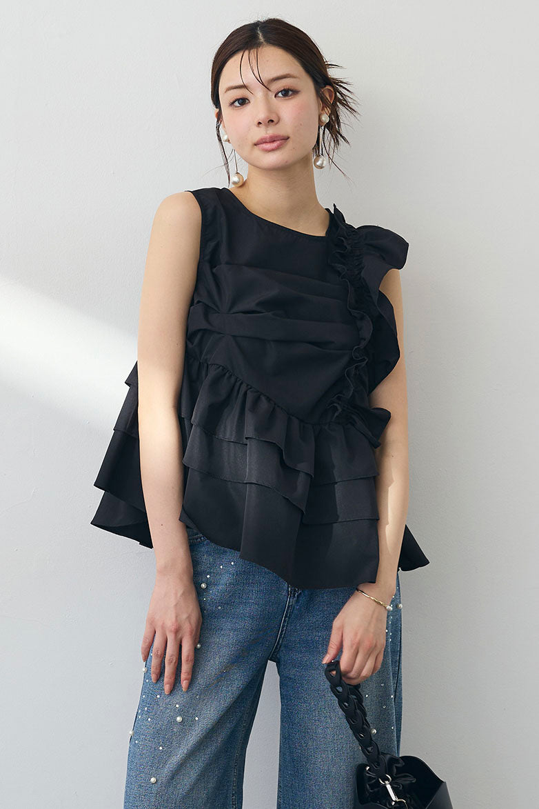 [予約]アシメフリルギャザーブラウス