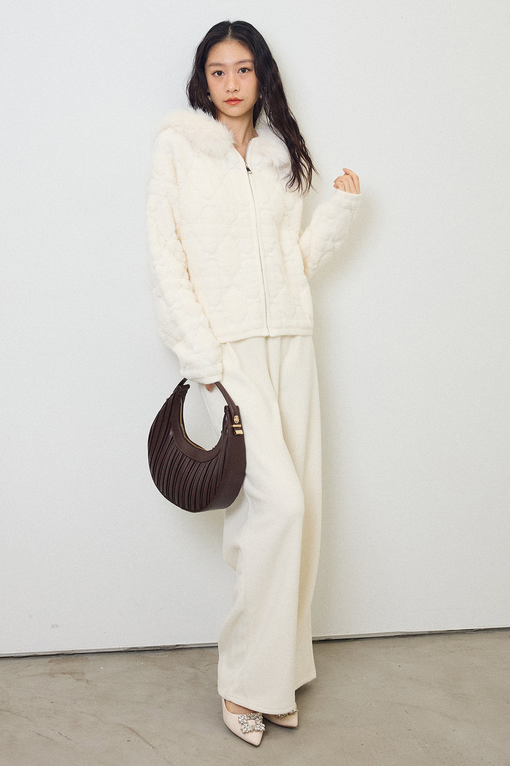 [予約/SET]フードファーキルトZIPニットブルゾン+ウォームタッチイージーパンツ(2set)