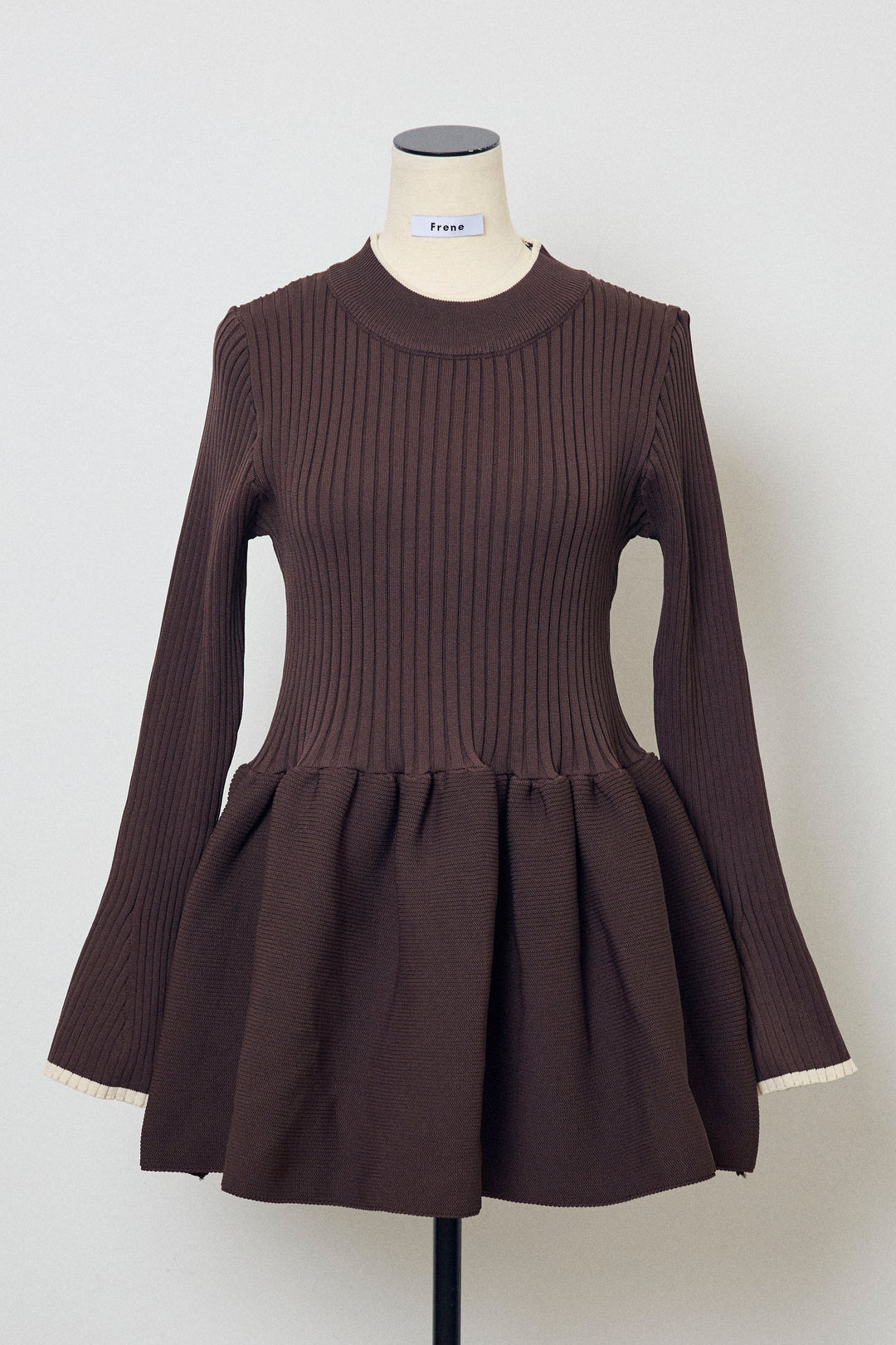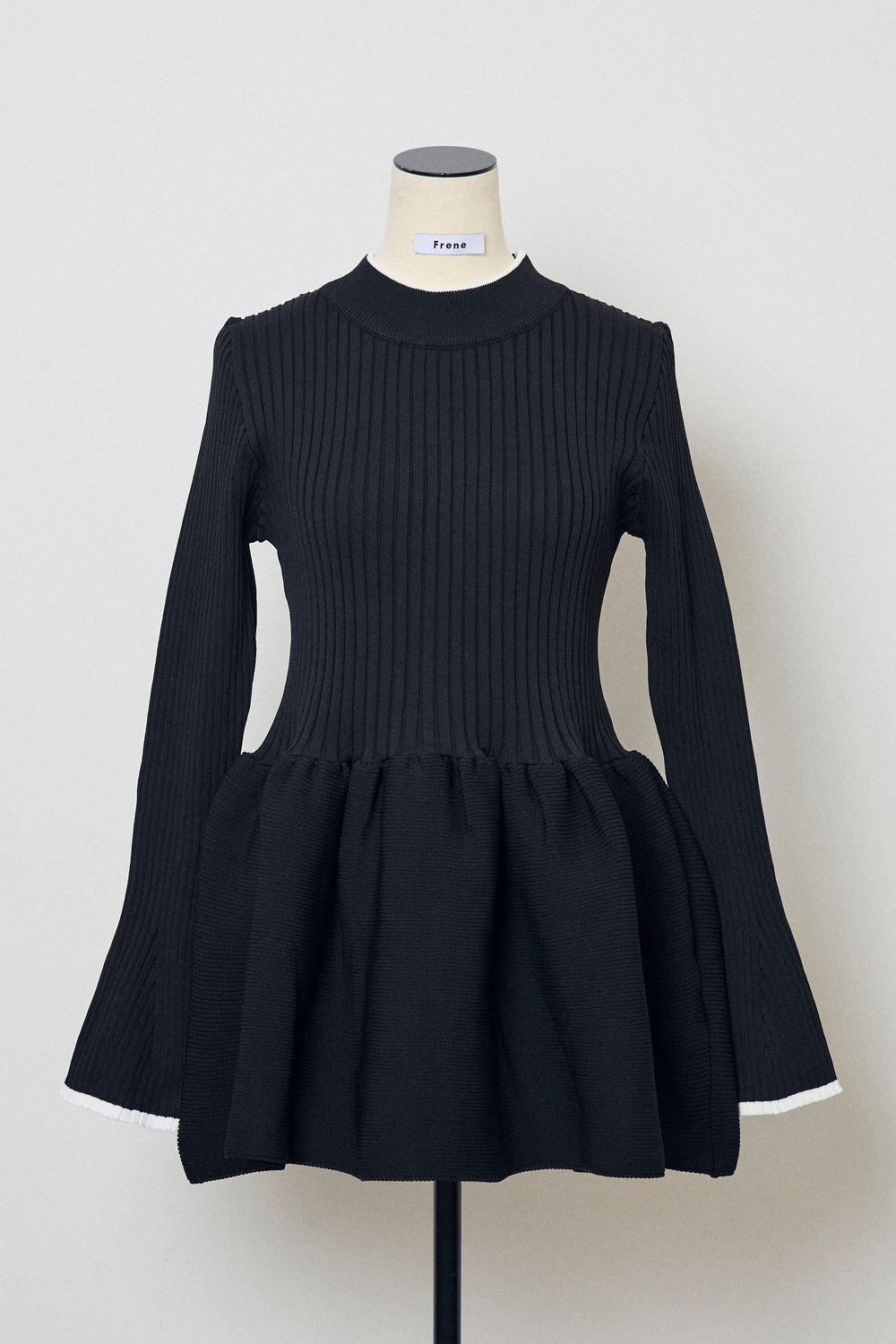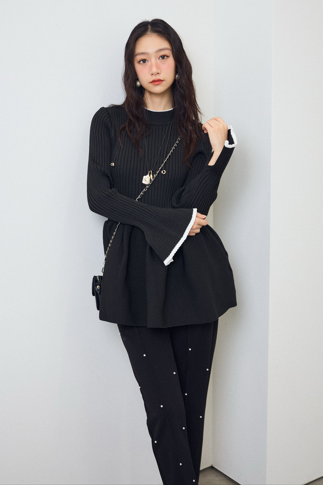 [予約/SET]リブフレア配色スリーブペプラムニット+センターシームランダムパールパンツ(2set)
