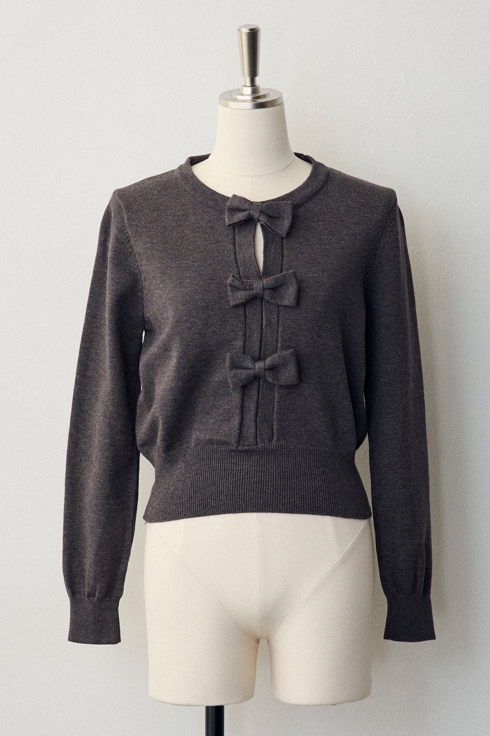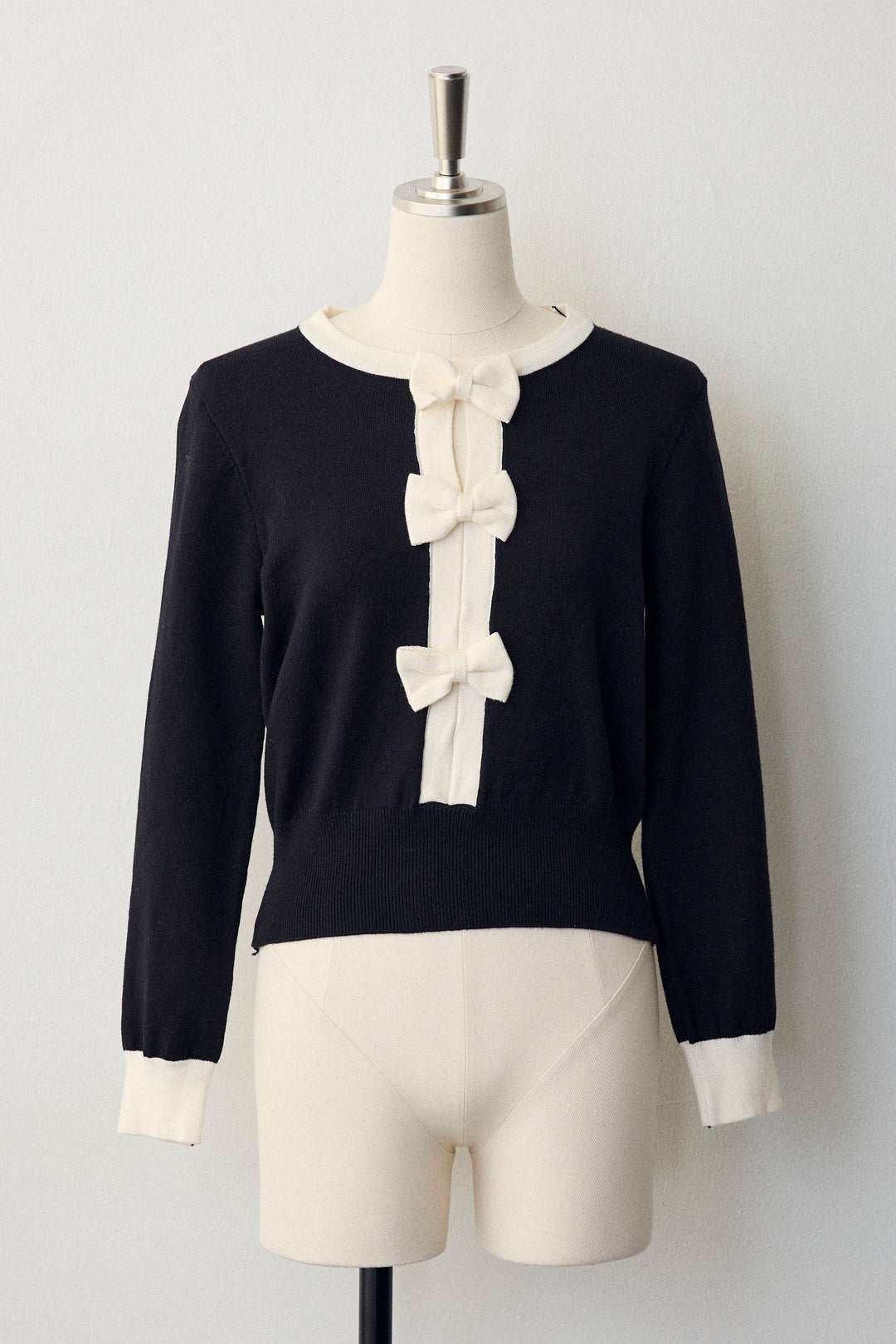 [予約/SET]ヘムリボンデザインショートカーデ+BIGリボンカフスデザインニットドッキングカーデ(2set)