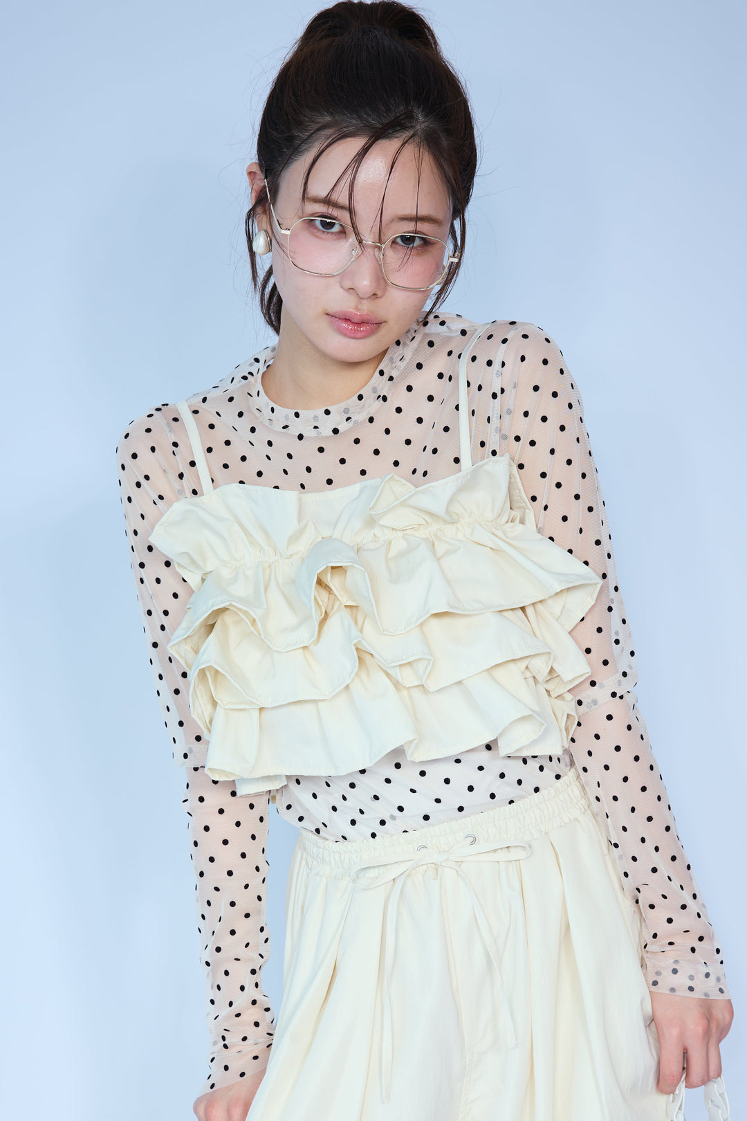 [予約]ミックスフリルピンタックサイドドロストブラウス