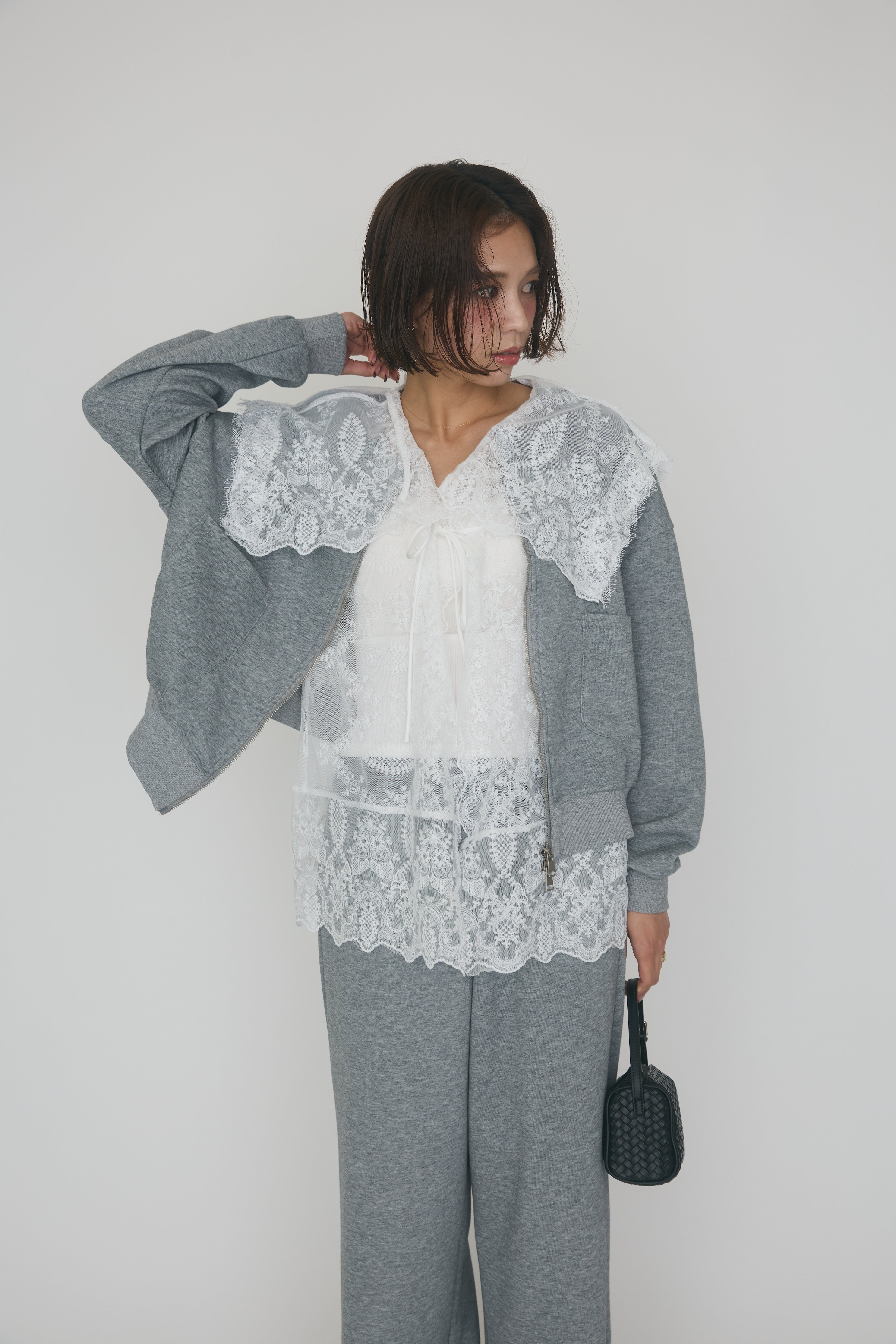 [予約]総レースカラーベストセットスウェットスカートセットアップ