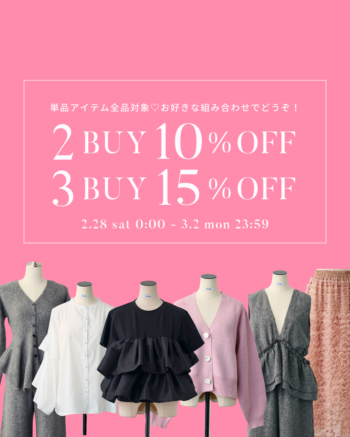 単品アイテム 2BUY10%OFF、3BUY15%OFF🍀3/2(月)23:59まで!