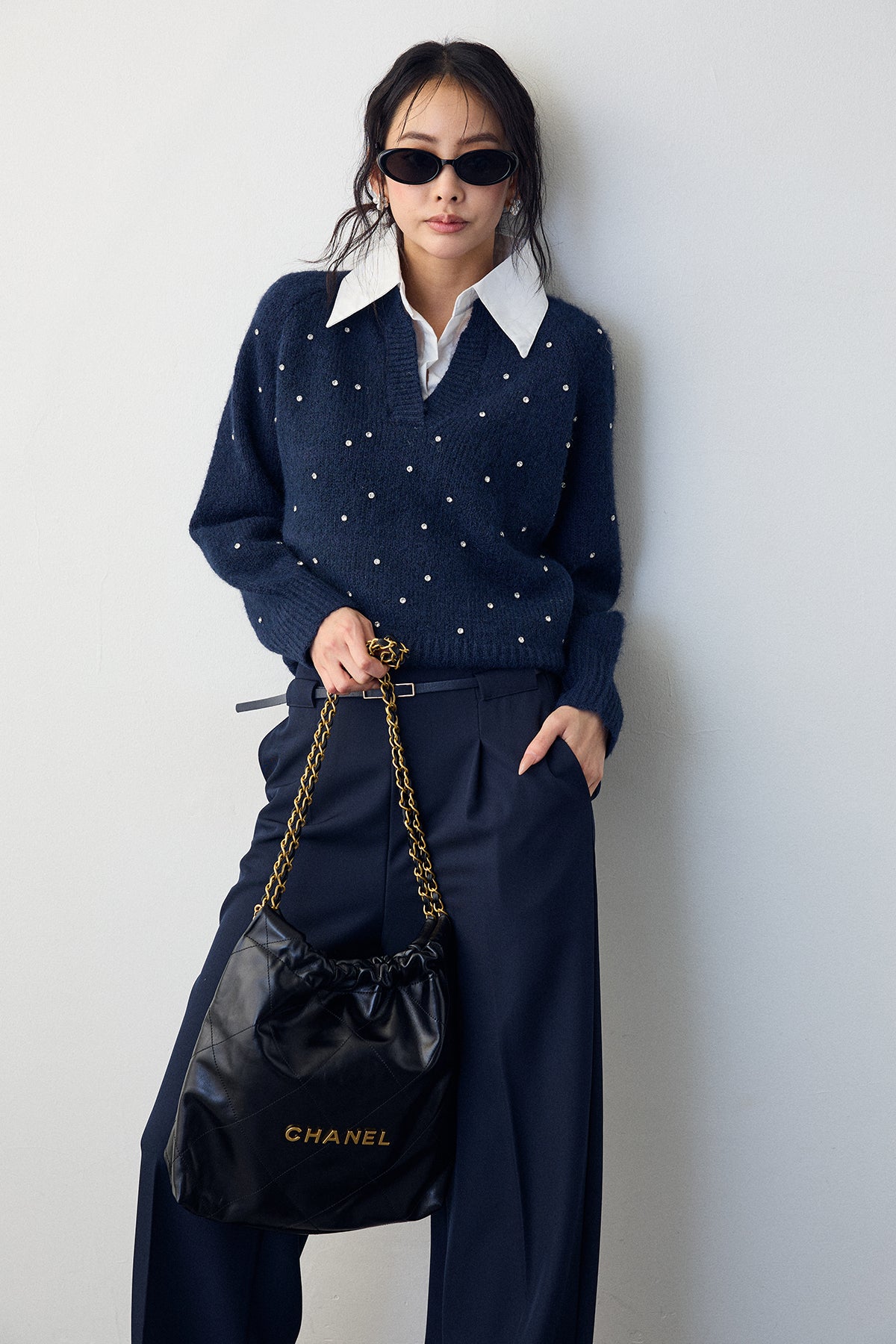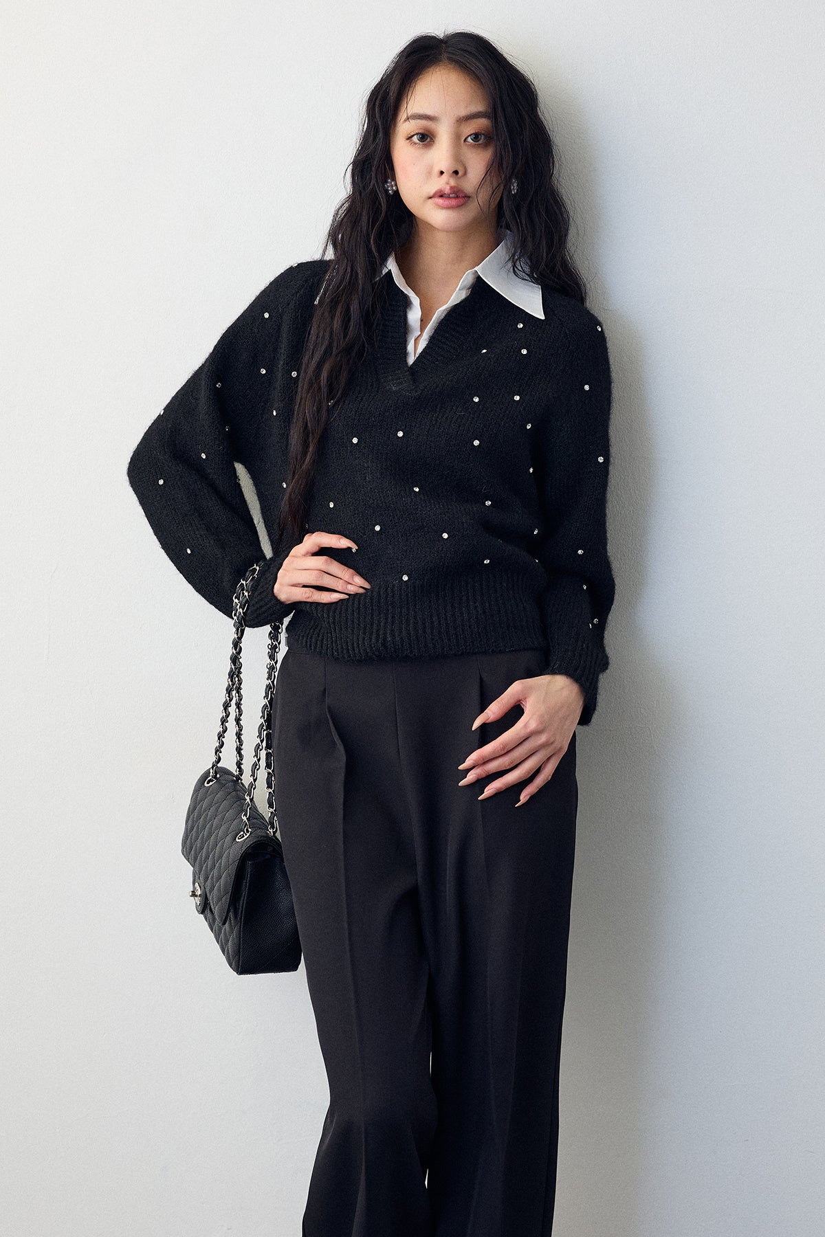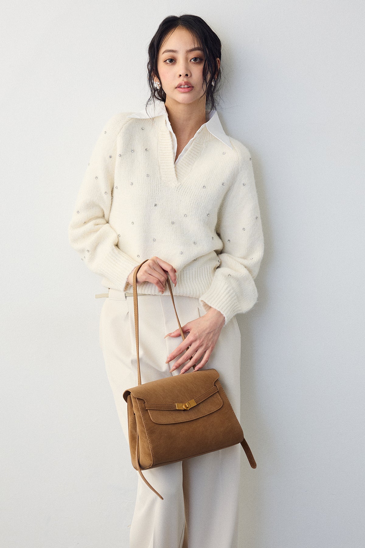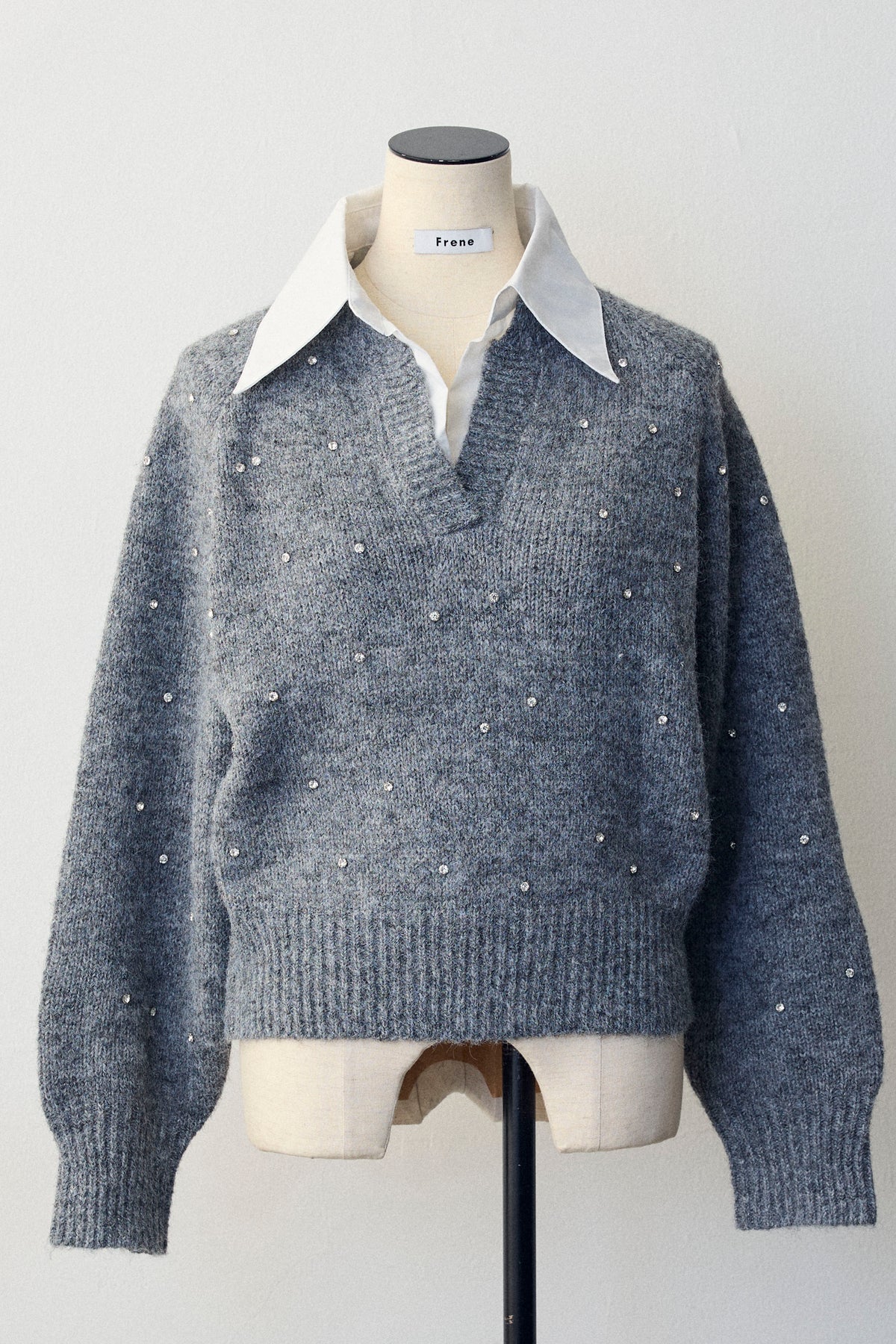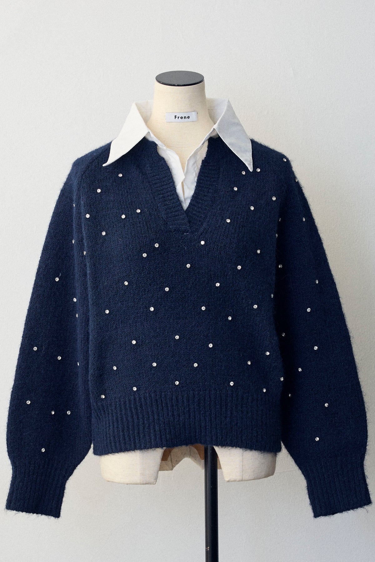 [予約]シャツ襟ラインストーンニットPOを含んだコーデセット商品を探す↓