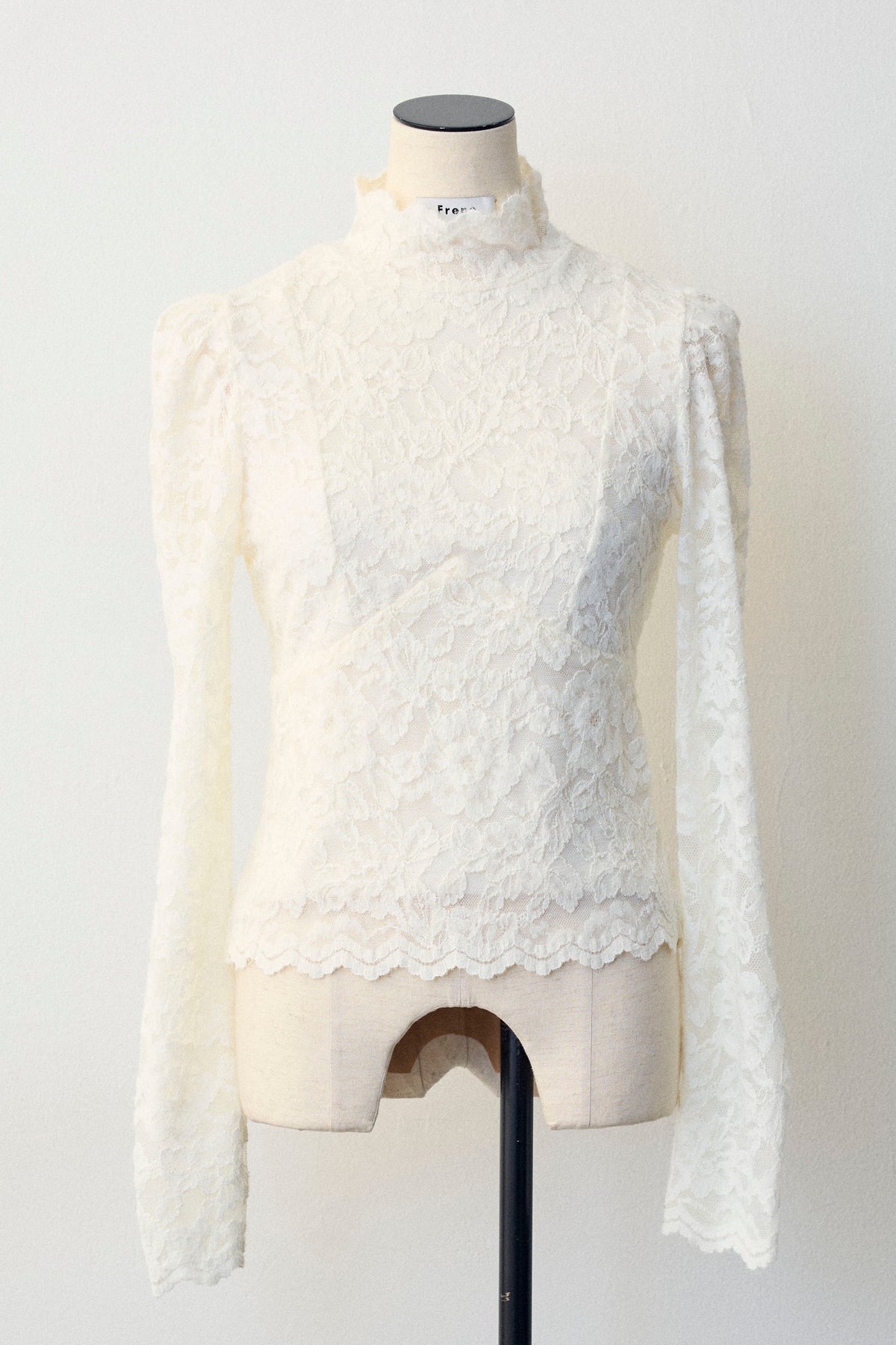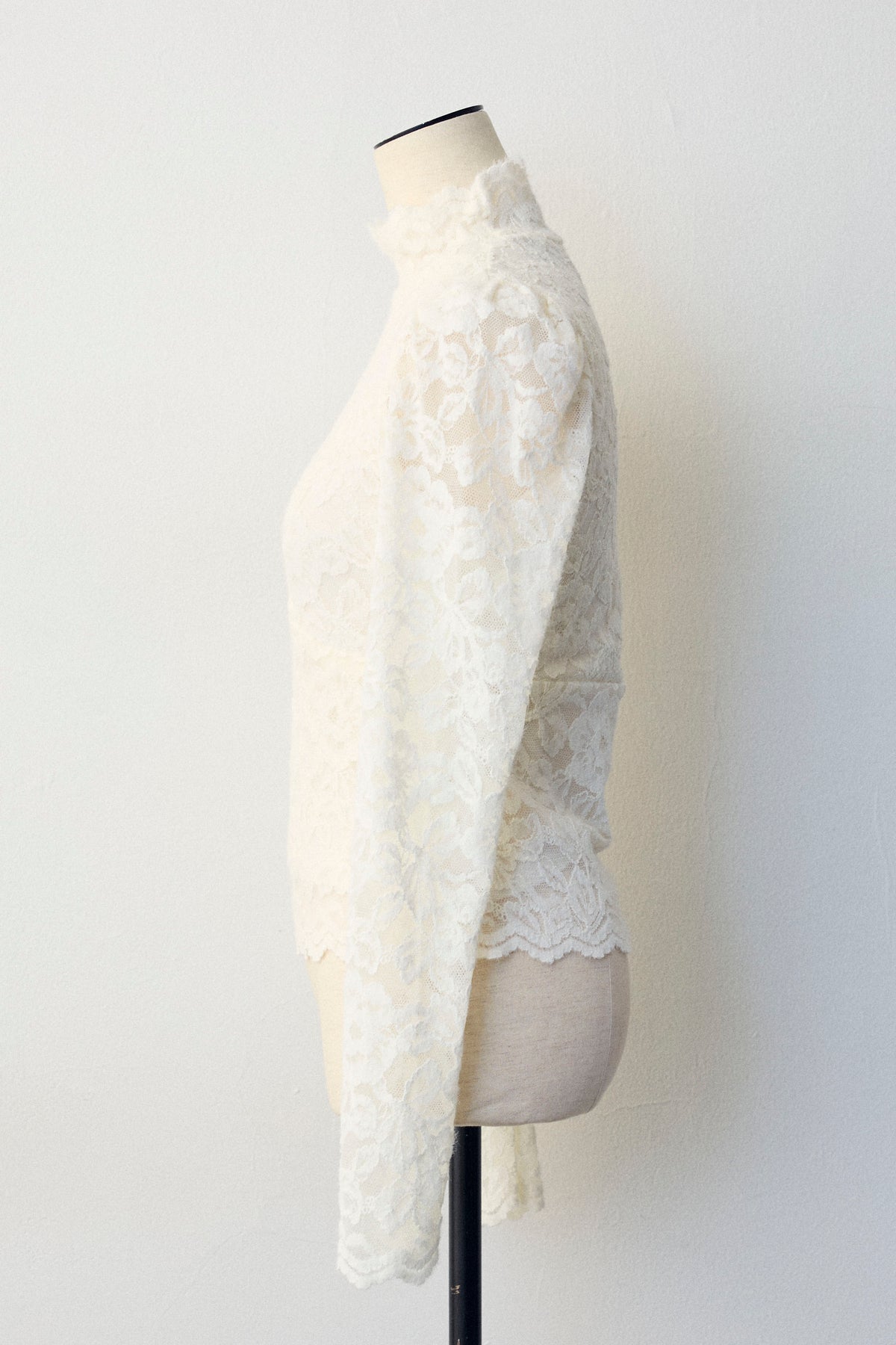いつものコーディネートに忍ばせるだけで、洗練された華やぎを添えるクラシカルレースハイネックトップス。 繊細なフラワーレースが肌を美しく透かせ、スタンドカラーの首元がクラシカルで知的な印象を与えます。 メインのトップスとして着るのはもちろん、ニットやジャンパースカートのインナーとして襟や袖を覗かせるレイヤードスタイルが特におすすめ。 袖山にさりげなく入れたギャザーが、ふんわりとした女性らしいシルエットを作り出します。 デイリー使いから、ちょっとしたお呼ばれまで、シーンを問わず頼りになるプラスワンアイテムです。