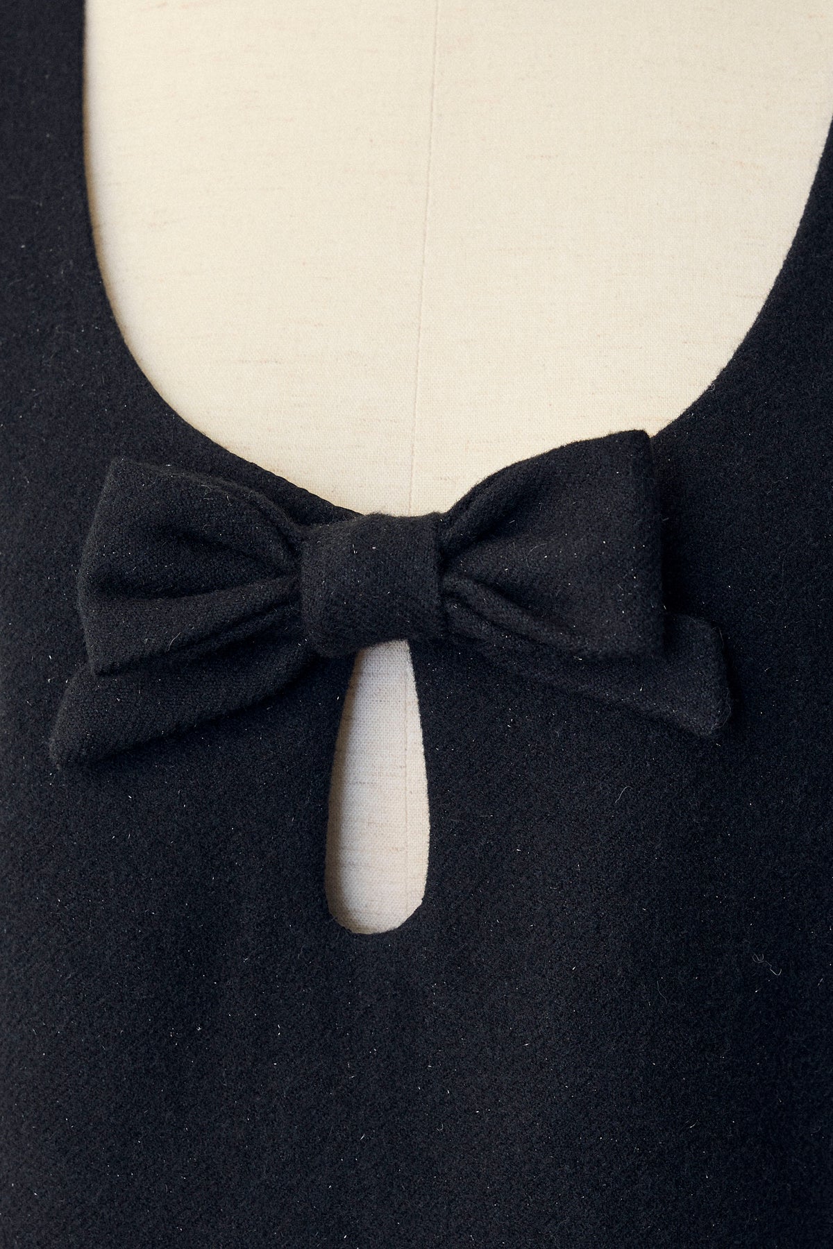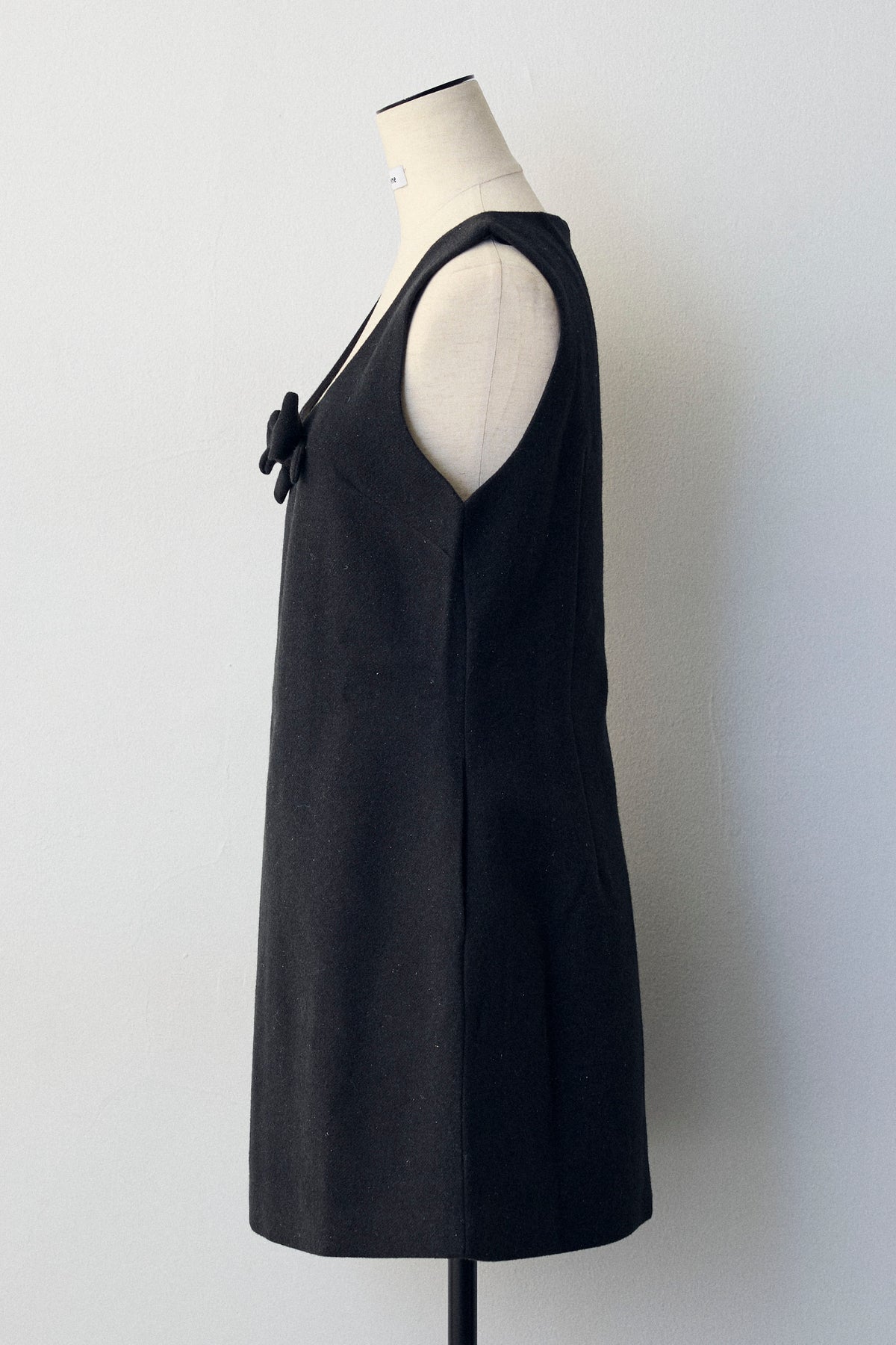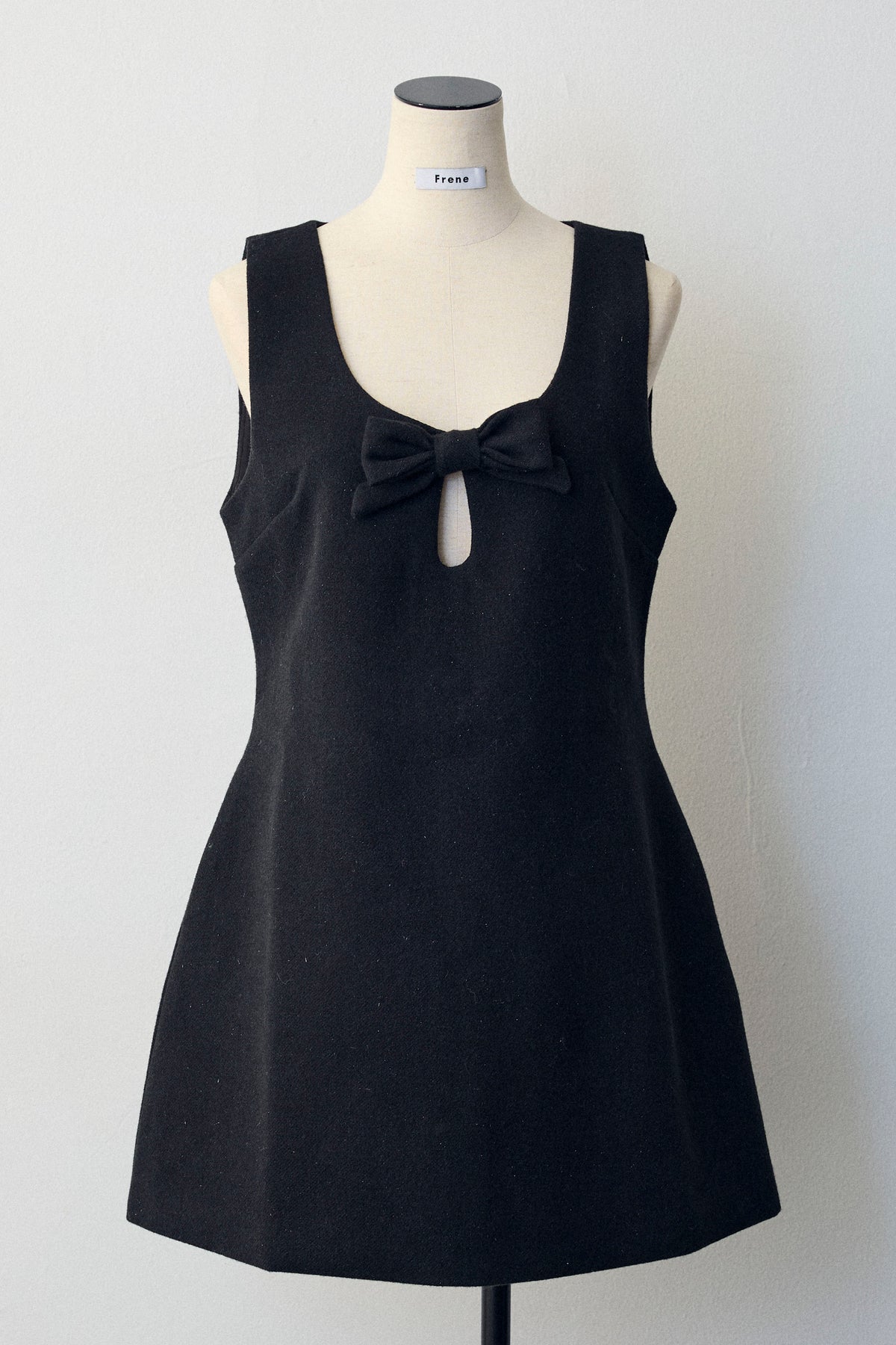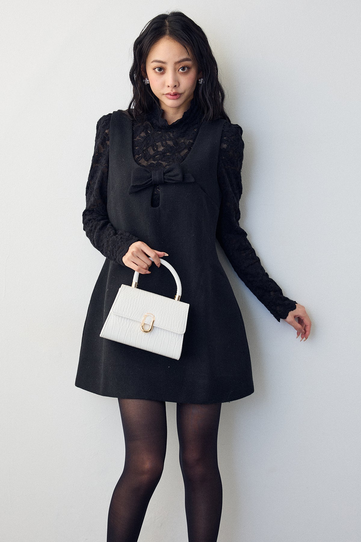 大人の愛らしさとトレンド感を凝縮した、フロントリボンミニジャンパースカート。 胸元に施されたリボンがフェミニンなアクセントとなり、その下のさりげないカットアウトデザインが、甘さの中に程よい抜け感をプラスします。 広がりすぎない上品なAラインシルエットは、体のラインを美しく見せつつ、気になる腰回りを自然にカバー。 インナーにレーストップスやタートルネックを合わせるだけで、クラシカルで洗練されたレイヤードスタイルが完成します。