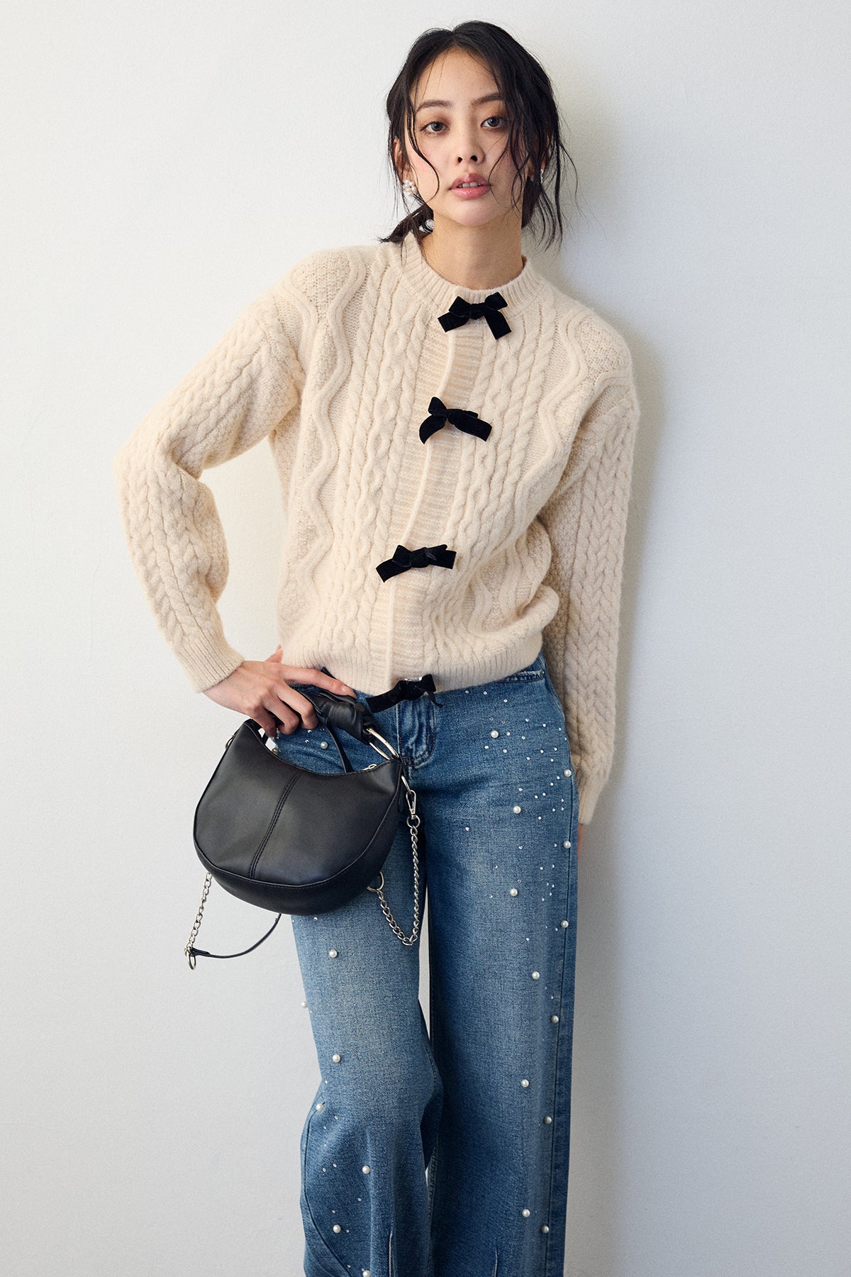 [予約]ベロアリボンケーブルニットカーデを含んだコーデセット商品を探す↓