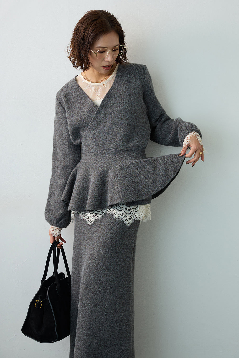 [予約]シアーリボン異素材ドッキングペプラムブラウス