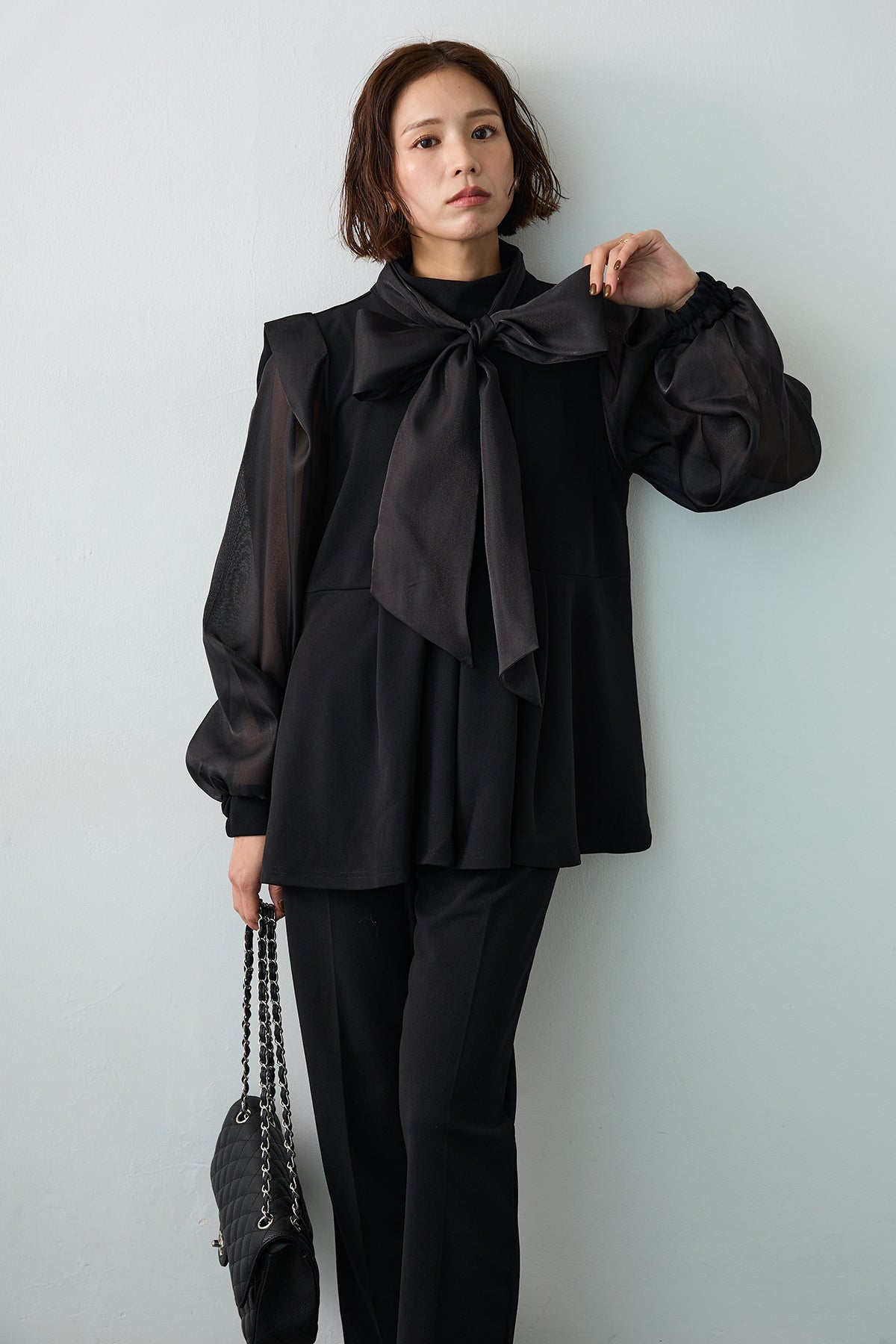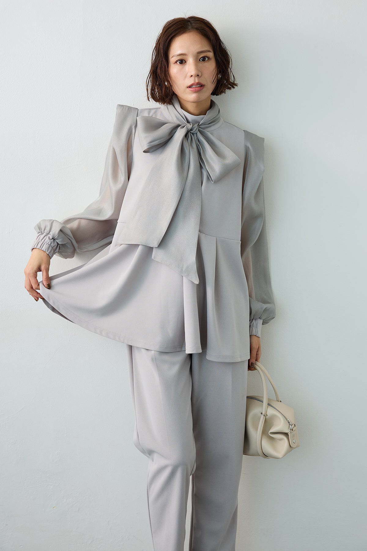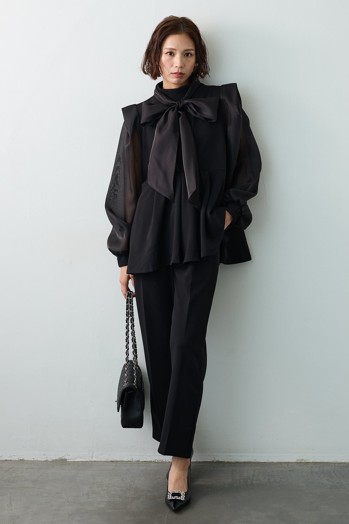 [予約]シアーリボン異素材ドッキングペプラムブラウスを含んだコーデセット商品を探す↓