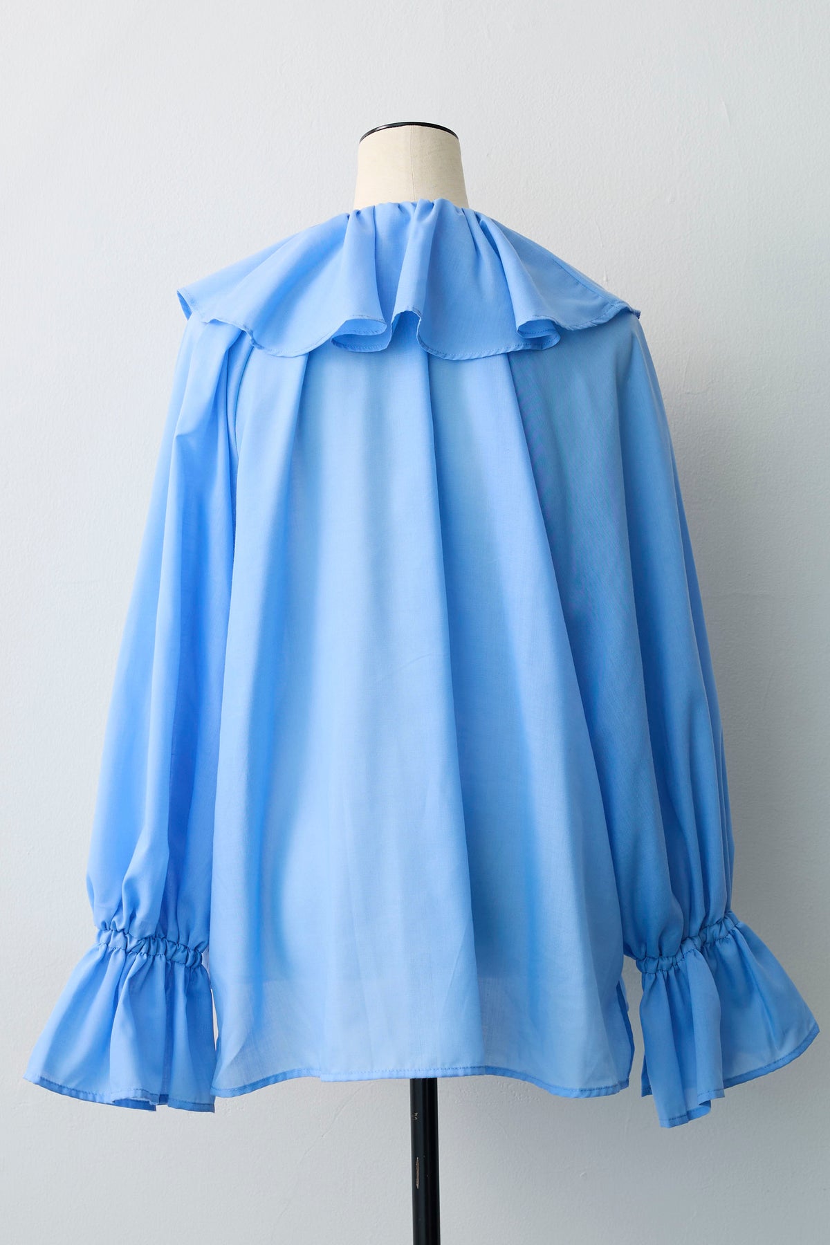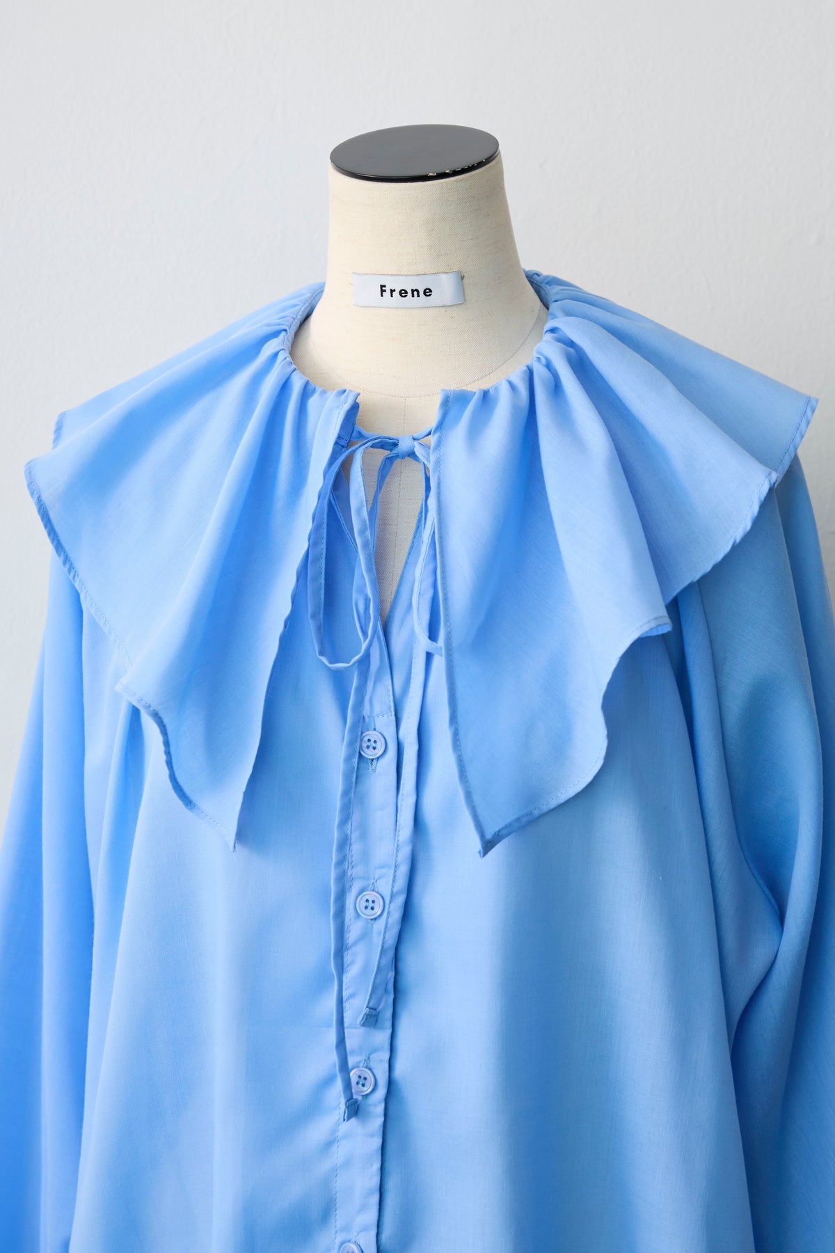 ふわりと空気を含むような軽やかな素材感が、フェミニンなムードを高めるブラウス。 顔周りを華やかに彩る大きめのフリルカラーは、存在感がありながらも繊細な透け感で、小顔効果も期待できる嬉しいデザインです。 袖口はゴム仕様のキャンディスリーブになっており、たくし上げればふんわりとしたボリューム感が手元を愛らしく演出します。 一枚で着映えするのはもちろん、ベストやジレのインナーとして襟や袖を覗かせれば、いつものコーディネートがグッと華やぐ名脇役としても活躍します。