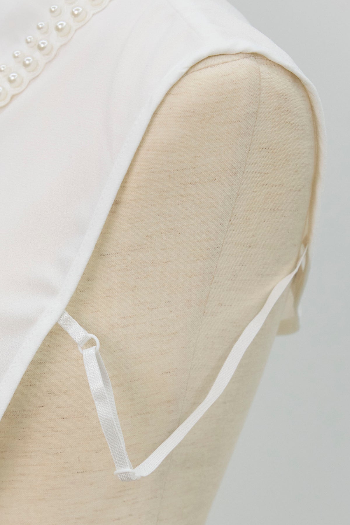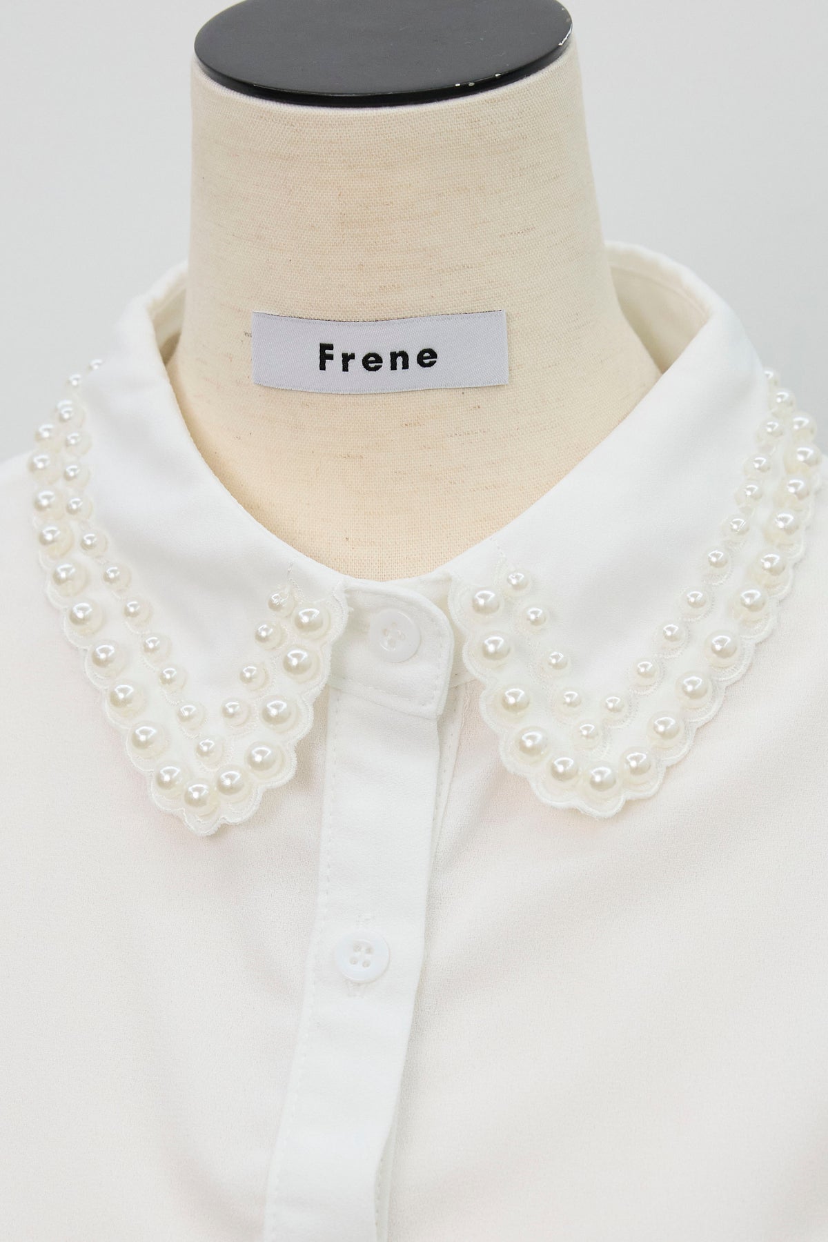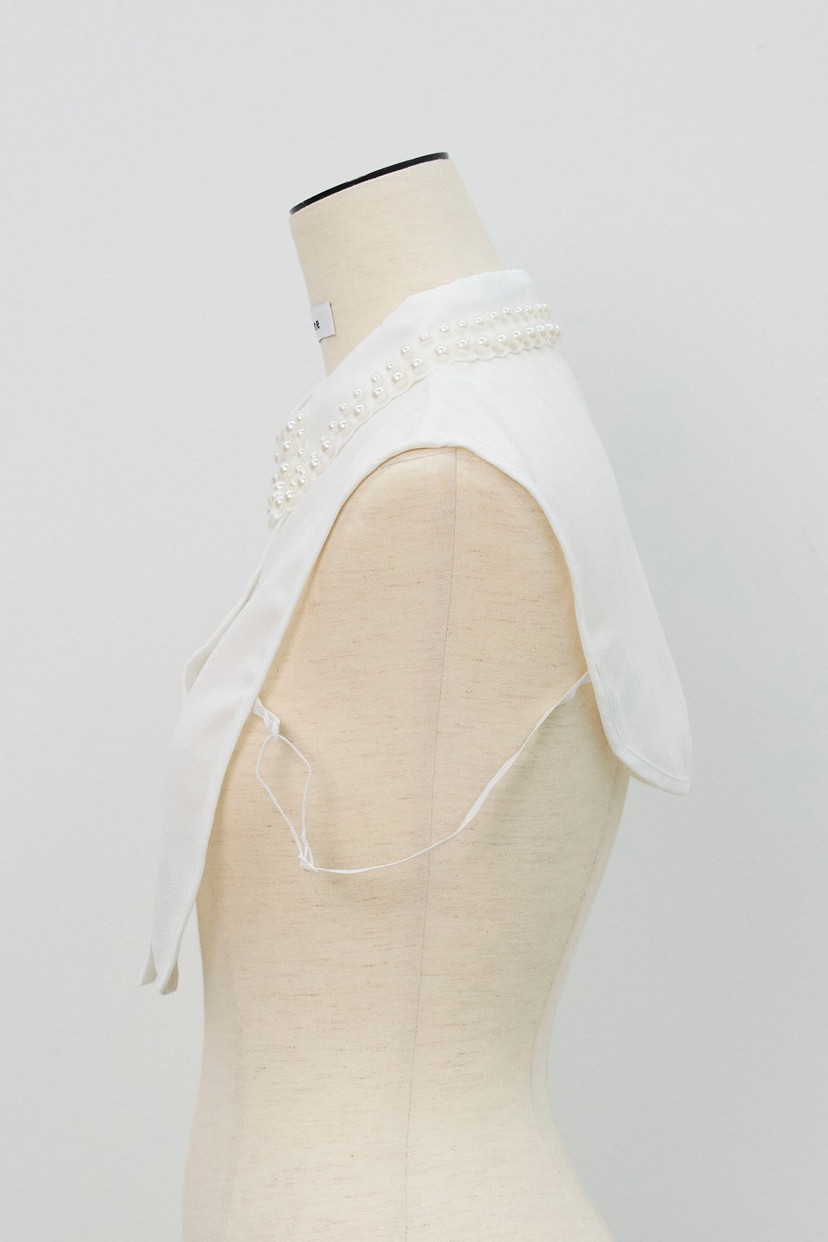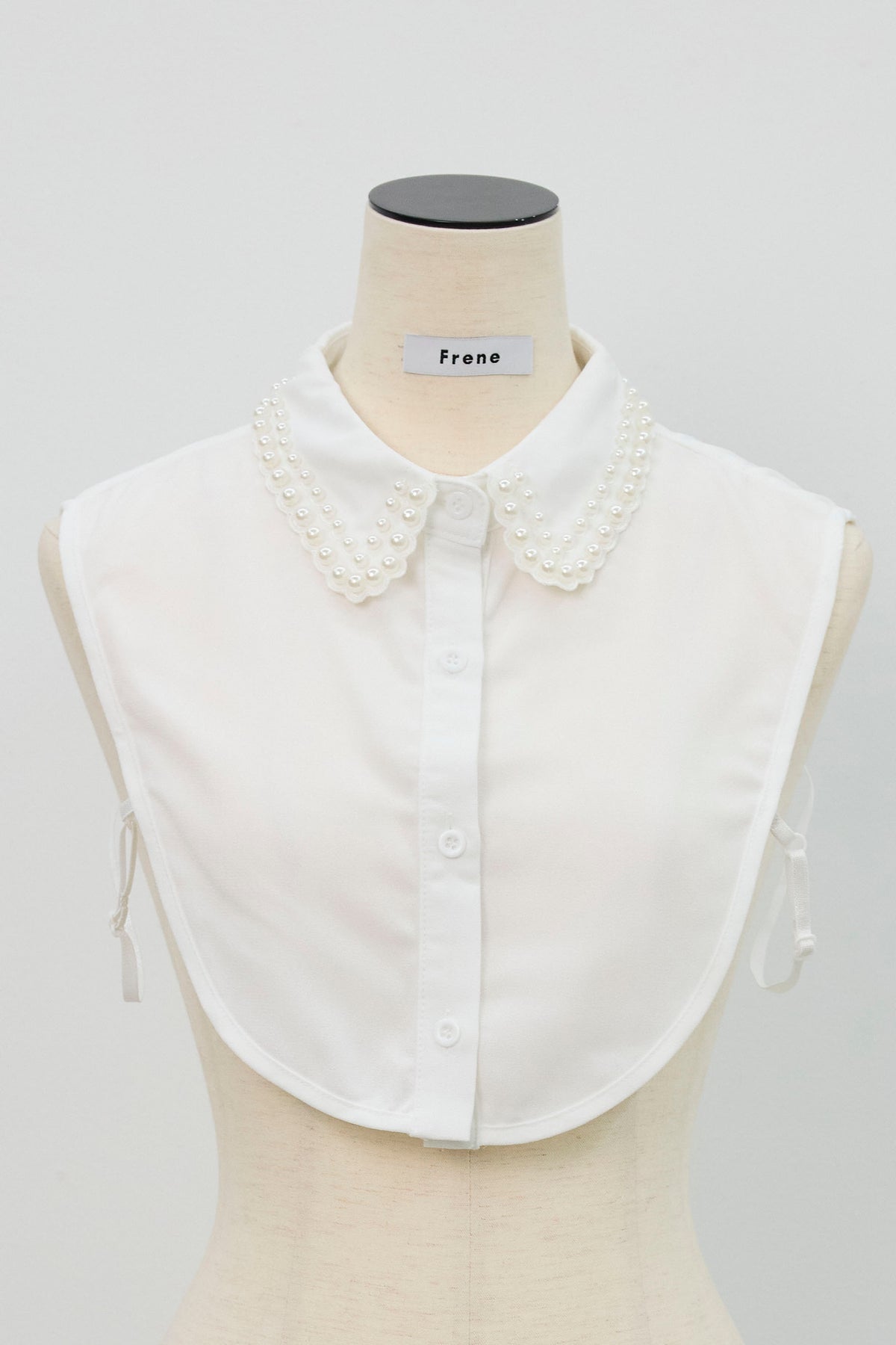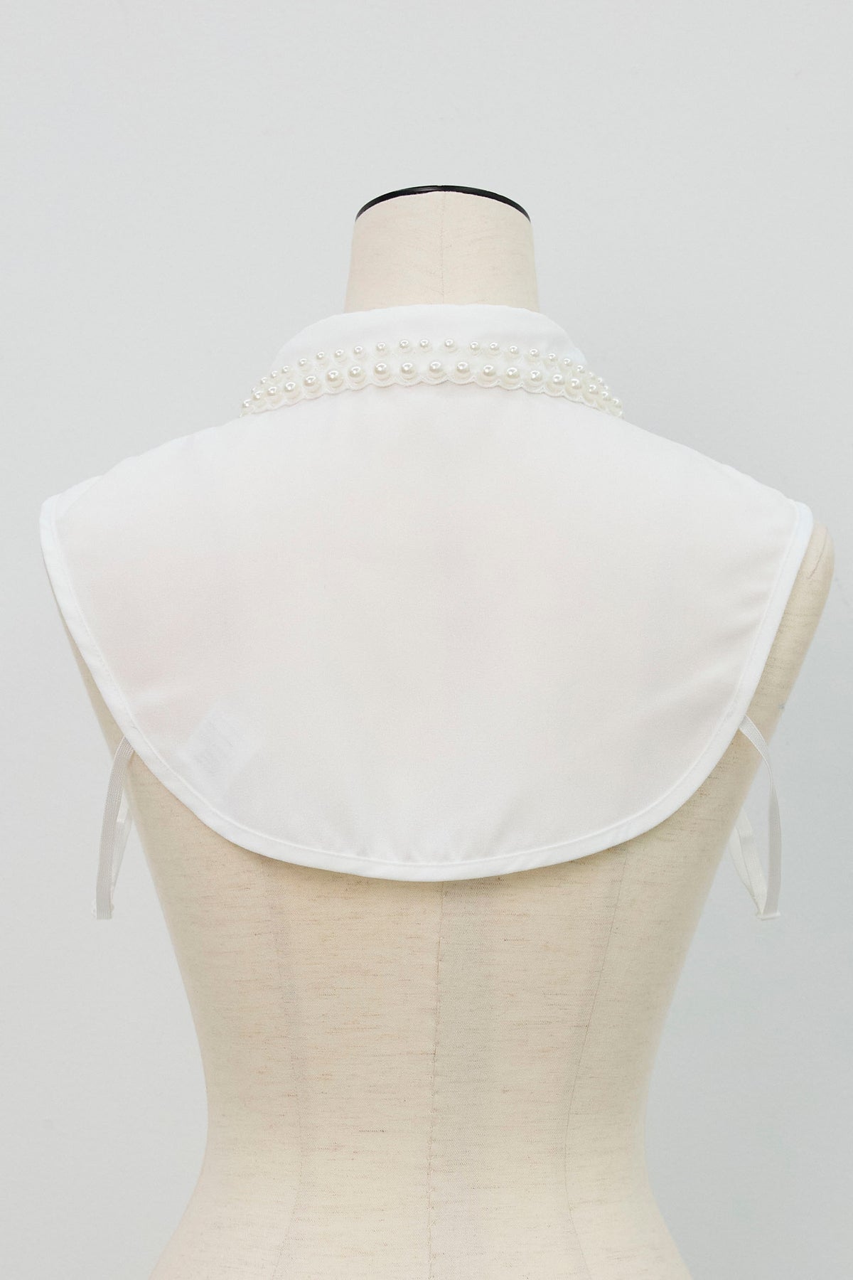 パールをたっぷりあしらった付け襟は、いつものコーデを上品に格上げしてくれるアイテム。 重ねるだけで華やかさが加わり、ニットやスウェットなどカジュアルなトップスとも好相性。 丸みのある襟元がやわらかい印象をつくり、顔まわりを明るく見せてくれます。 シーズン問わず使える、万能アクセサリー感覚のアイテムです。
