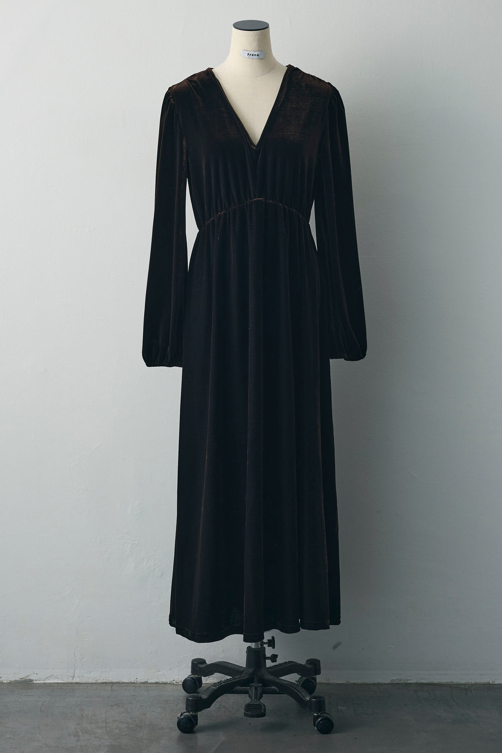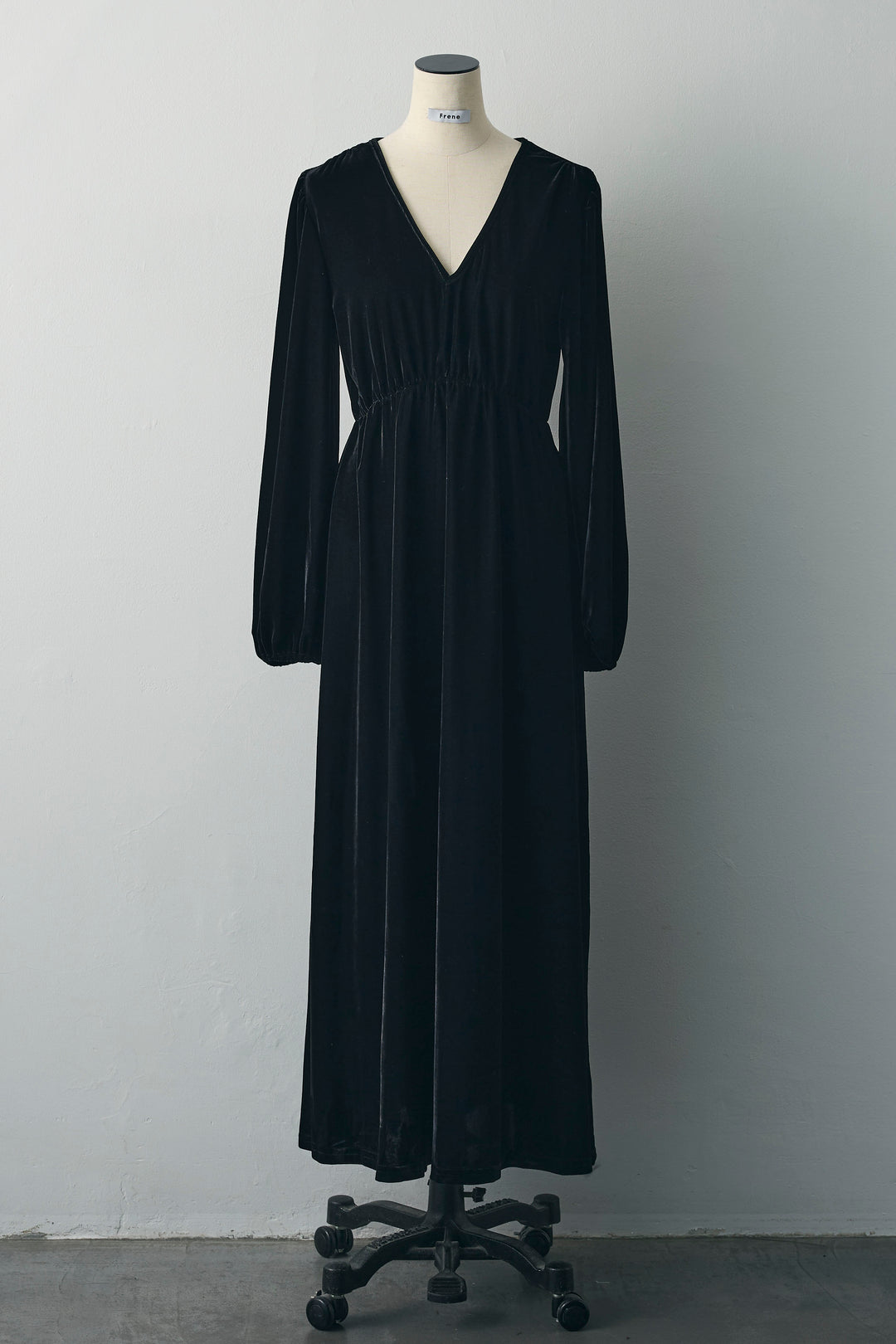 [予約]Vネックベロアロングワンピース
