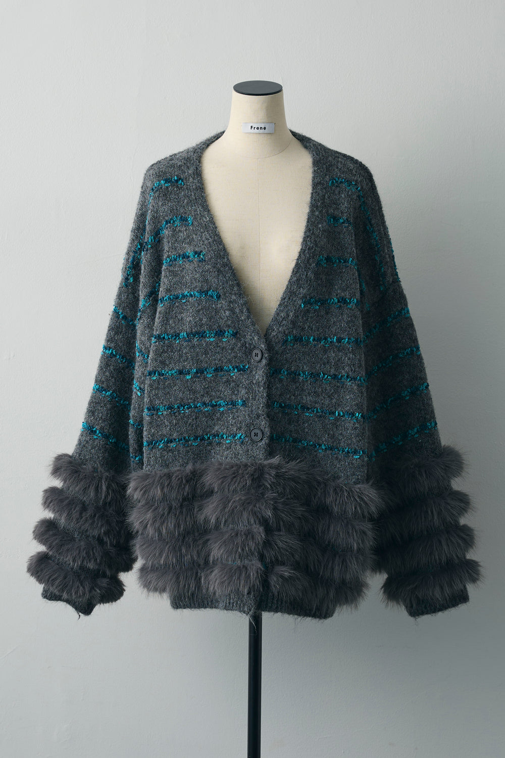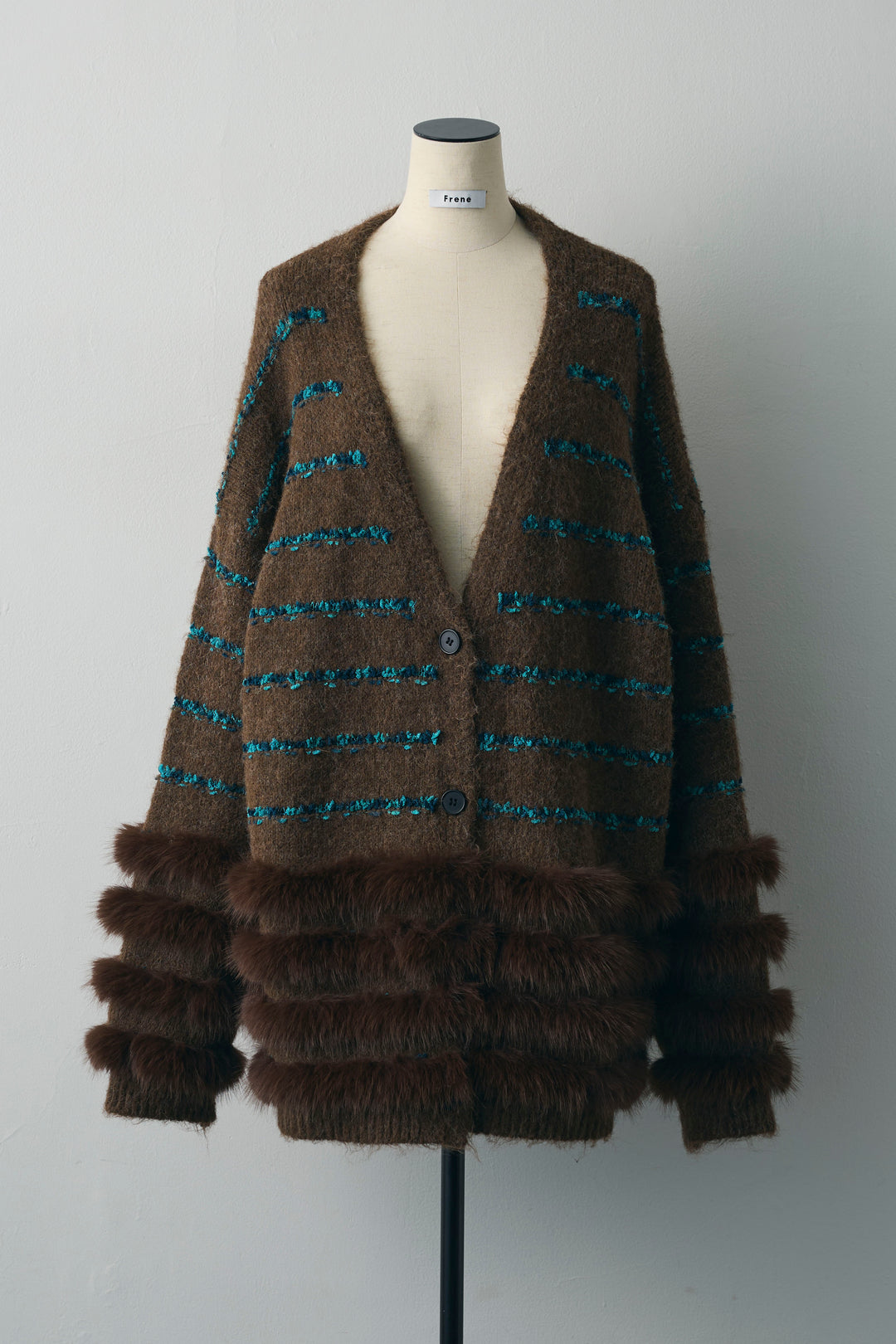 [予約]フェザーライン配色シャギーニットカーディガン