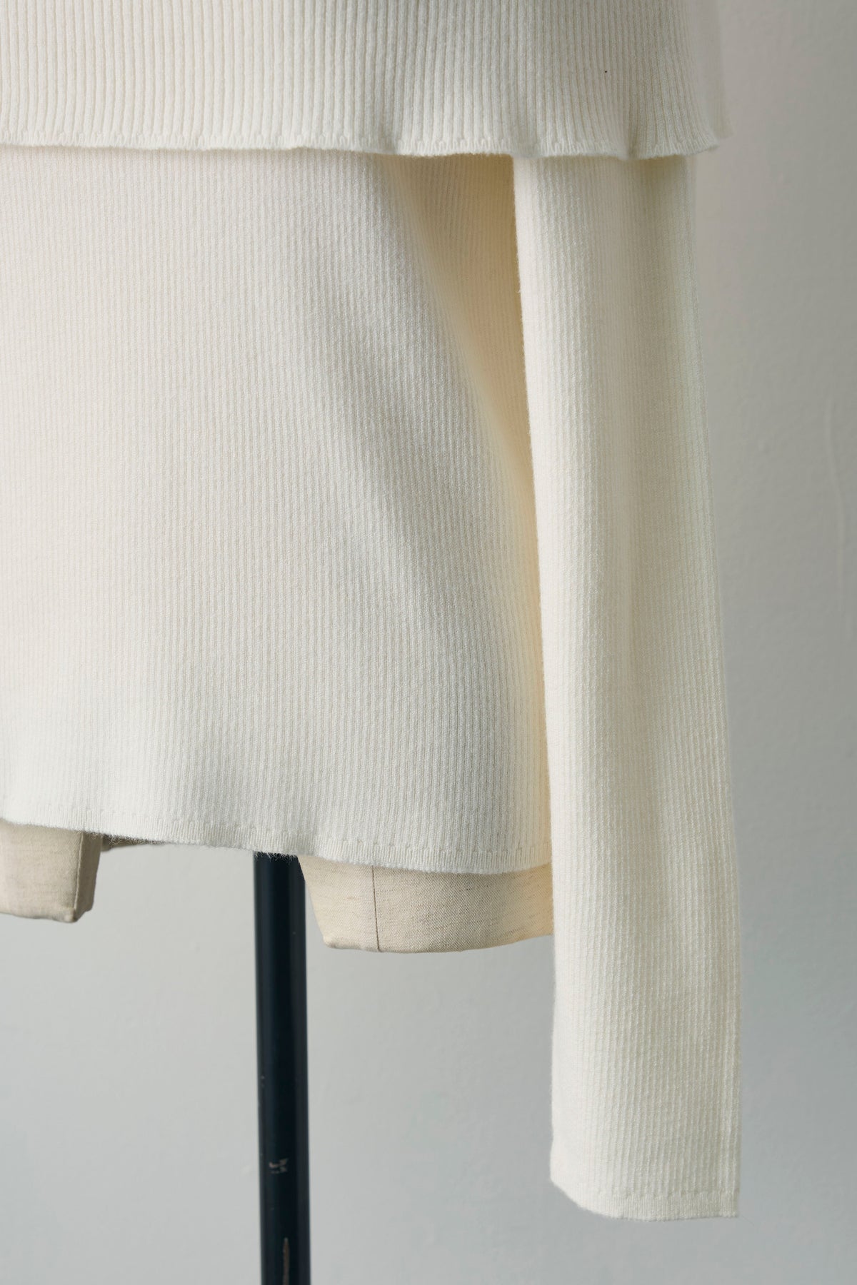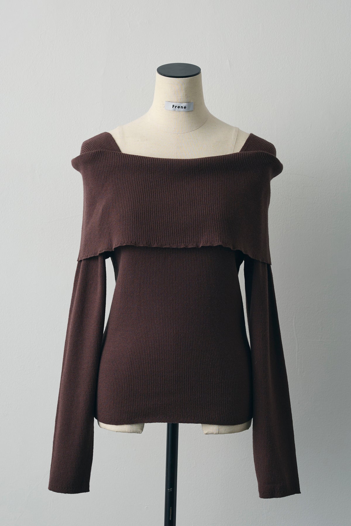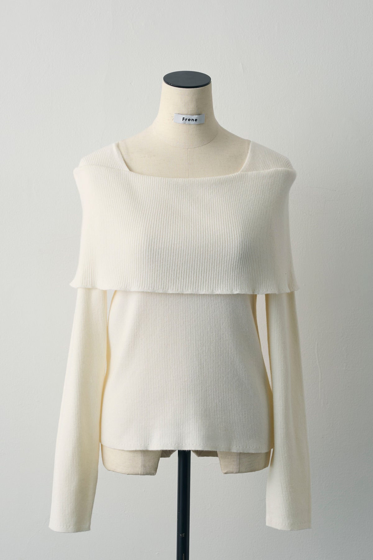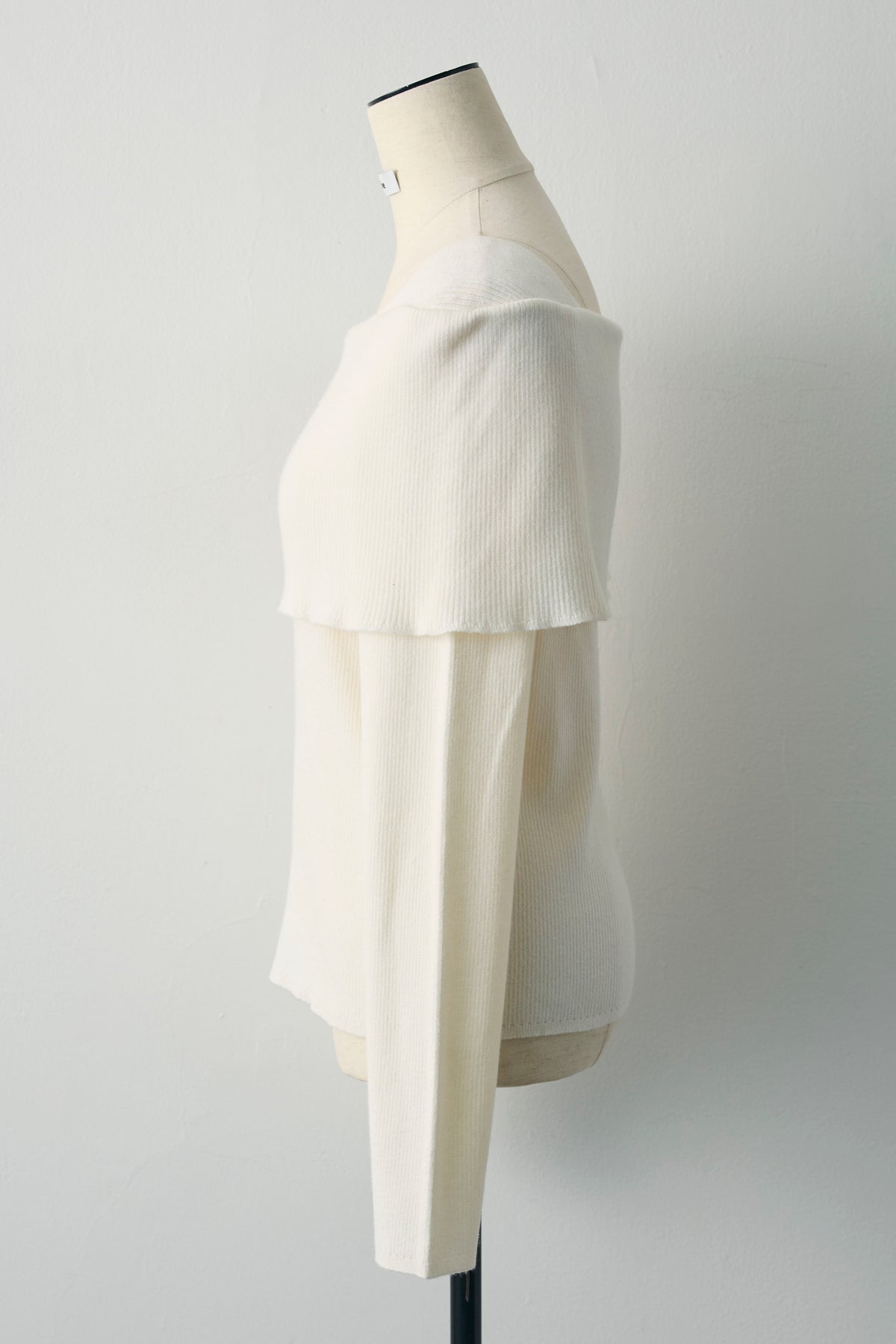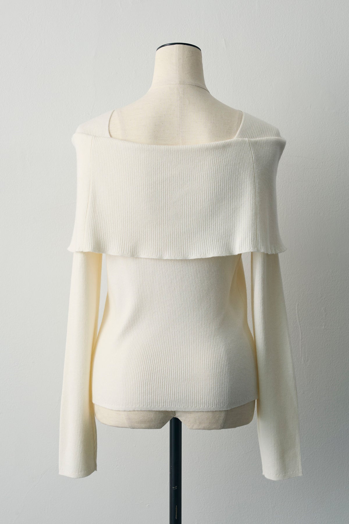 肩まわりに大きく折り返したデザインがポイントのリブニット。伸びがよく体にほどよく沿い、袖は少し長めで手元にくしゅっと表情が出ます。肩を少し落としてデコルテ見せ、まっすぐ着てボートネック風など着方で印象チェンジ。デニムやフレアスカートはもちろん、ジャケットの中にもすっきり収まります。