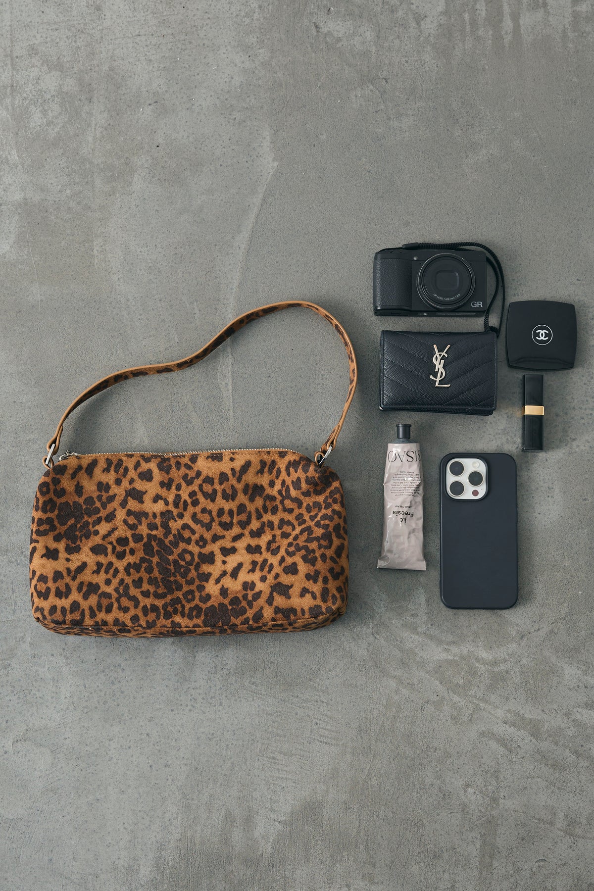 起毛感のあるレオパードが装いを引き締めるショルダーバッグ。財布やスマホ、コスメが収まる実用サイズ。脇下に収まる短めストラップで今っぽく、コートの上からも軽やかに持てます。