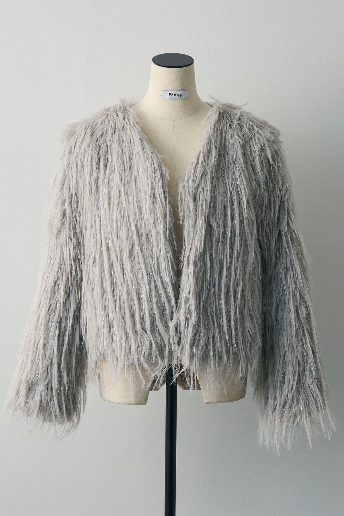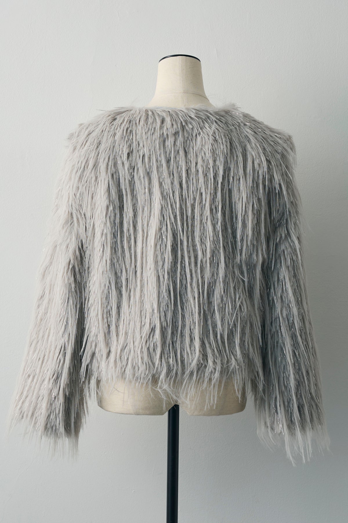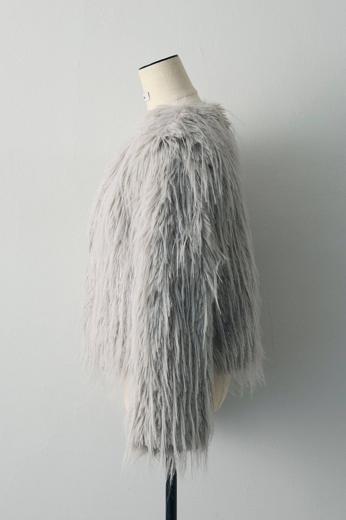毛足の長いフェイクファーに、きらっと光る糸をミックス。羽織るだけでコーデが華やぎ、ワンピやデニムなどシンプル服も特別見えします。程よいボリュームと丈感でバランスが取りやすく、肩にかけてもかわいい一枚。