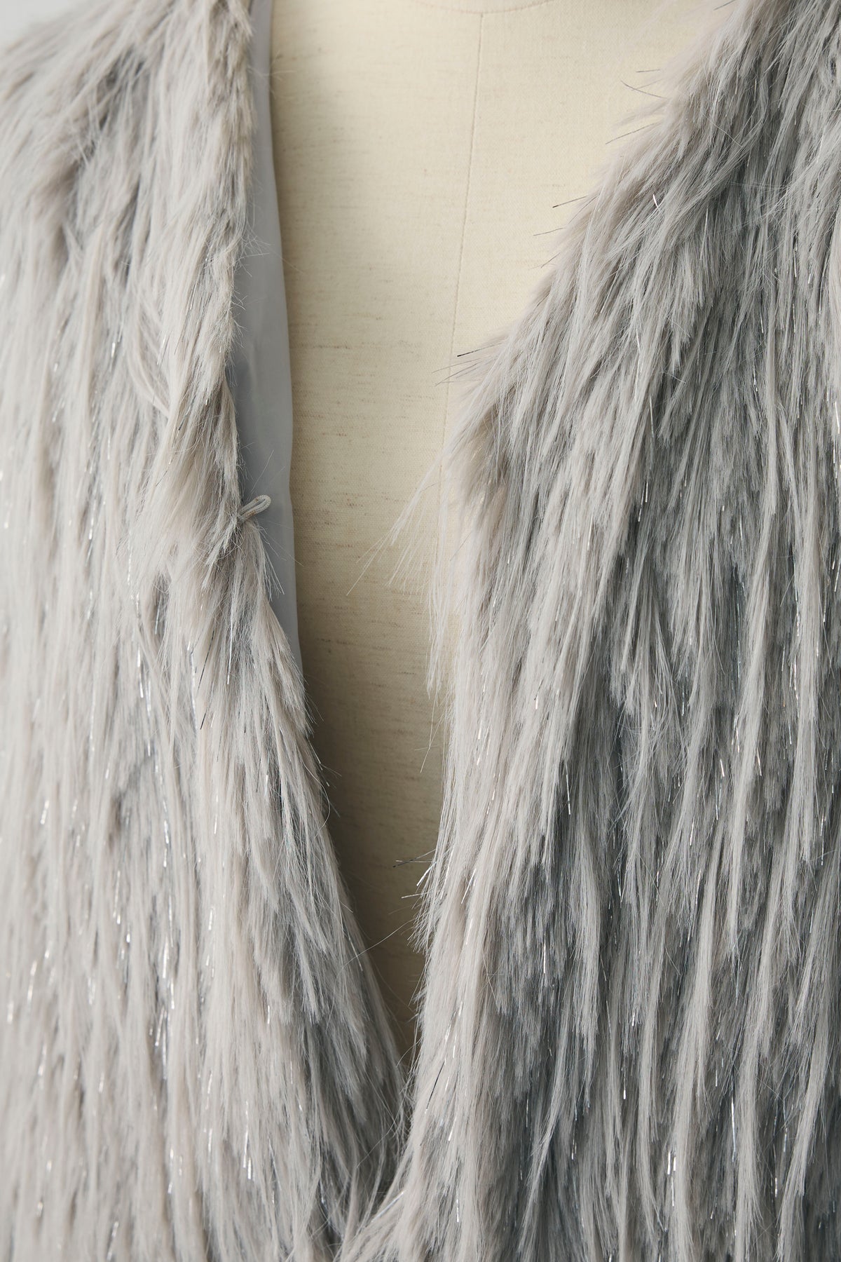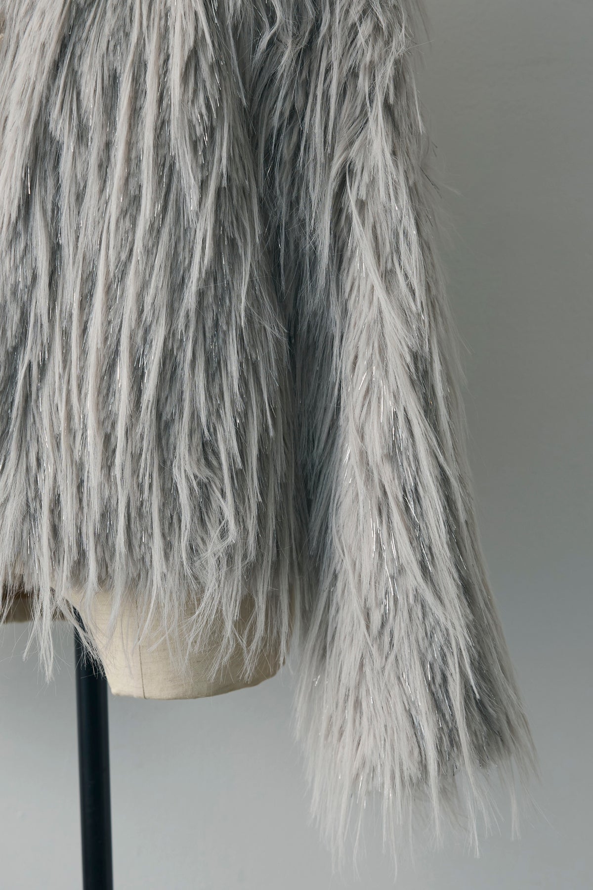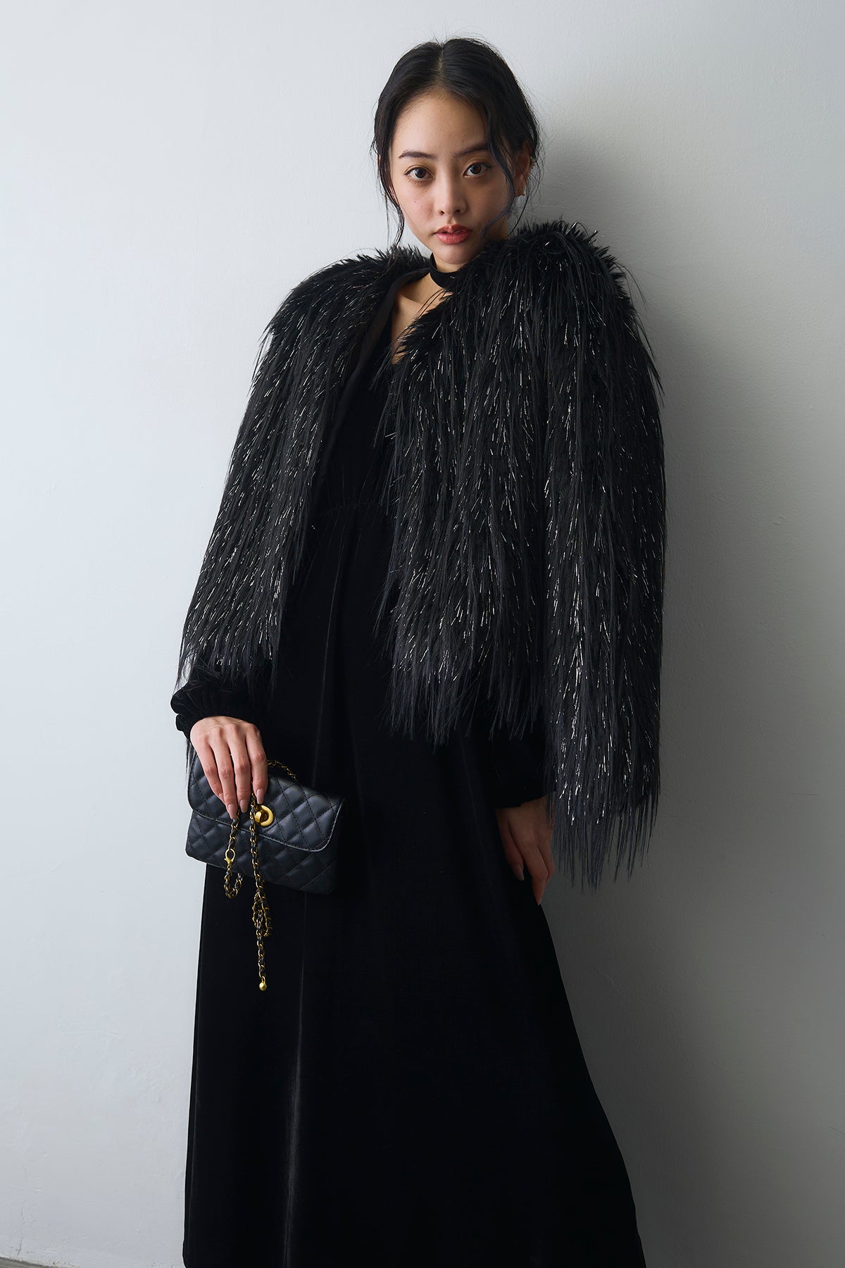 毛足の長いフェイクファーに、きらっと光る糸をミックス。羽織るだけでコーデが華やぎ、ワンピやデニムなどシンプル服も特別見えします。程よいボリュームと丈感でバランスが取りやすく、肩にかけてもかわいい一枚。