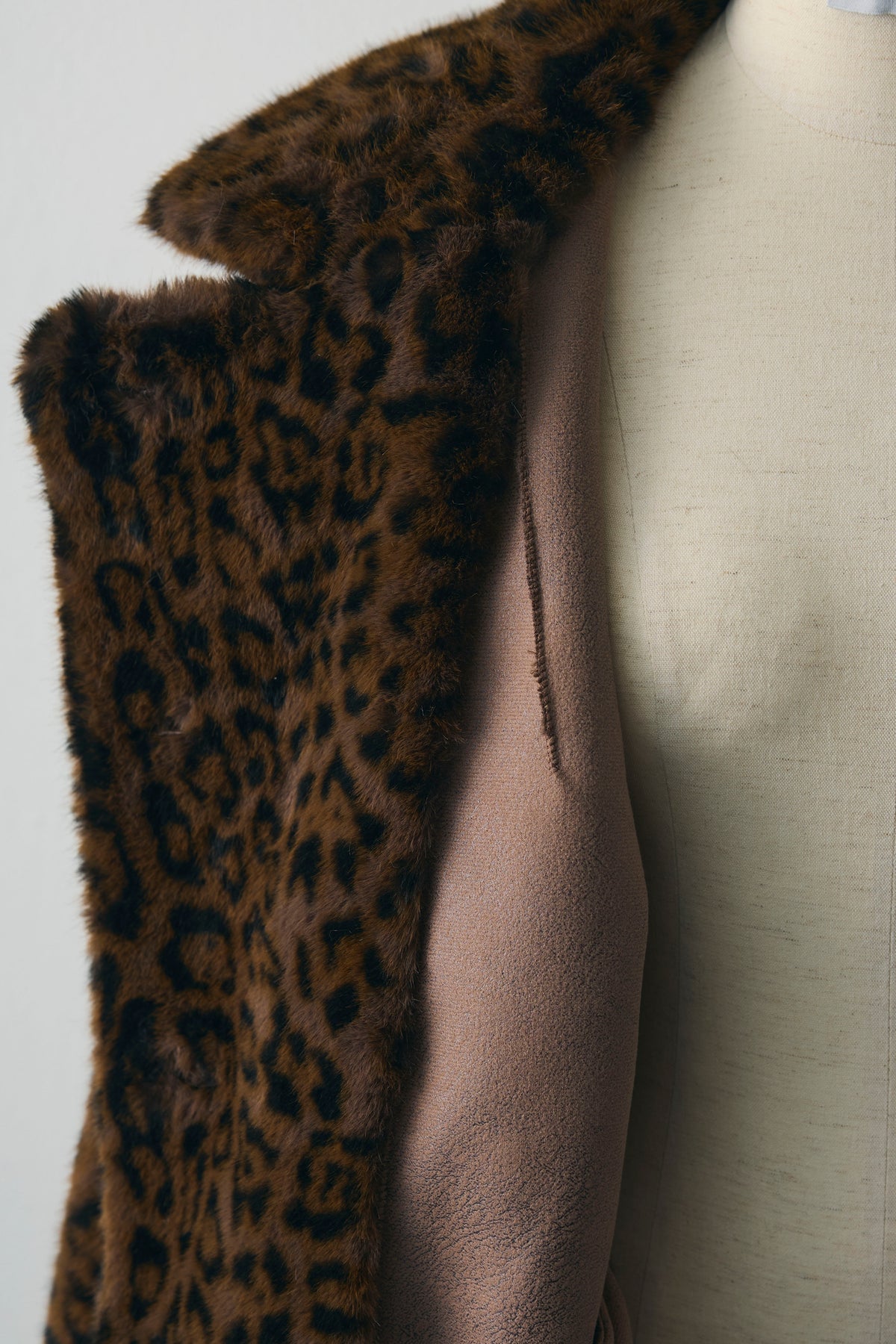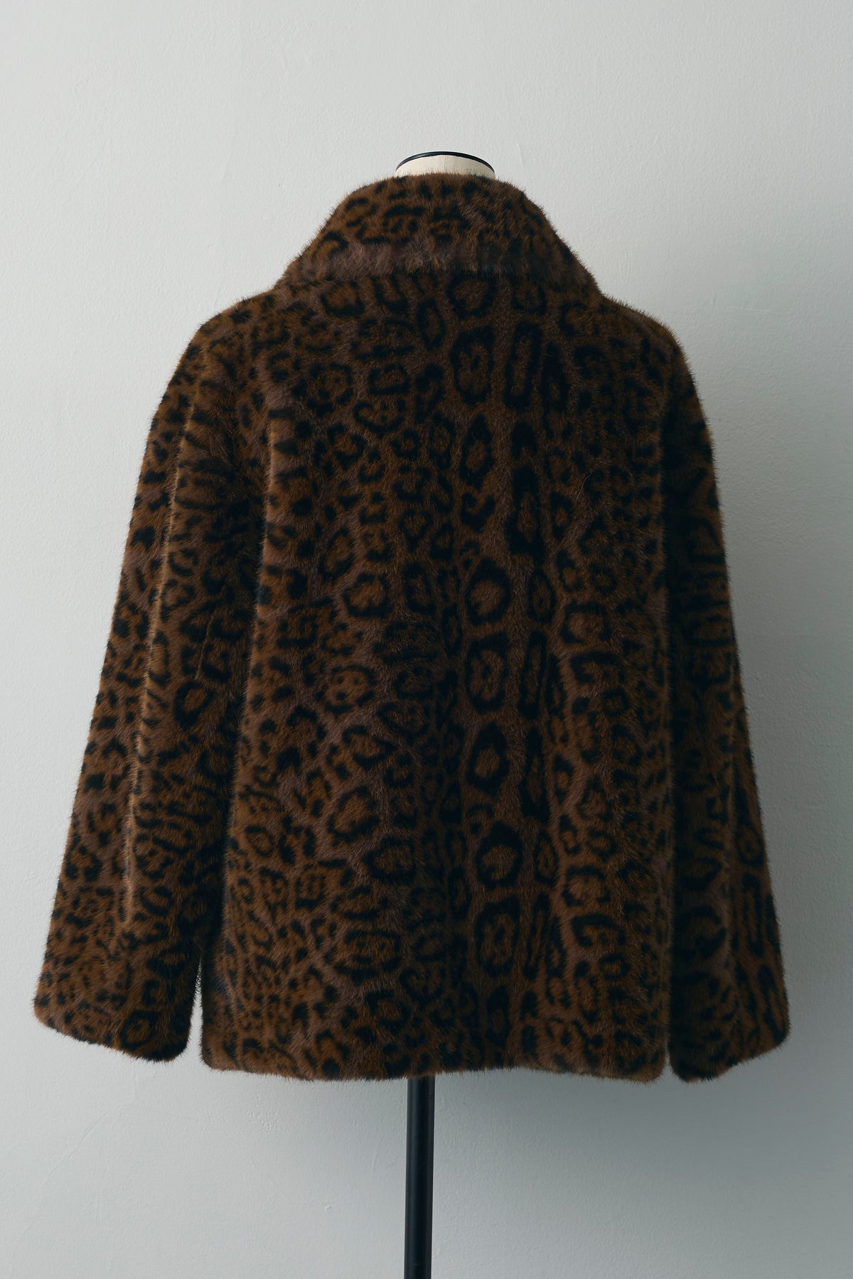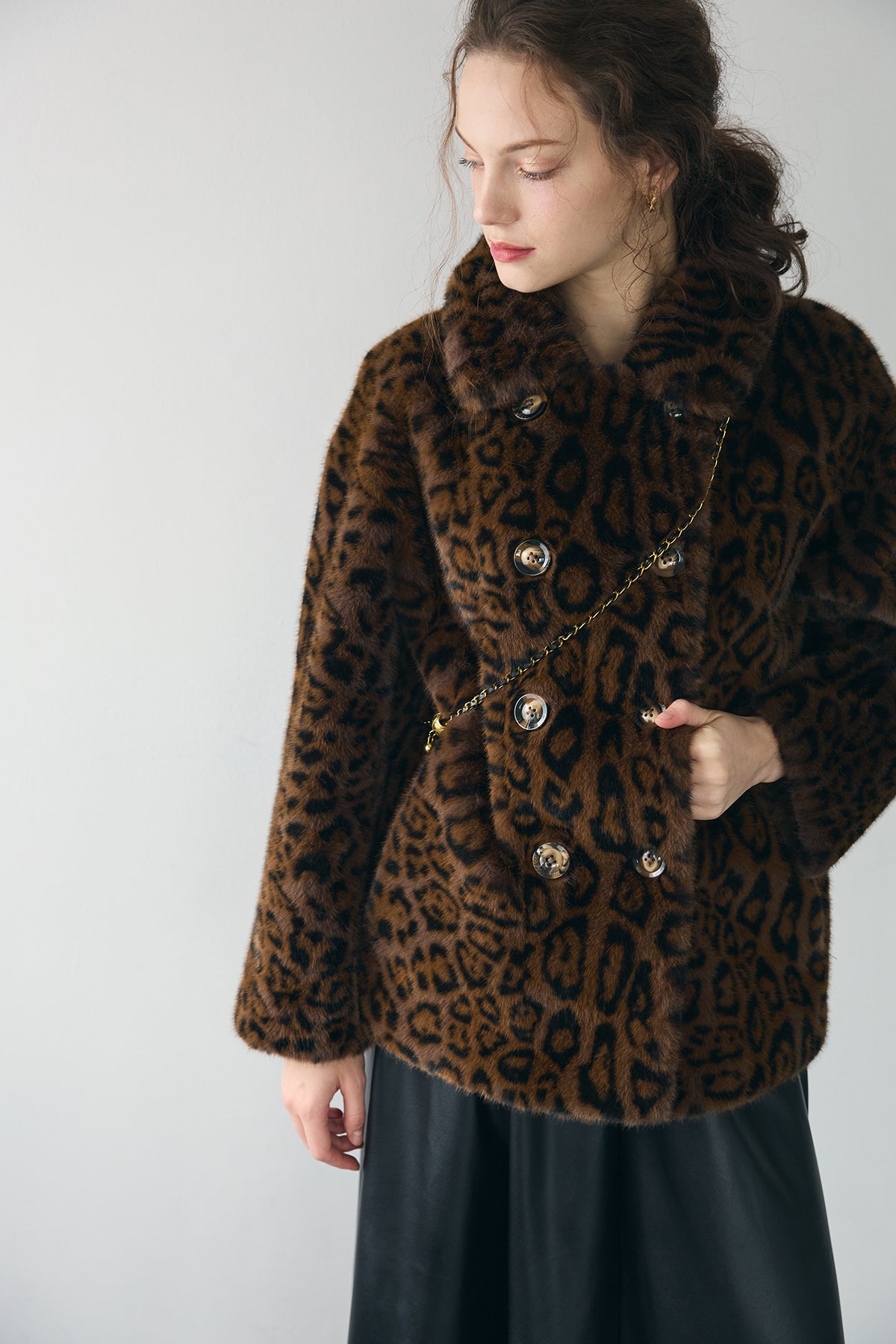 レオパード柄が主役のフェイクファージャケット。立体感のある毛並みとダブル配列のビジューボタンで高級感のある仕上がりに。お尻にかかる丈で厚手ニットやワンピにも重ねやすく、デニムでカジュアルに、レザーやチュールスカートでモードにと幅広く活躍。