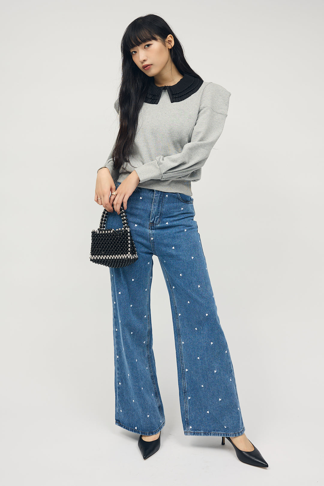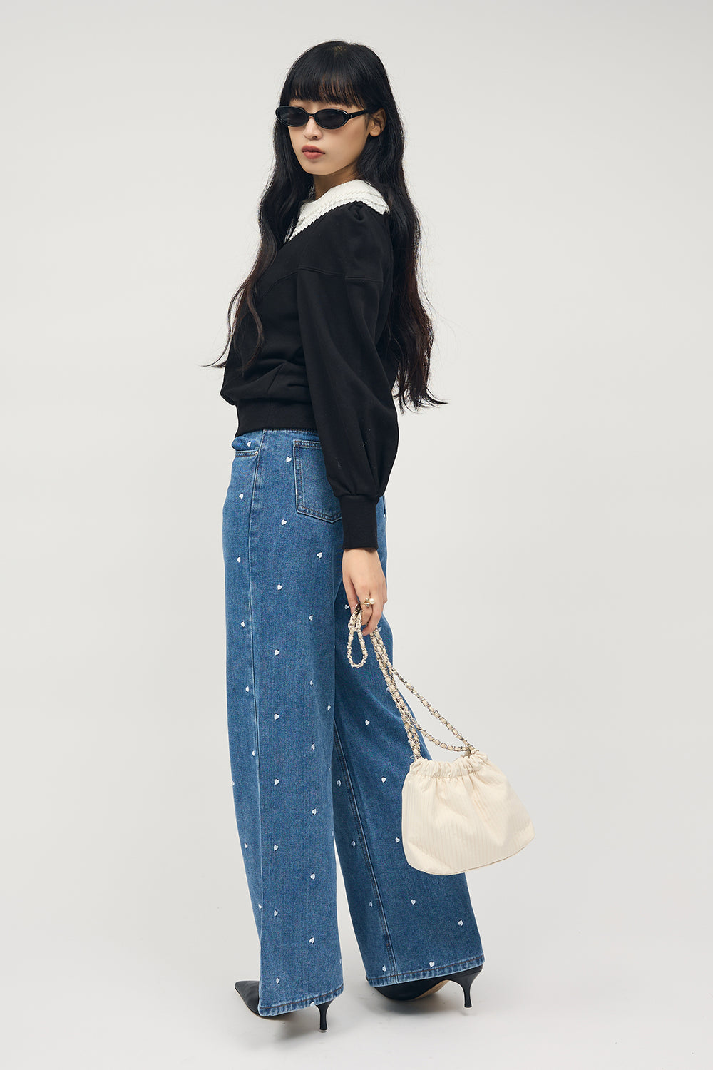 [予約]ハート刺繍ハイウエストデニムパンツ