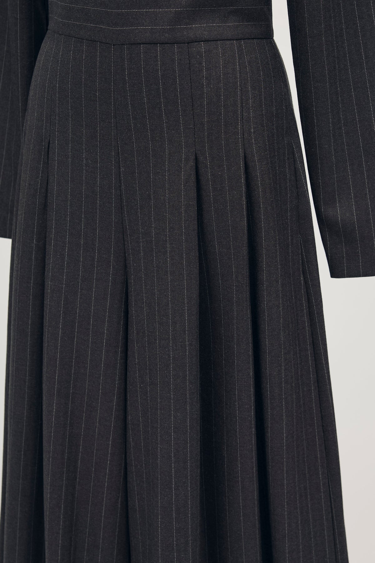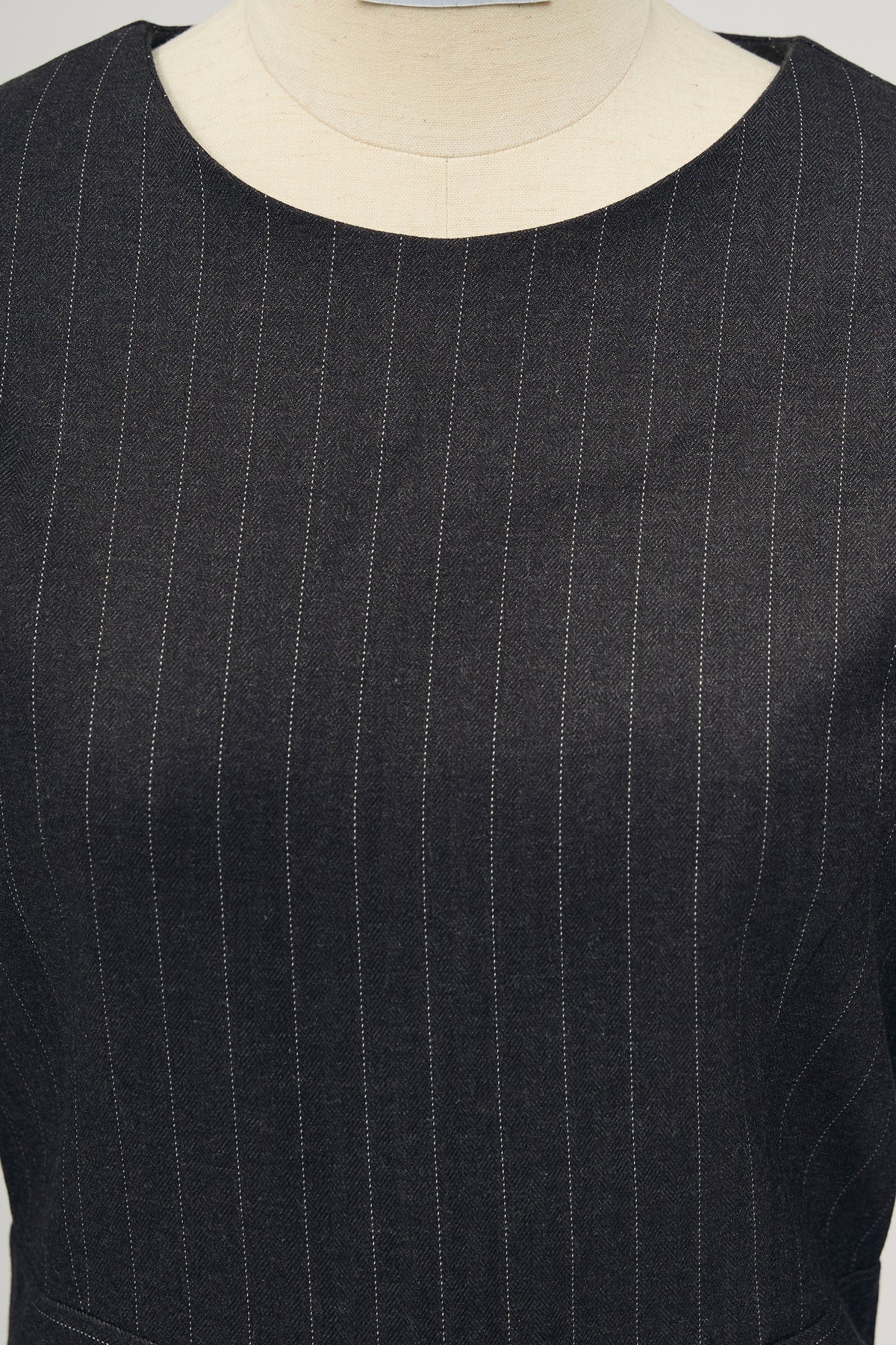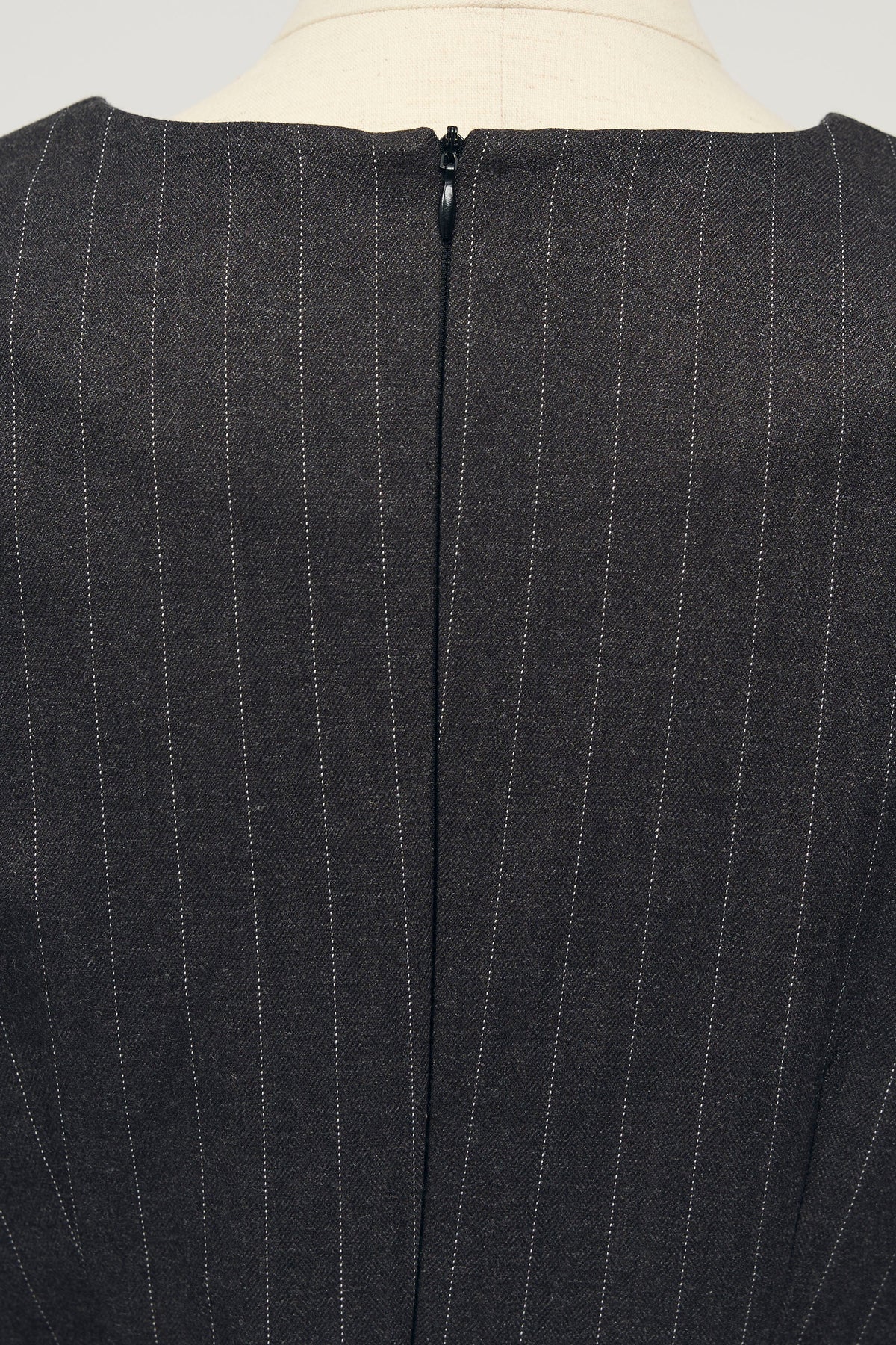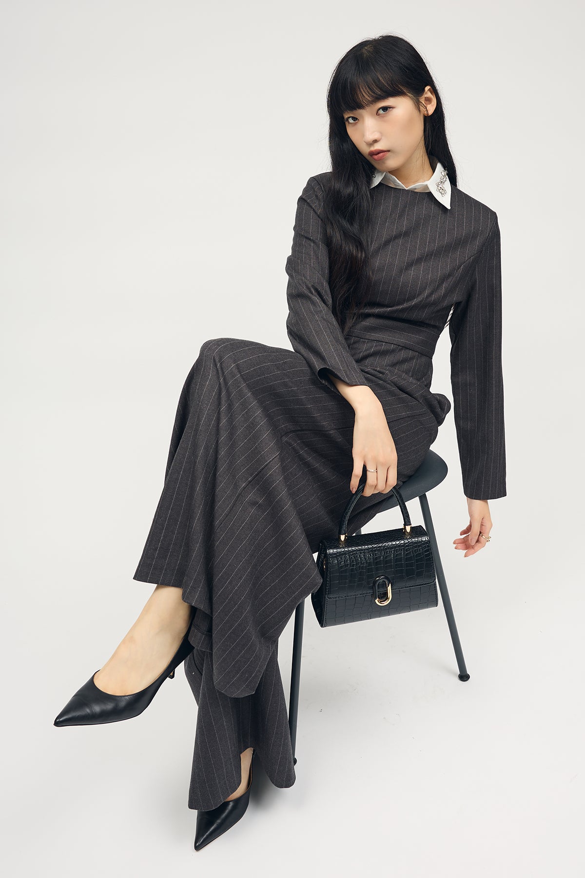 細いストライプが縦のラインを強調し、すっきりと見せてくれるロンパース。ウエスト位置を高めに設定し、脚長効果のあるバランスに仕上げています。ゆとりのあるワイドシルエットながら、上品な印象をキープ。アクセサリーや付け襟を合わせれば、フォーマルからデイリーまで幅広く着まわせる一着です。