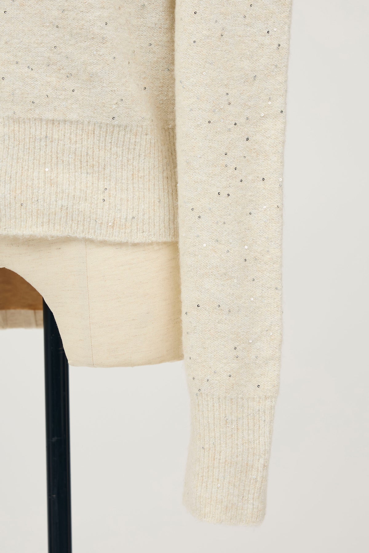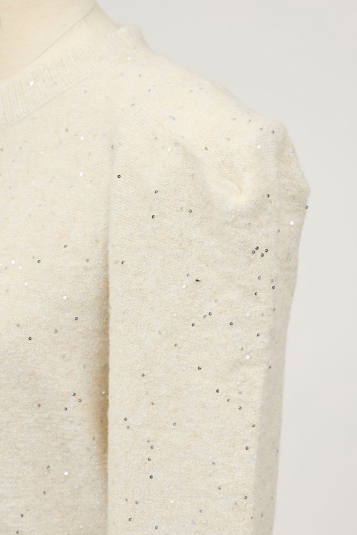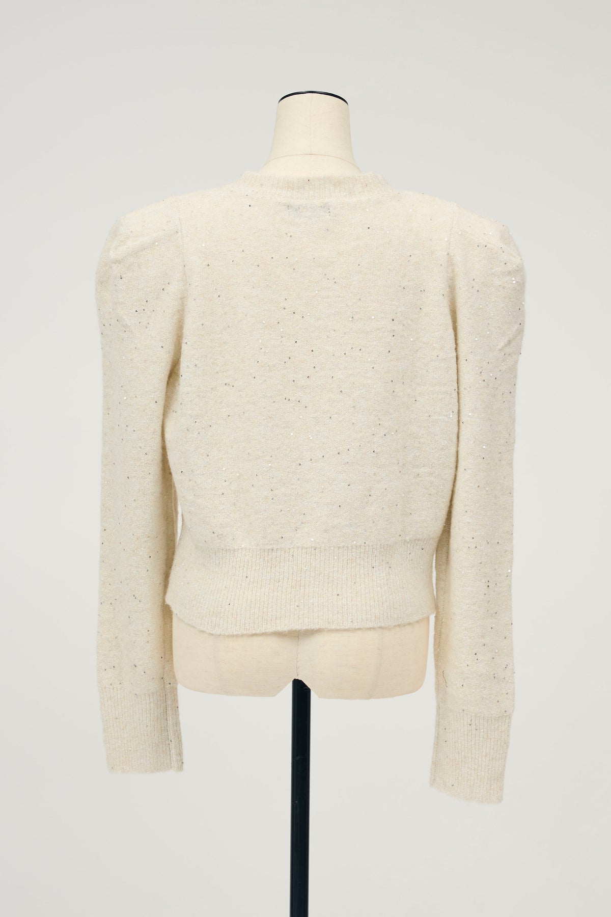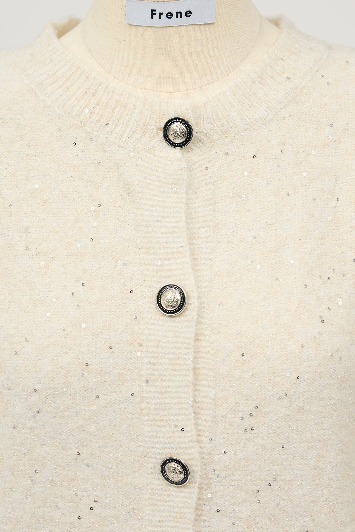肩にさりげないボリュームを持たせたパワーショルダーデザインが印象的なウール混カーディガン。ラメ糸が織り込まれたシャイニーな風合いが、シンプルながらも華やかさをプラスします。コンパクトな丈感でスタイルアップ効果があり、ボタンを留めてトップスとしても、羽織りとしても活躍。フェミニンなスカートからマニッシュなパンツまで、幅広くマッチするアイテムです。