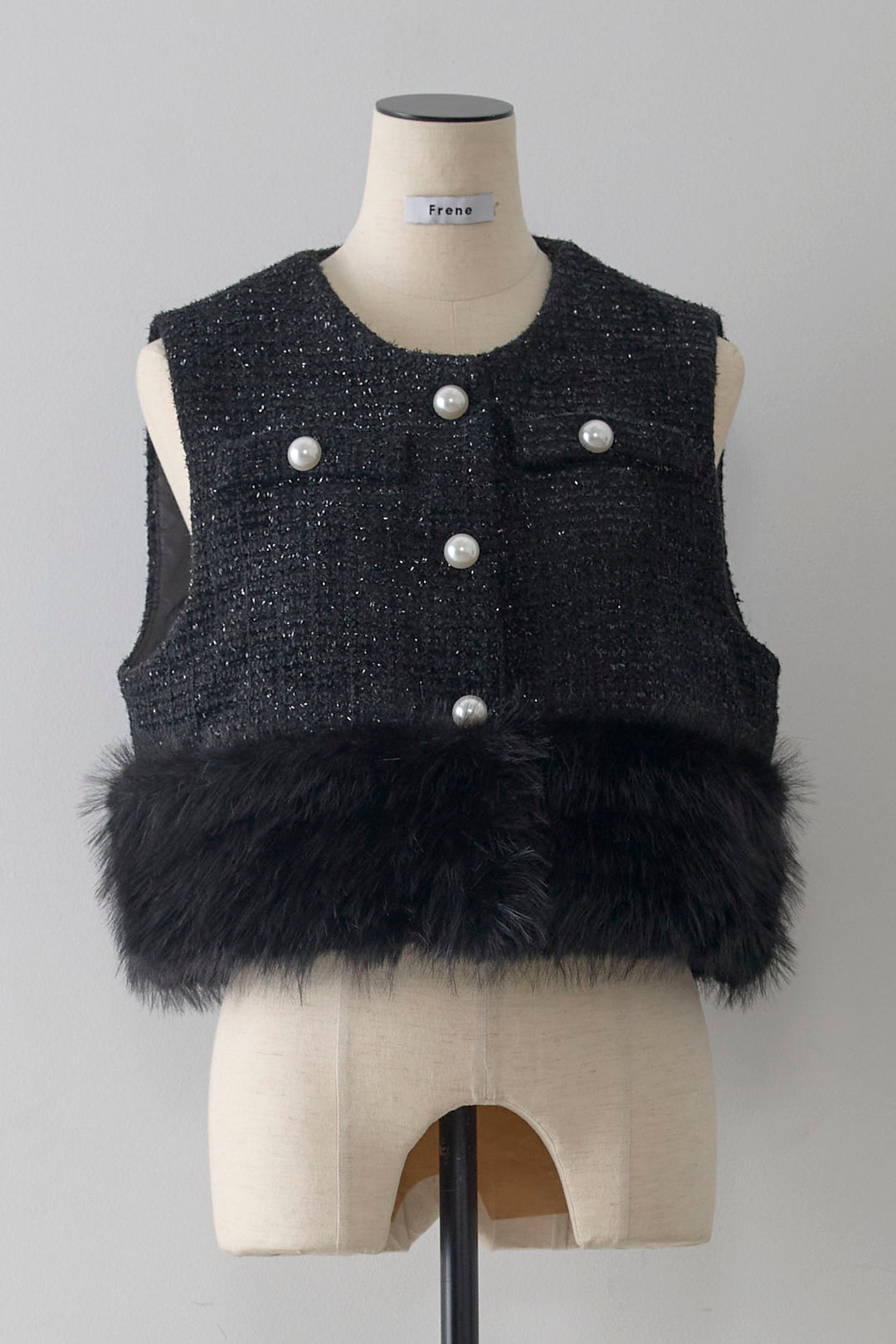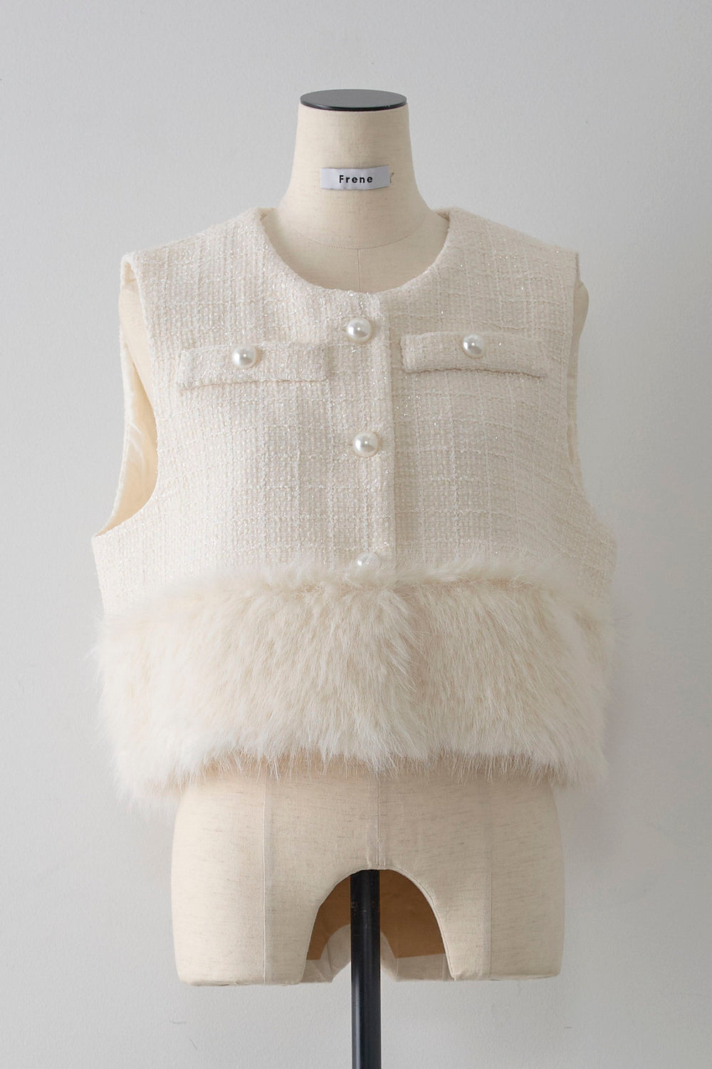 [予約]ファー×ツイードショートベスト