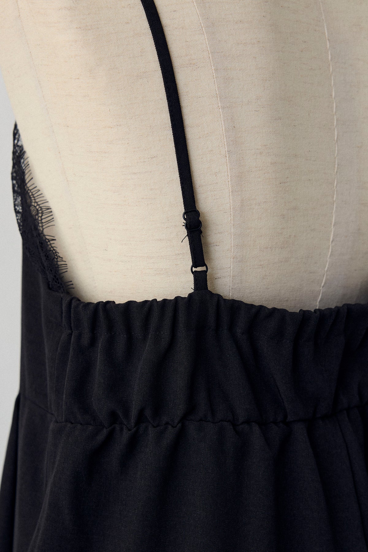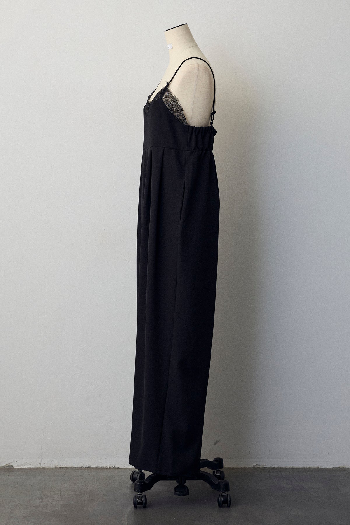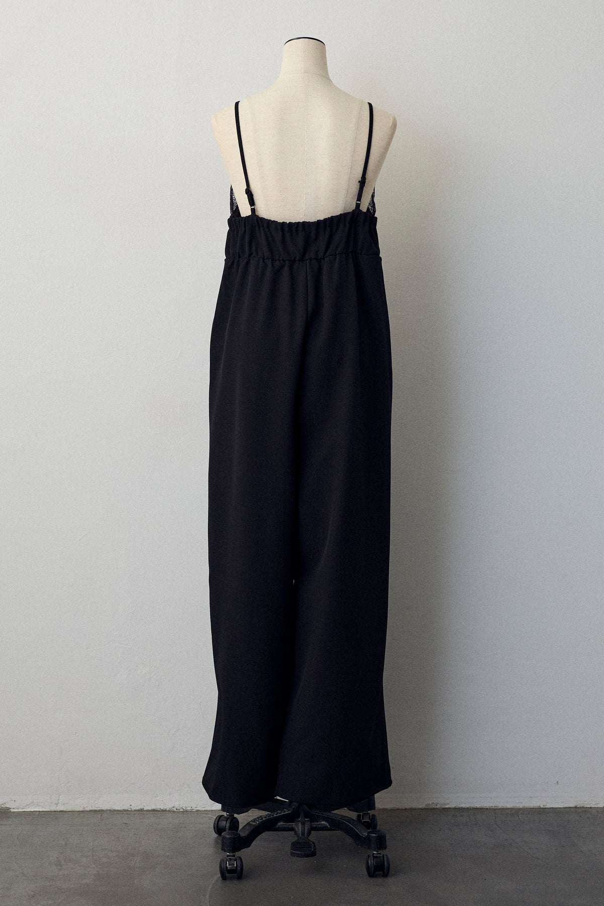 繊細なレースをあしらったキャミソールデザインのオールインワン。 華奢なストラップとゆるやかなワイドシルエットが、女性らしく抜け感のある印象に。 インナー次第でロングシーズン着回せ、カジュアルにもフェミニンにも楽しめる万能アイテムです。
