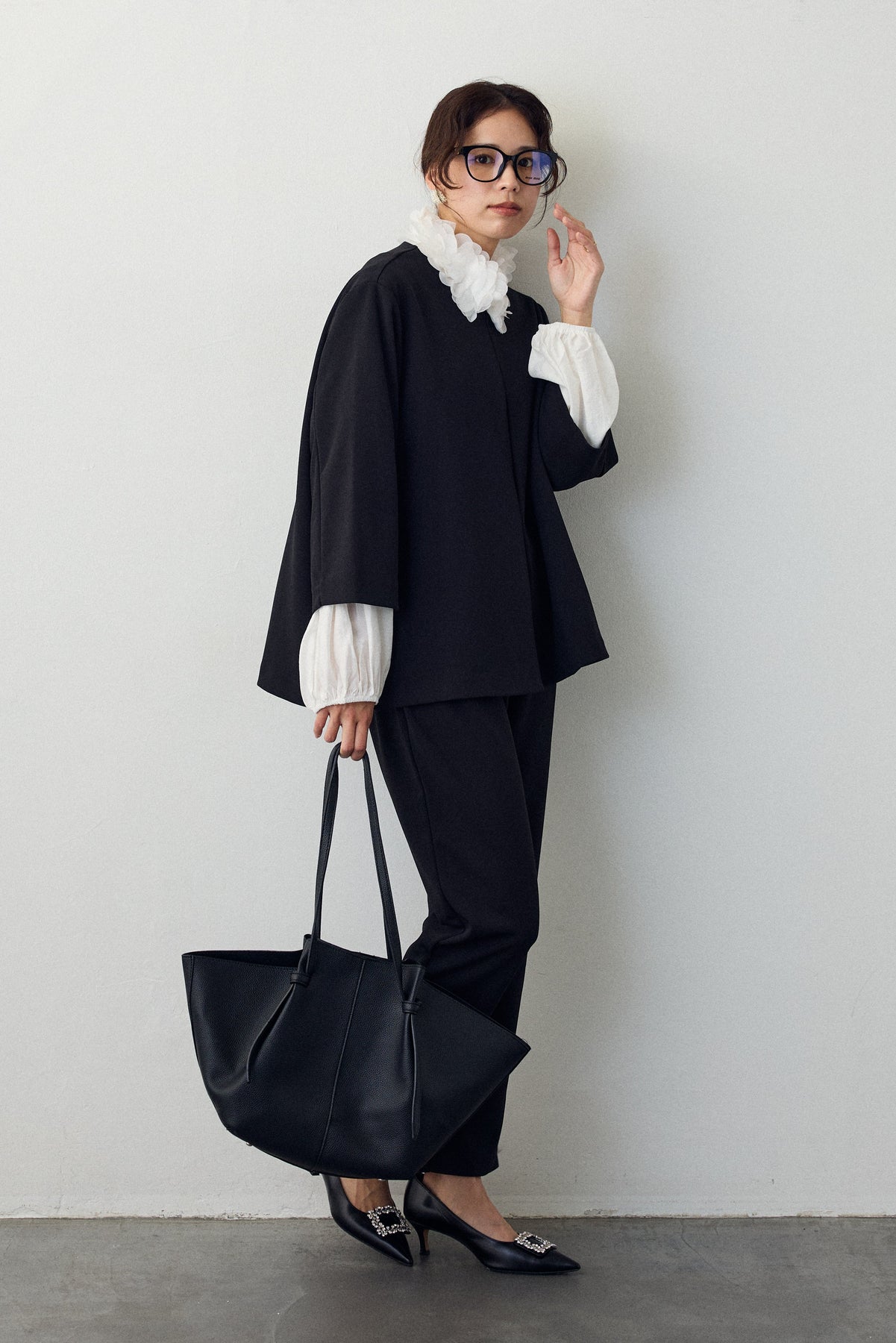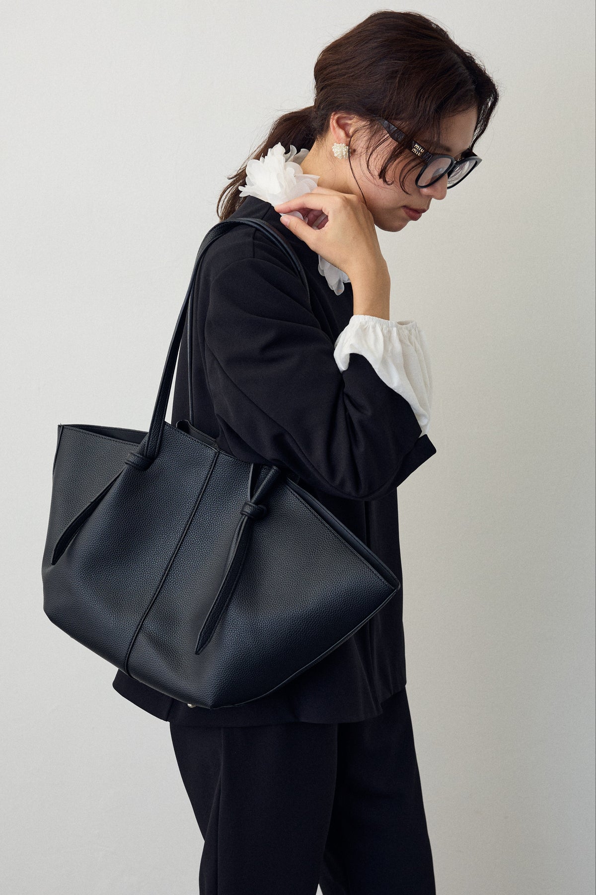 しなやかなフェイクレザーを使用した、シンプルながらも存在感のあるトートバッグ。 サイドに入ったアークライン(曲線)が立体的なフォルムをつくり、持つだけで上品な印象に仕上がります。 A4サイズやノートパソコンもすっきり収まる大容量で、通勤やお出かけにも活躍。 口元はマグネット開閉式で中身の出し入れもスムーズです。 オンオフ問わず使える万能デザインで、デイリーに寄り添う大人のトートバッグです。