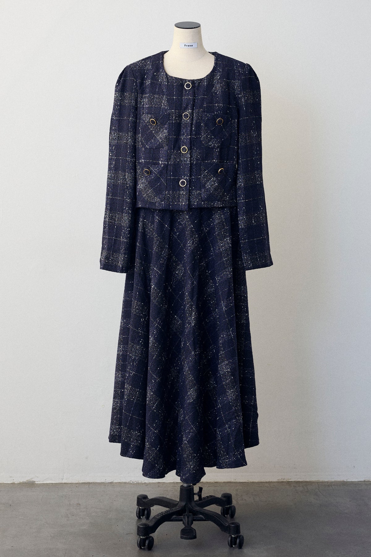 [予約]ツイードチェックセミフレアスカートセットアップ