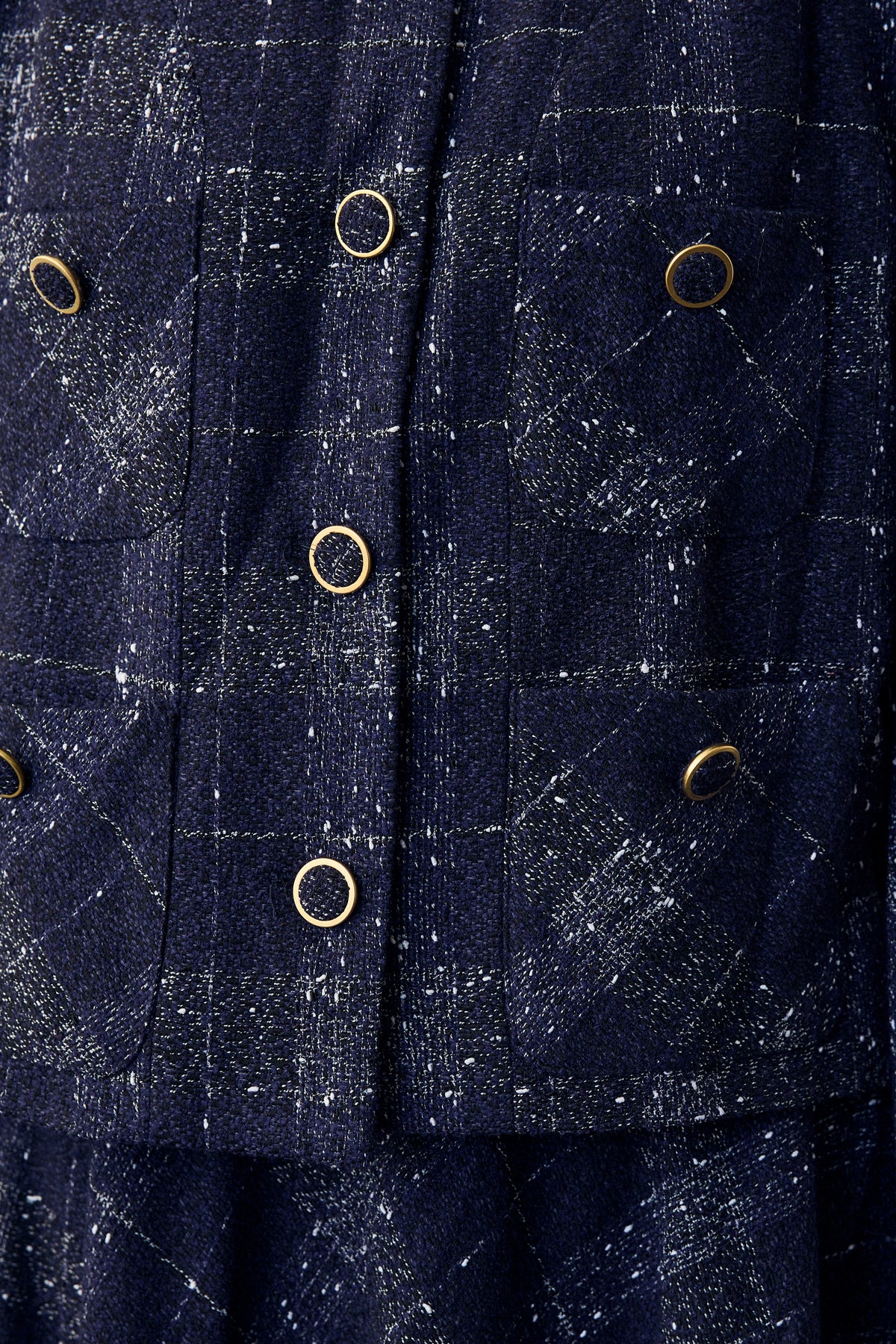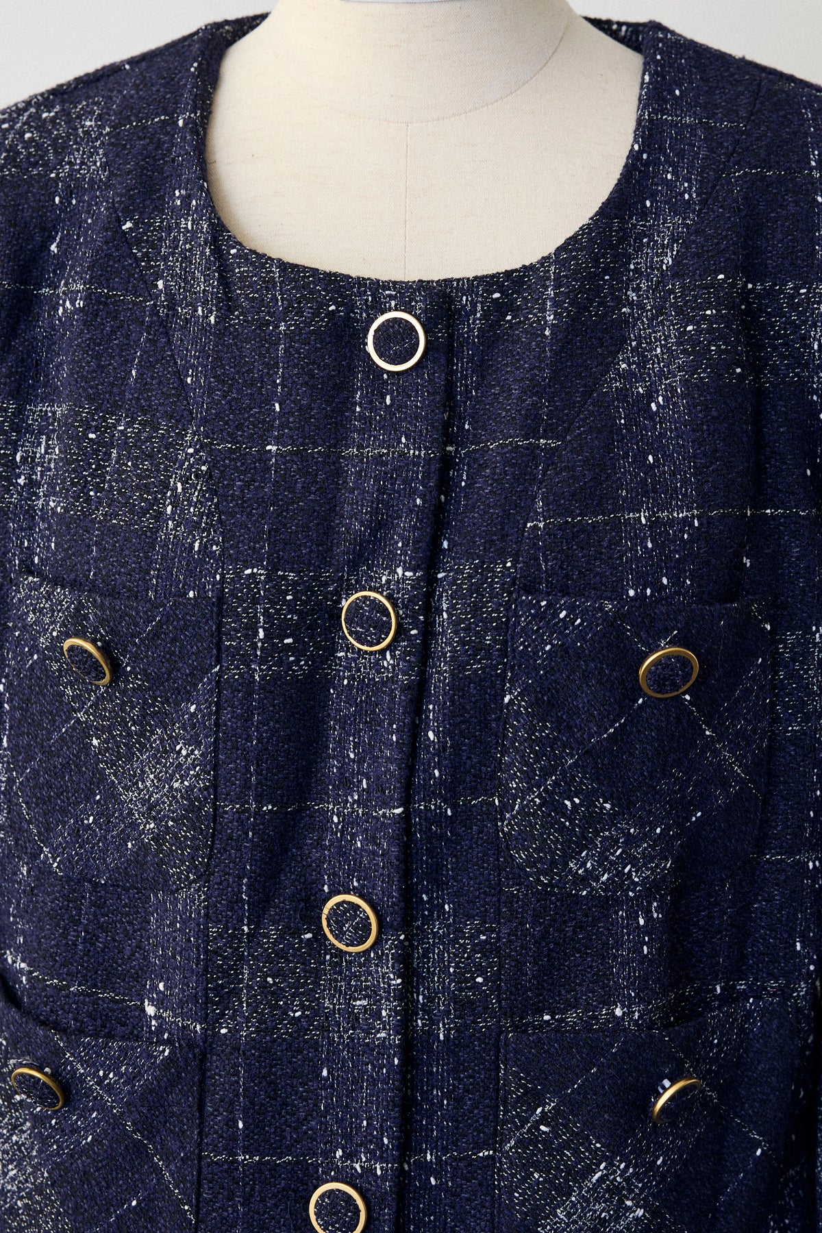 繊細なラメ糸を織り込んだチェック柄ツイードが、ハレの日を華やかに彩るセットアップ。トレンドのショート丈ジャケットと、広がりすぎない上品なセミフレアスカートのバランスが、大人の洗練されたシルエットを作ります。金ボタンがクラシカルなアクセントに。セットアップとしての着用はもちろん、それぞれ単品でも着回し力が高く、入学式や卒業式、七五三などのフォーマルシーンから、ちょっとしたお出かけまで幅広く活躍します。