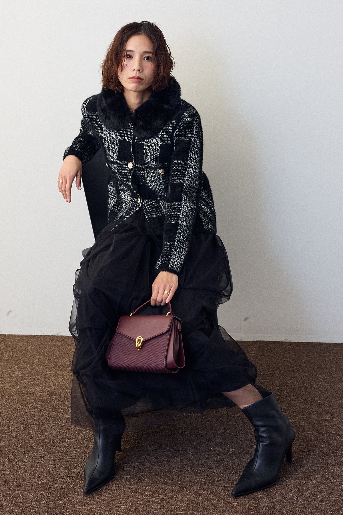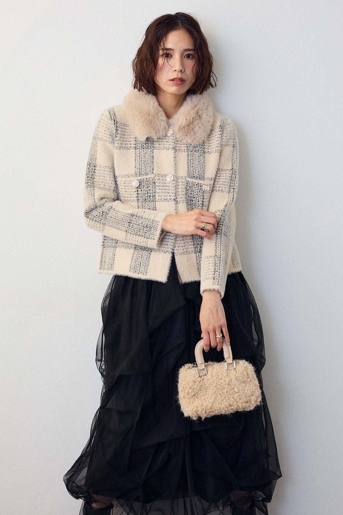 [予約]チェック柄ファー襟コーディガンを含んだコーデセット商品を探す↓
