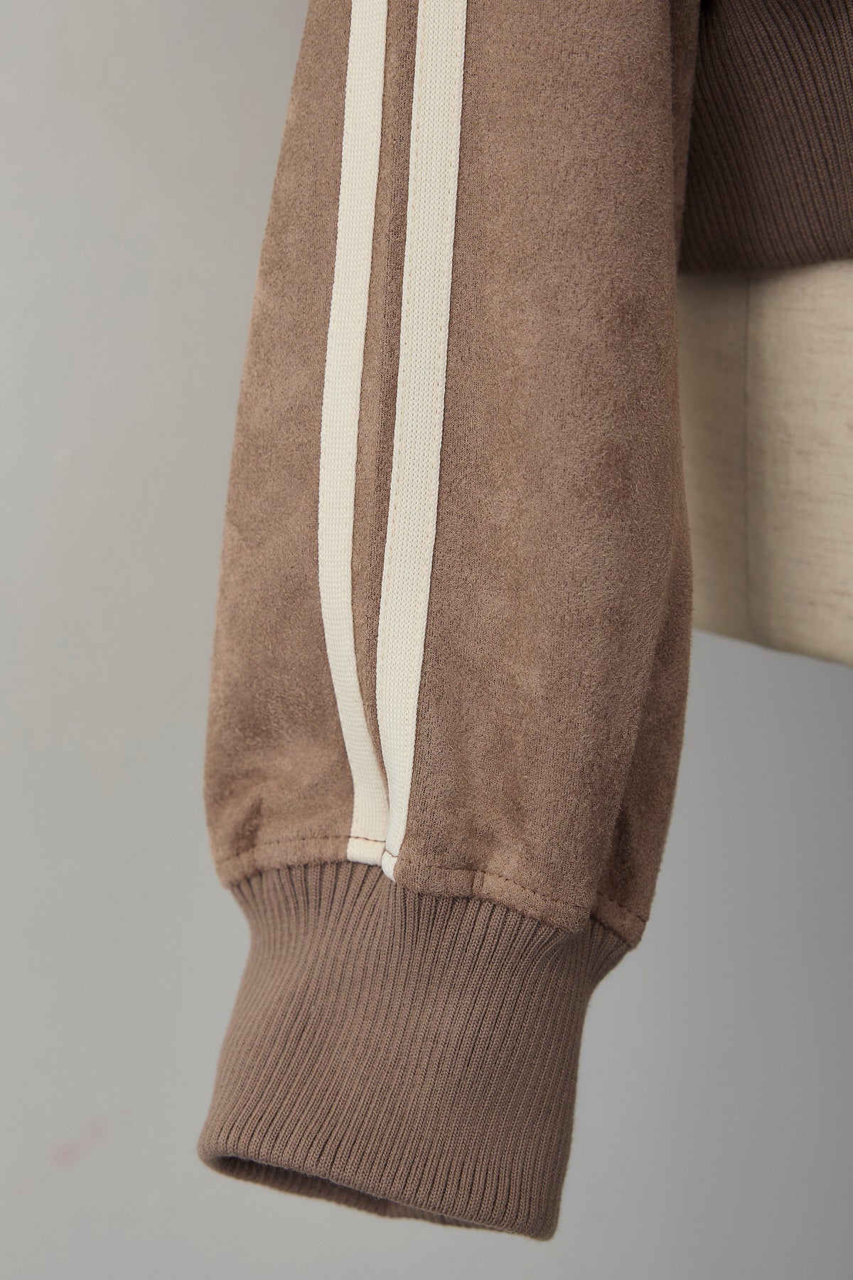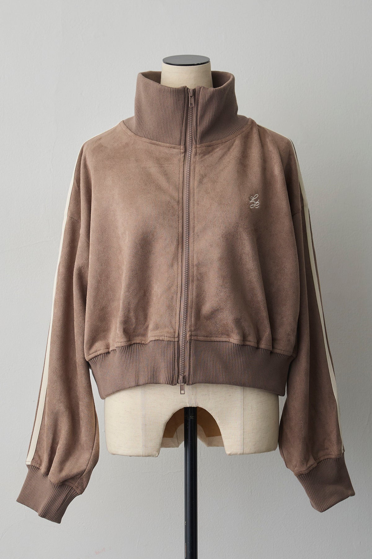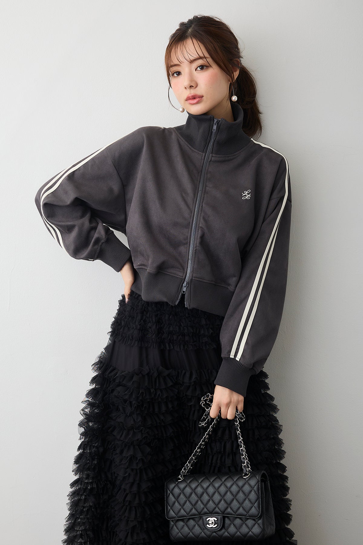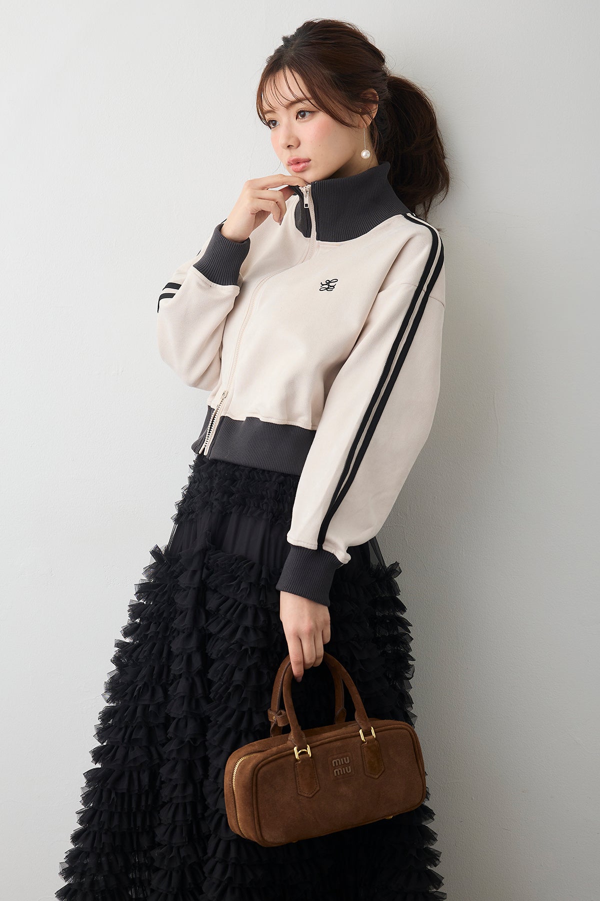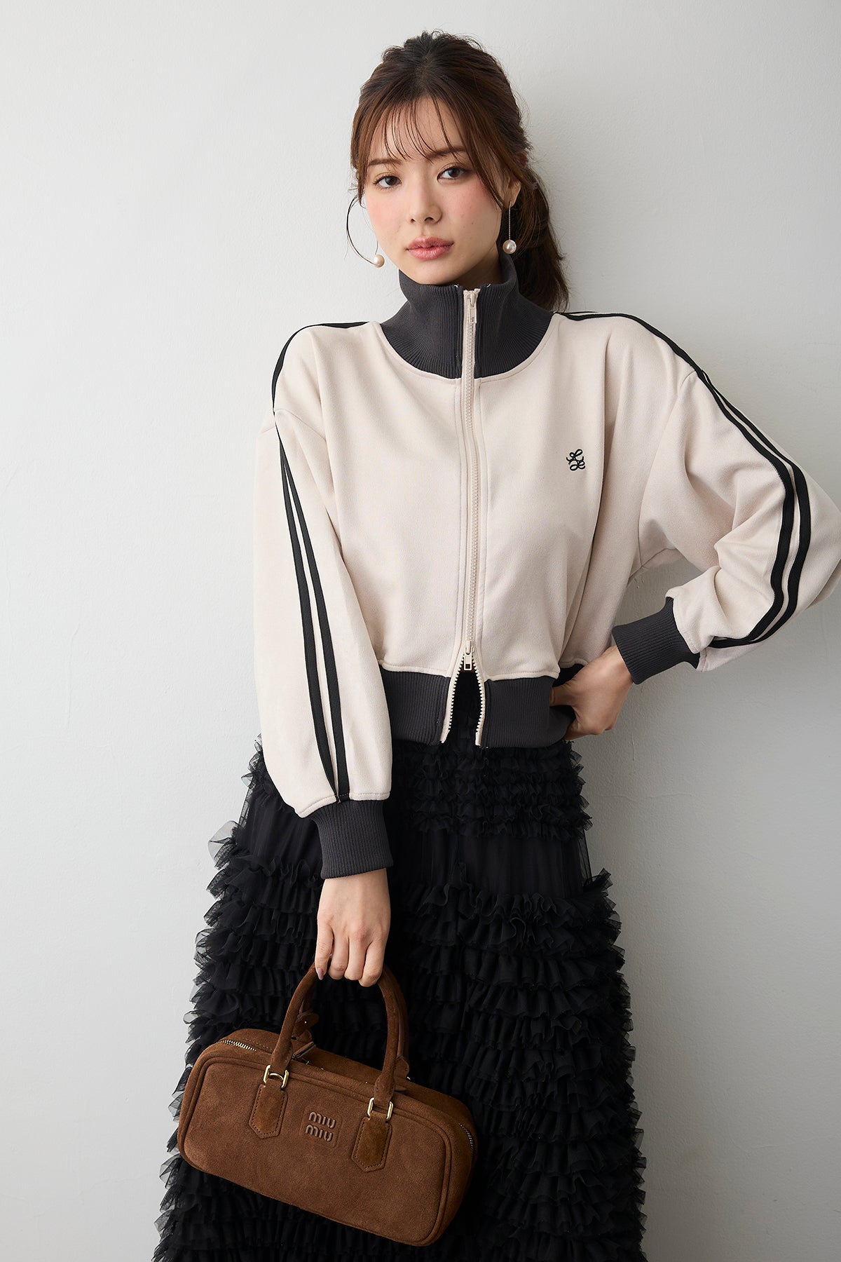 滑らかなタッチのスエードポンチ素材を使用した、大人のためのトラックジャケット。 スポーティなサイドラインデザインながら、マットで上品な質感とコンパクトな着丈が、カジュアルになりすぎず洗練された印象を与えます。 上下どちらからも開閉できるダブルジップ仕様で、裾を開けて抜け感を出したりと、シルエットのアレンジも自由自在。 ボリュームのあるチュールスカートやワンピースと合わせた、甘さとスポーティさをミックスさせた大人の最旬スタイルが完成する一着です。