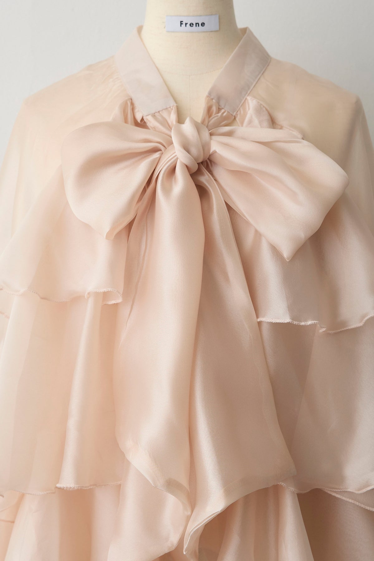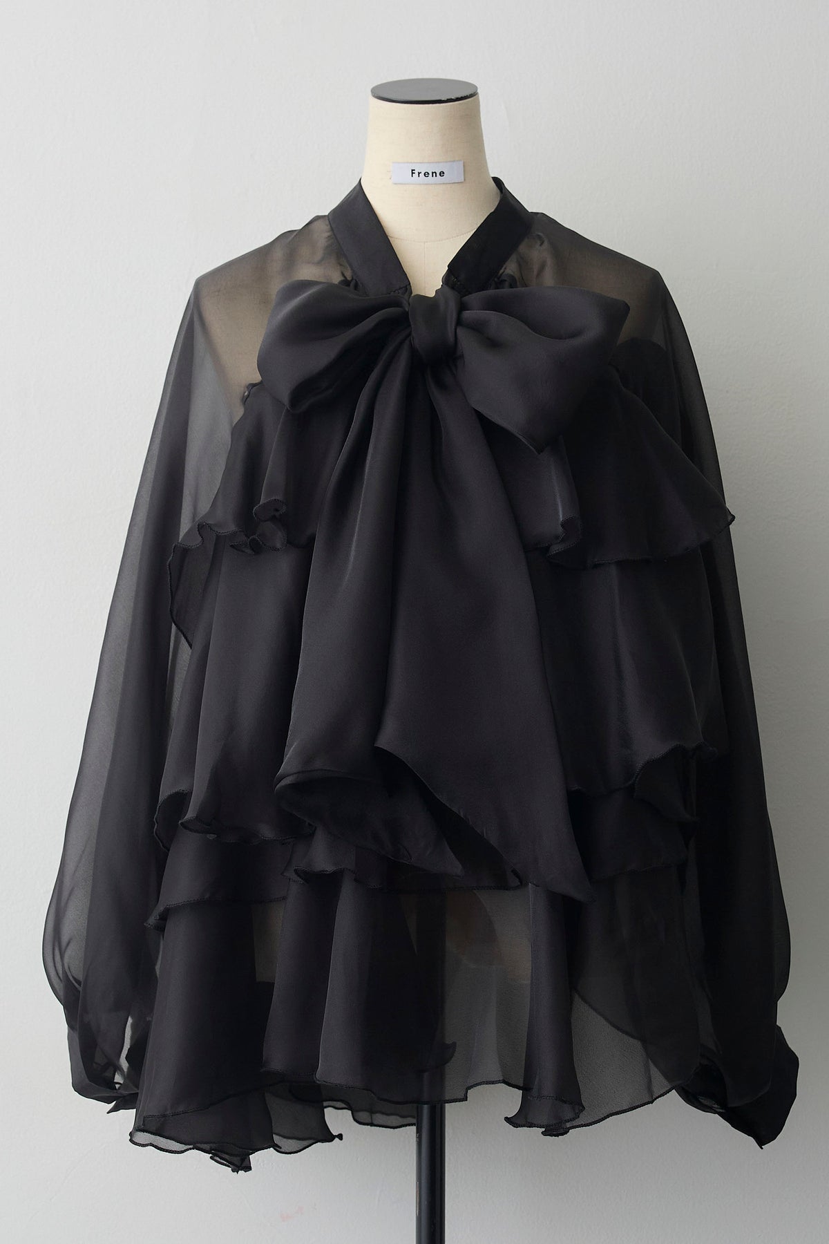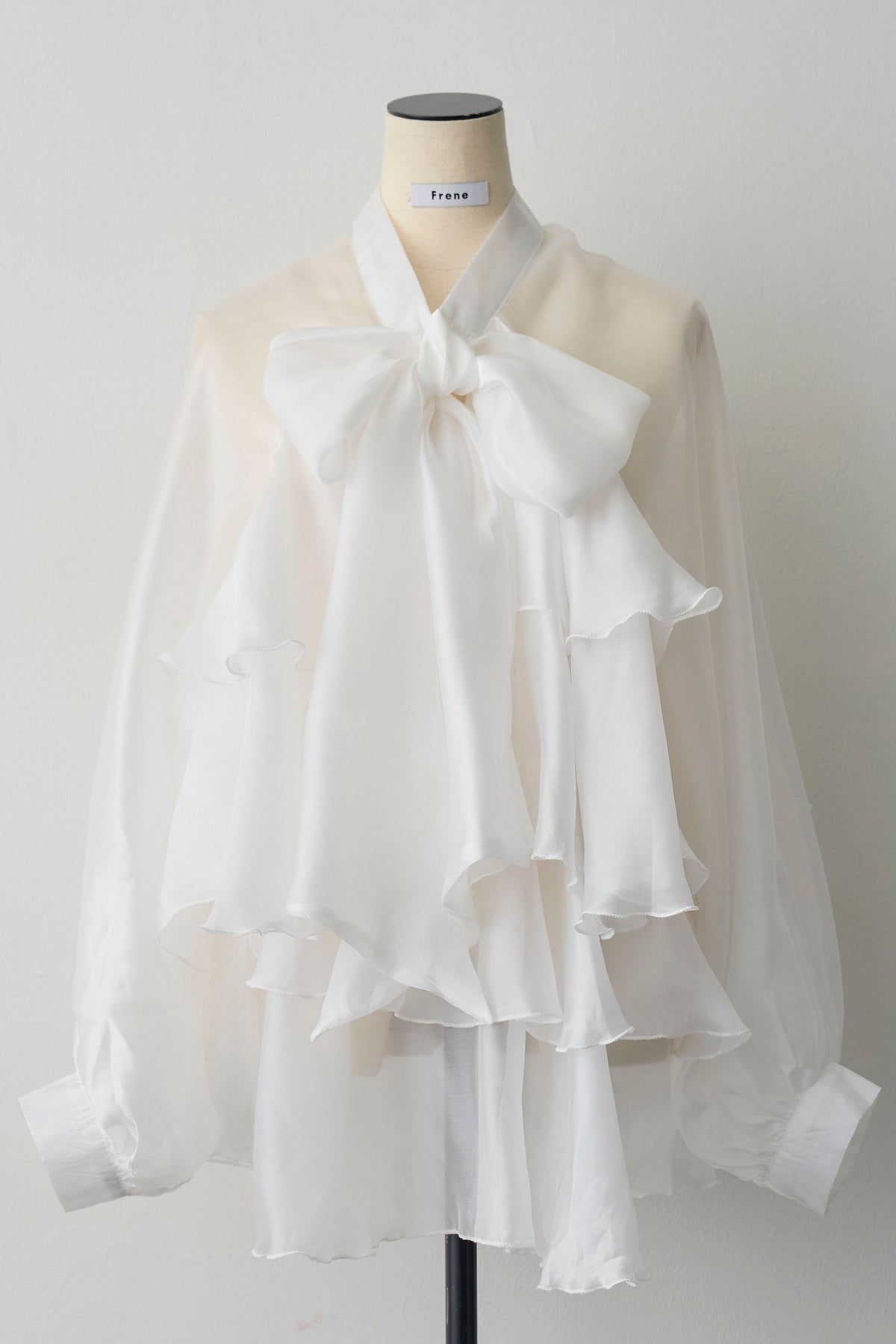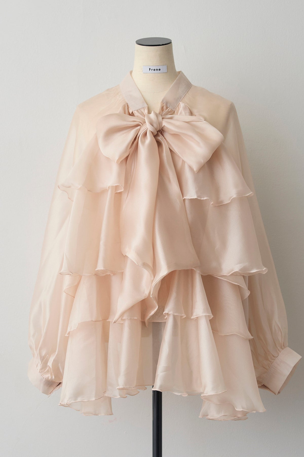フロントに施された大きなリボンと、裾に向かって広がるティアードフリルがドラマティックなチュニックブラウス。 エアリーな透け感のある素材を使用しているため、ボリュームがありながらも重たく見えず、洗練された軽やかな印象を与えます。 ヒップラインまで隠れるチュニック丈は、細身のパンツやデニムと合わせるだけでバランス良く決まり、自然な体型カバーを実現。 インナーにタートルネックを合わせればシーズンレスで活躍し、いつものコーディネートを一気に華やかなフェミニンスタイルへと格上げしてくれる一着です。