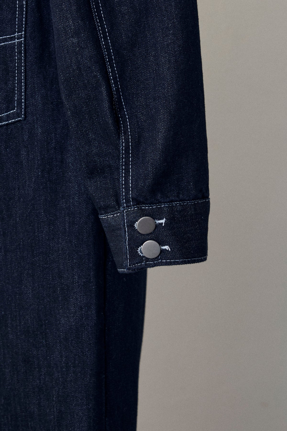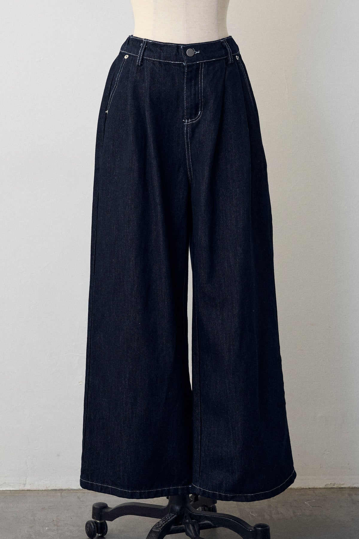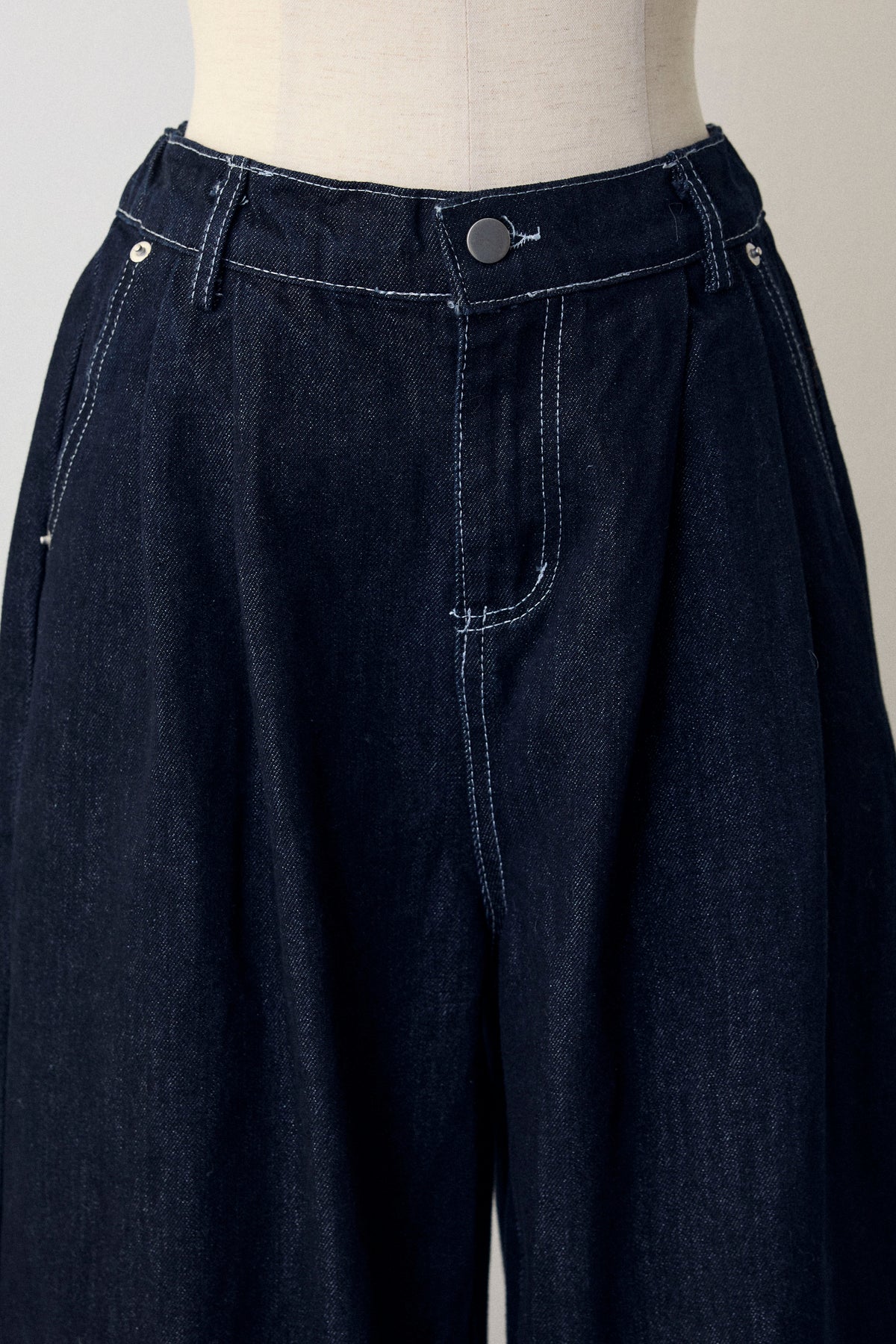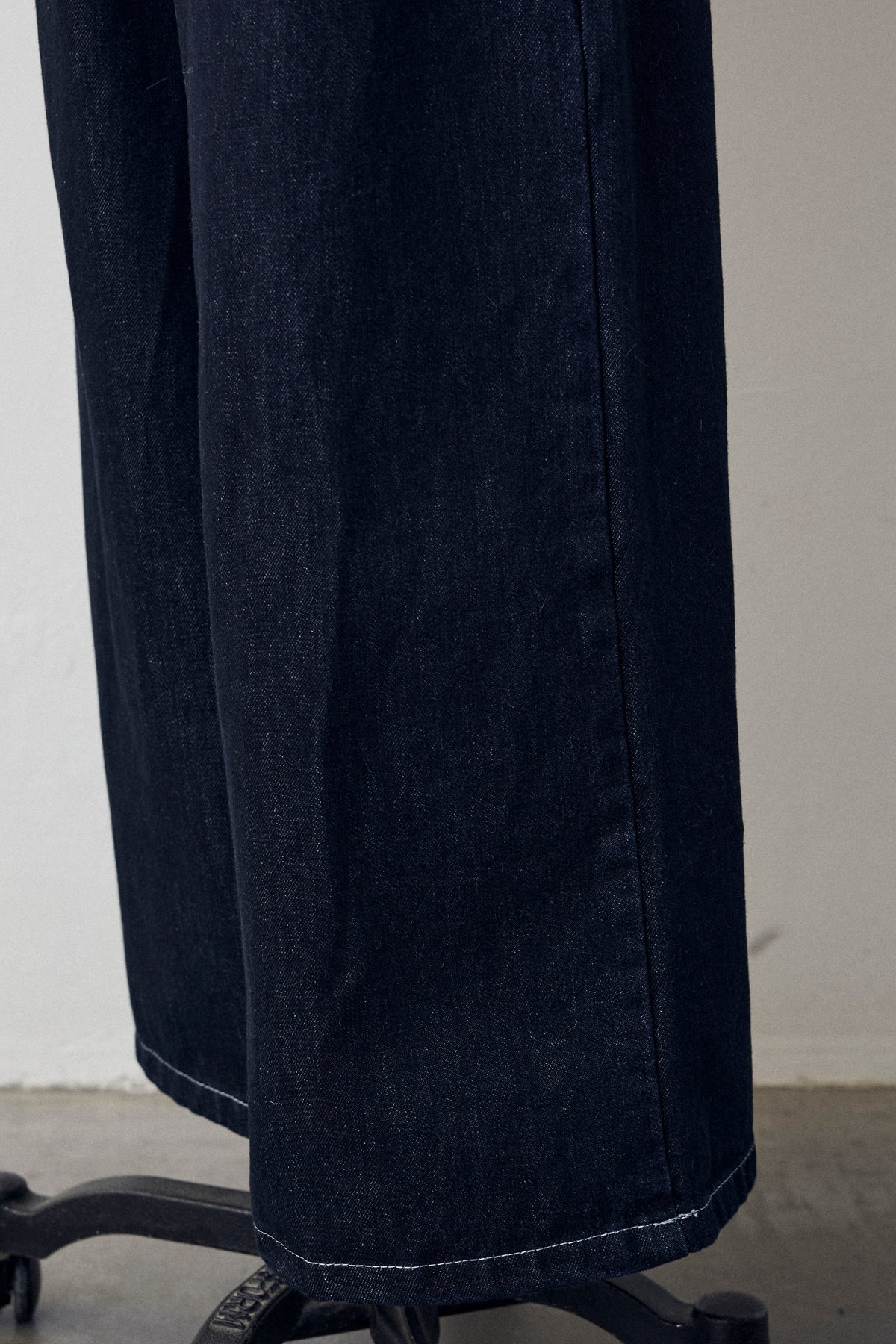 クラシックなデニムにモードなエッセンスを加えたクロップドデニムセットアップ。ショート丈のジャケットは、ステッチがアクセントとなり、レースブラウスのようなフェミニンなインナーとも好相性。ボトムはゆったりとしたワイドシルエットで動きやすく、ウエストのバックゴムで心地よくフィットします。セットで着れば統一感のあるスタイルに、単体使いでも幅広いコーディネートに活躍し、カジュアルながら洗練された印象を楽しめる一着です。