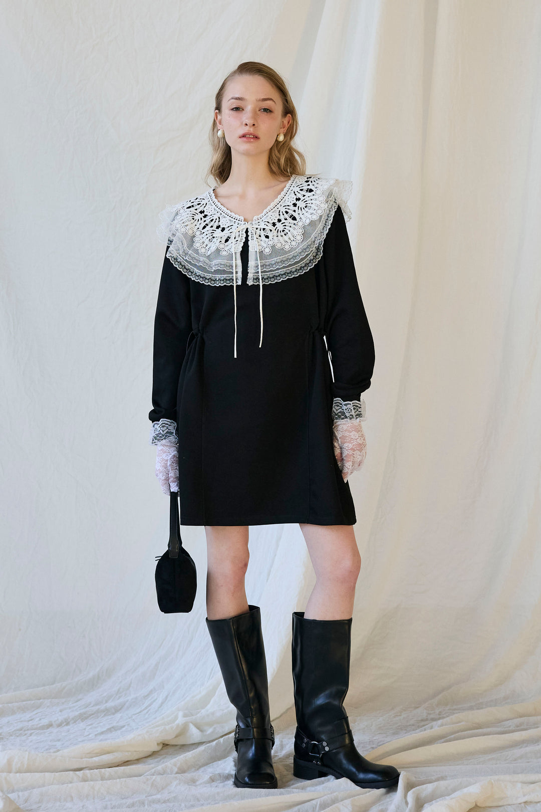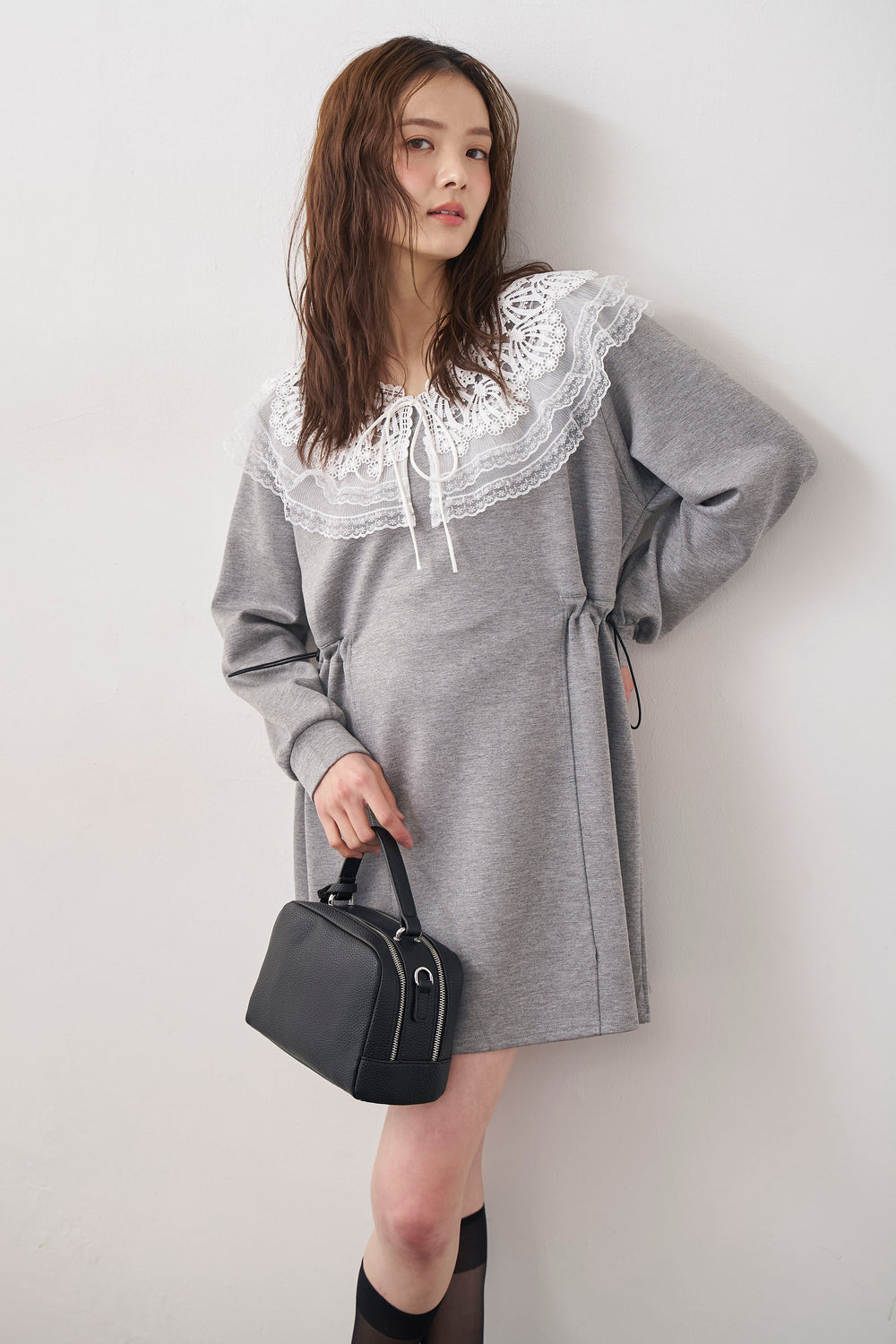 [予約]ダブルレースカラーウエストシェイプミニワンピ