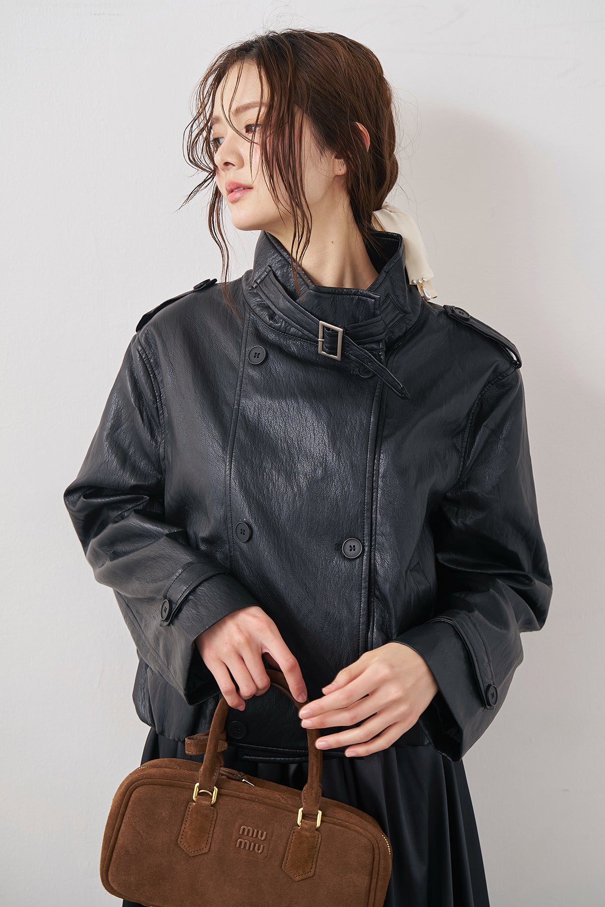 ◆ レザーライククロップドジャケット