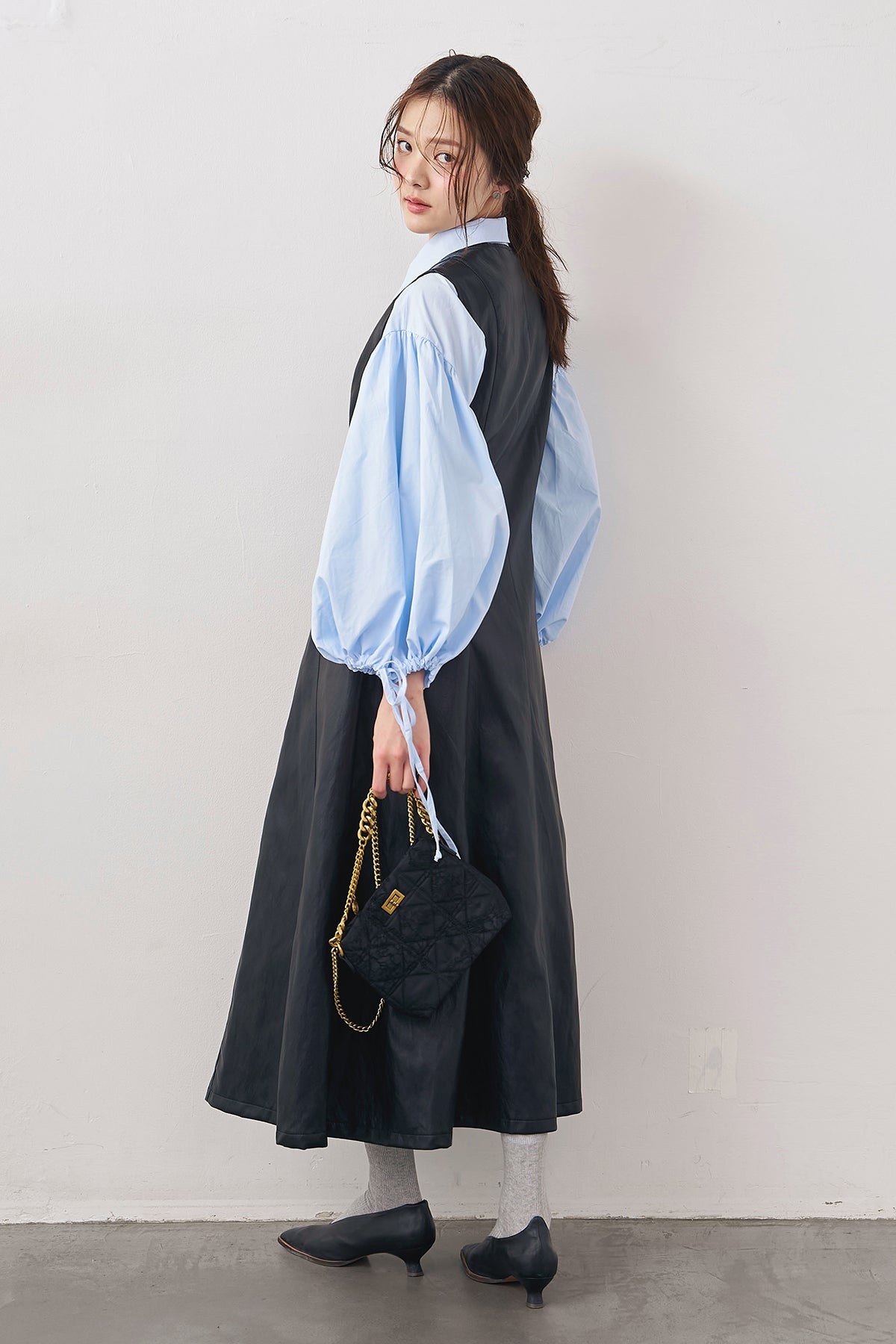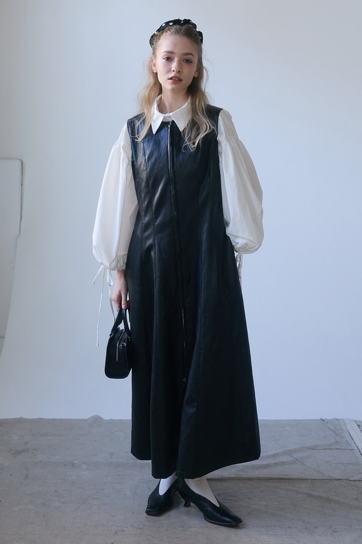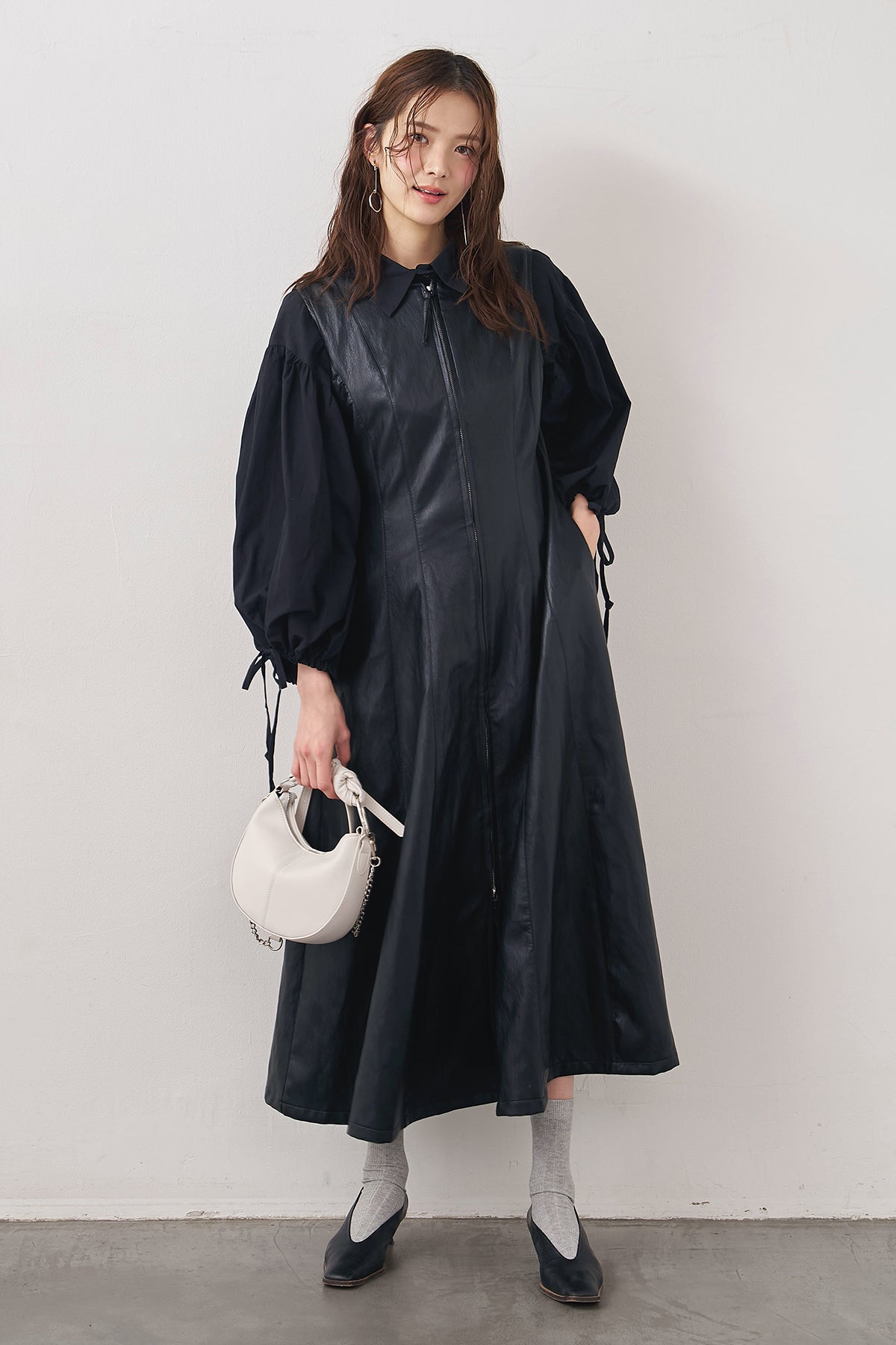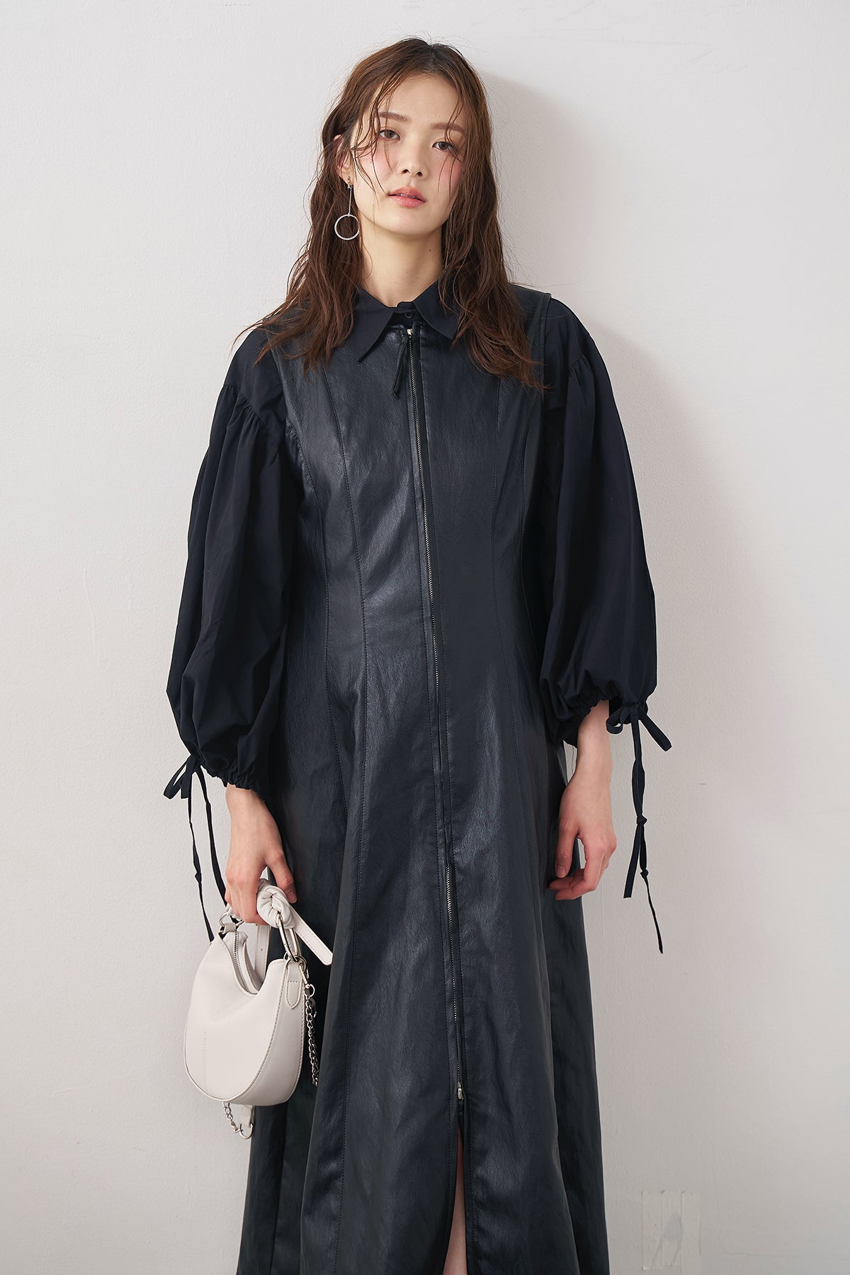 [予約/SET]ワイドスリーブドロストクロップドシャツ+フロントZIPレザーライクジャンスカ(2set)