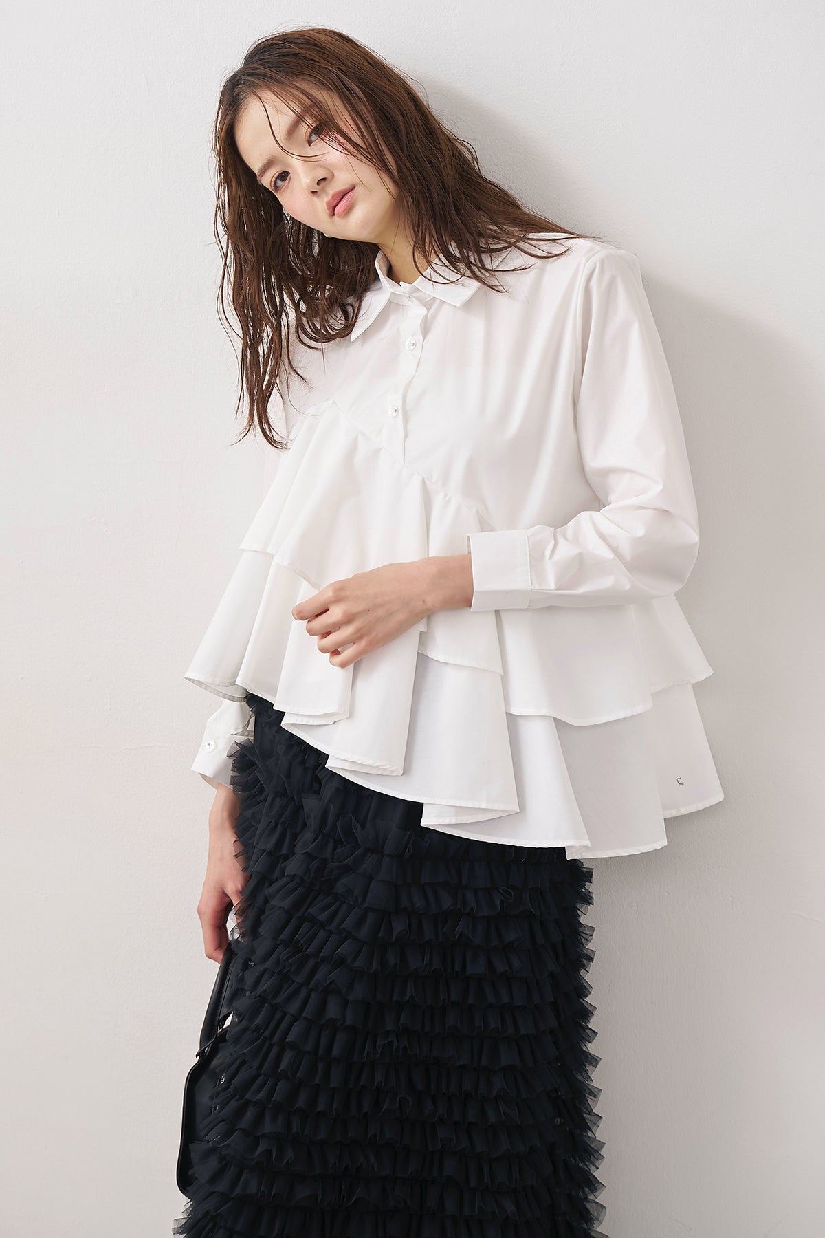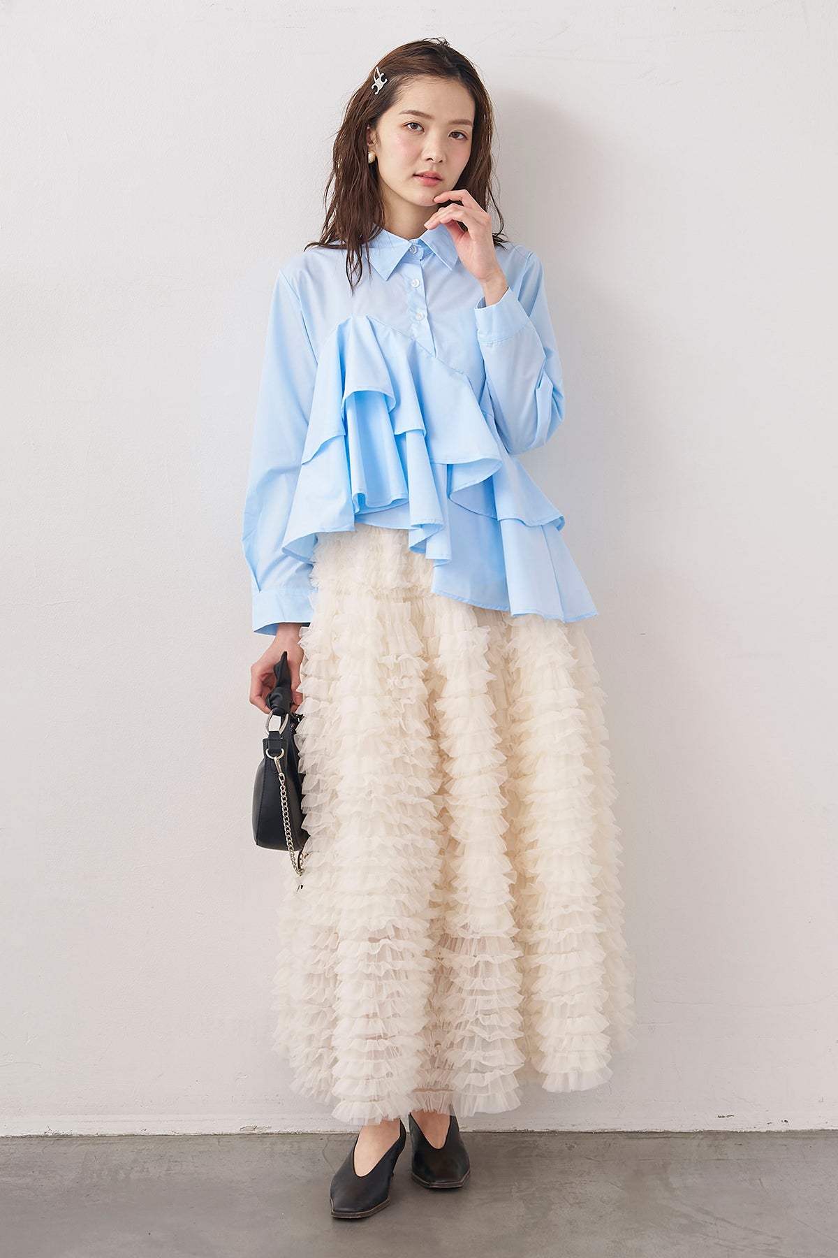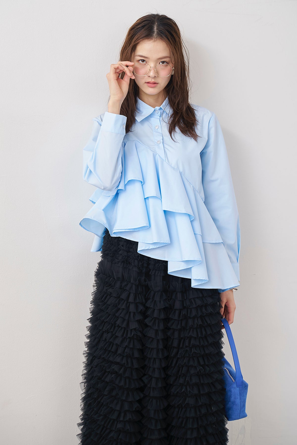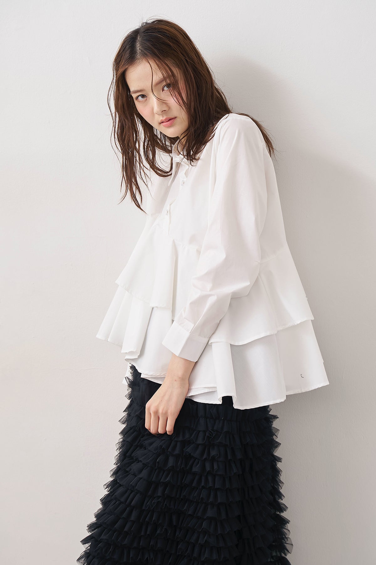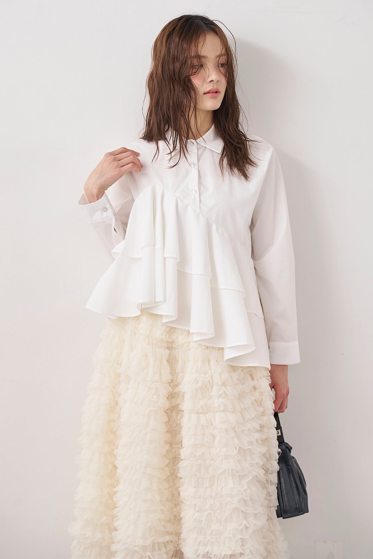 [予約/SET]アシメフリルティアードシャツ+ホイップチュールティアードスカート(2set)