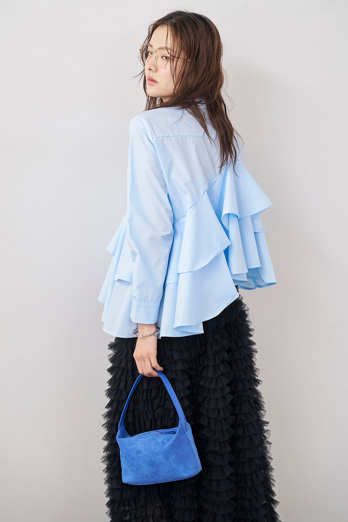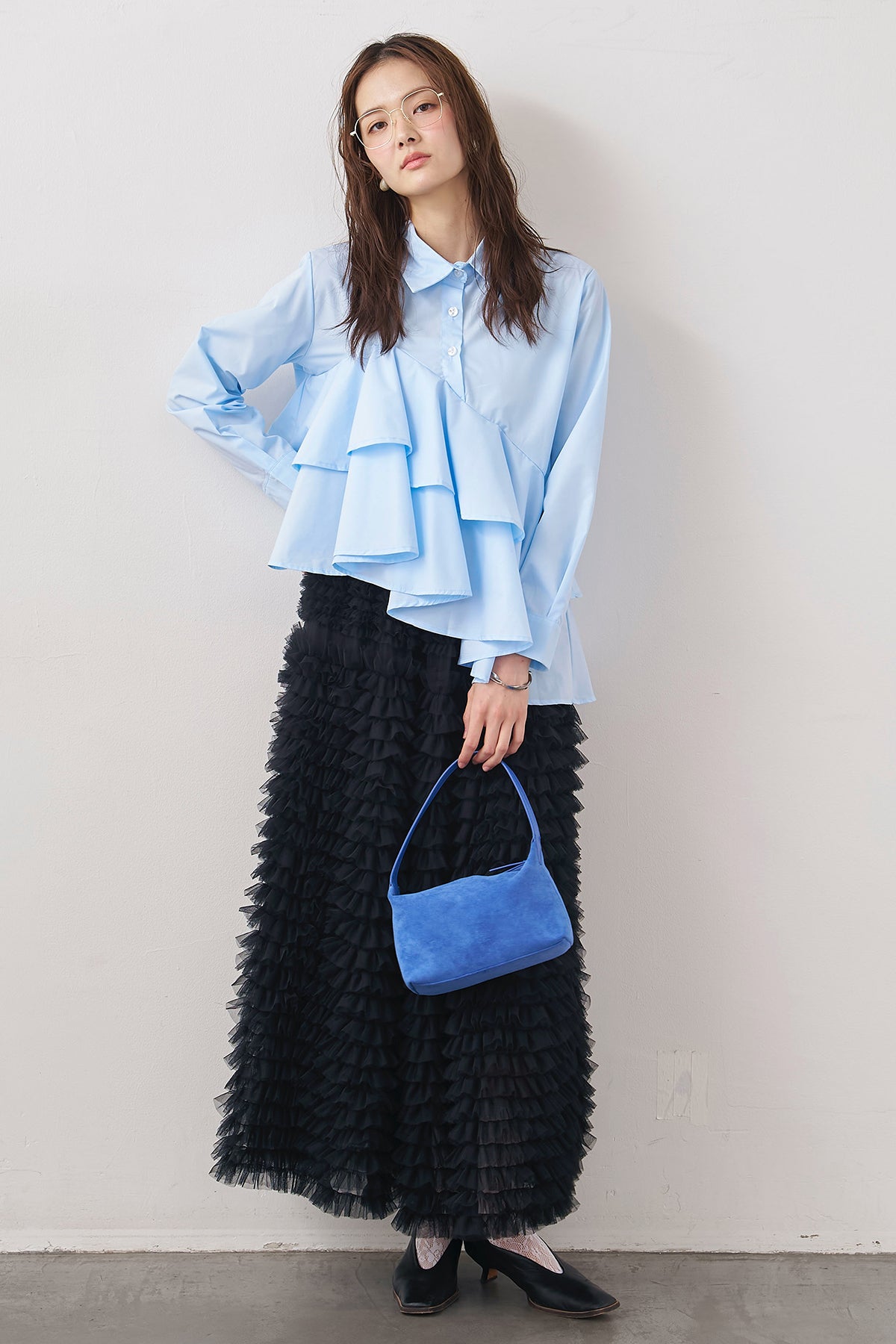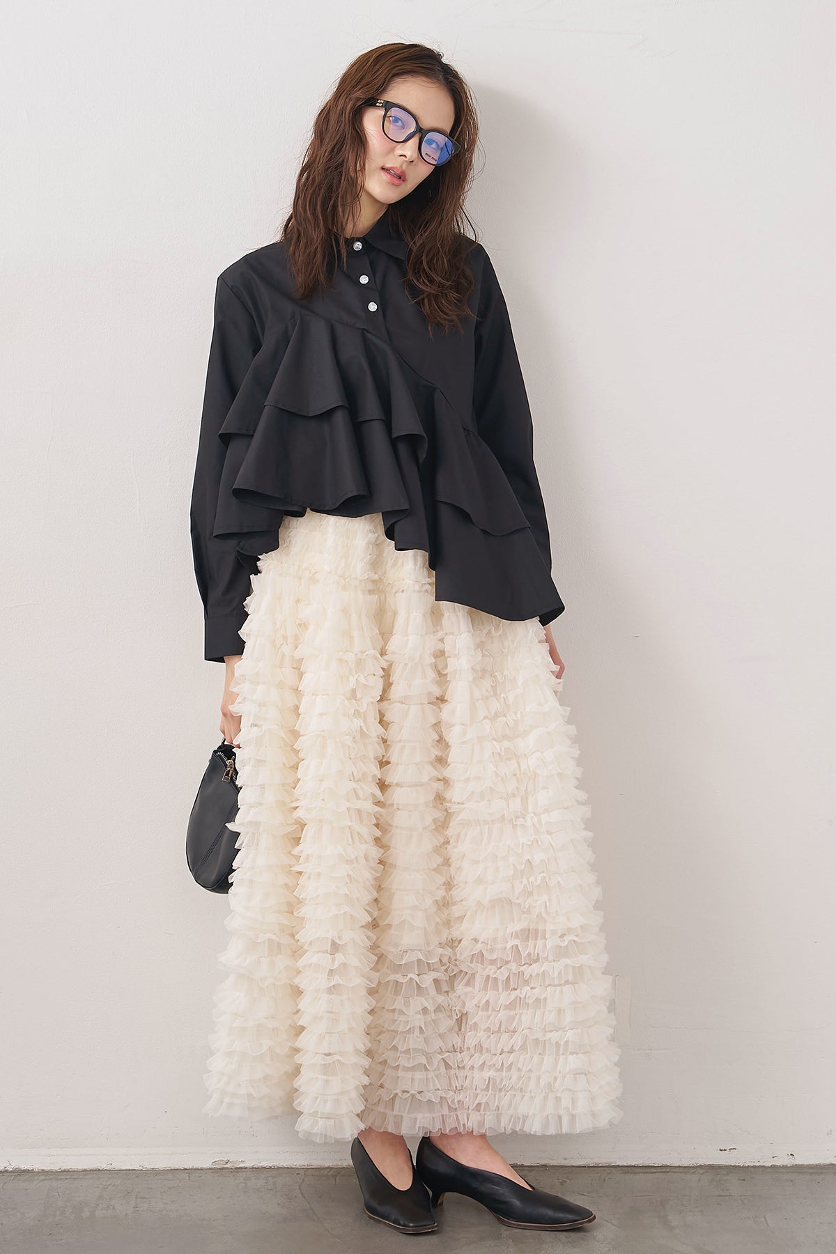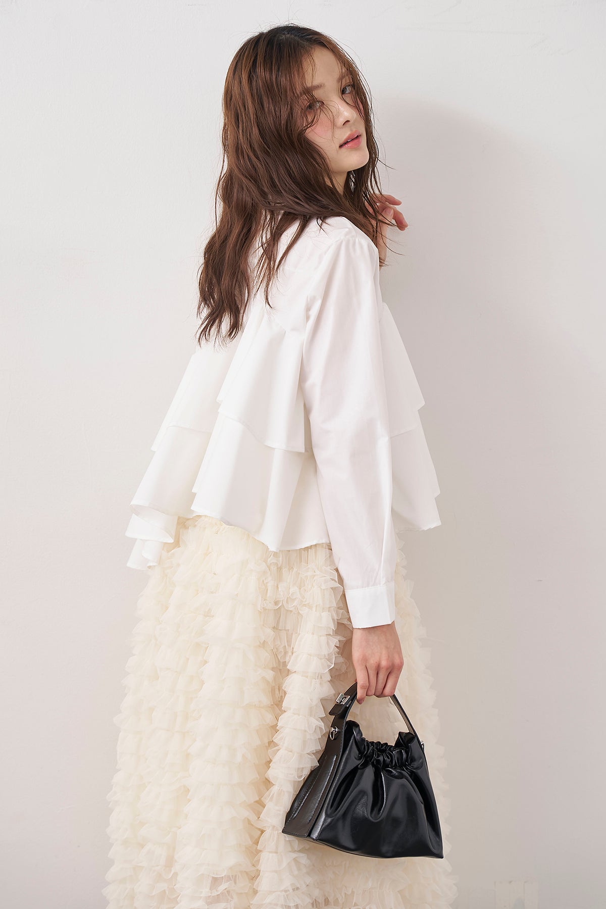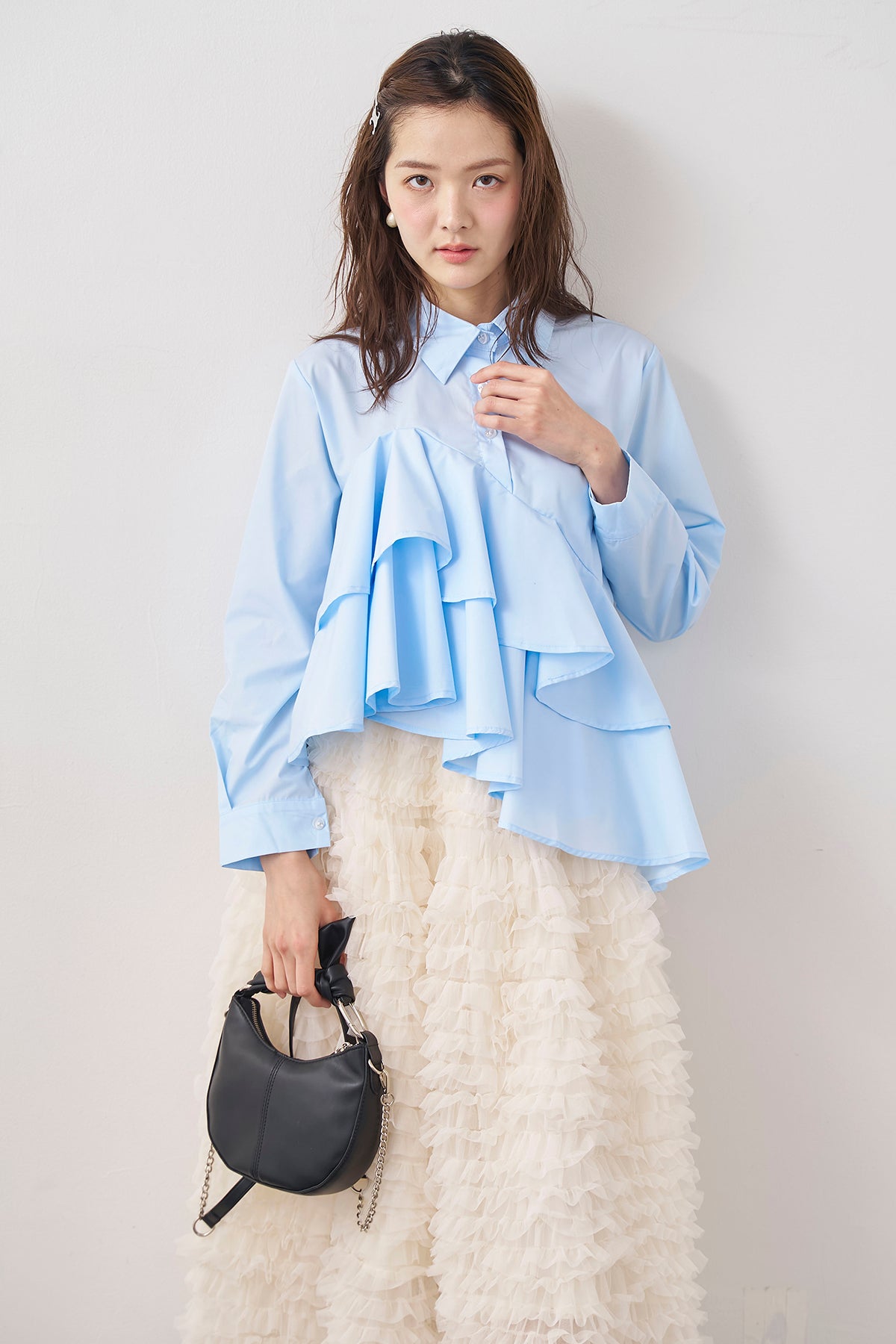 [予約/SET]アシメフリルティアードシャツ+ホイップチュールティアードスカート(2set)